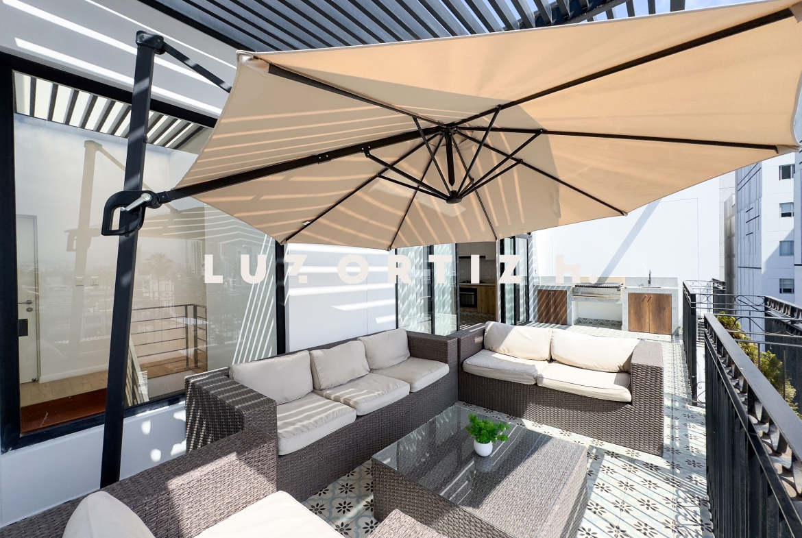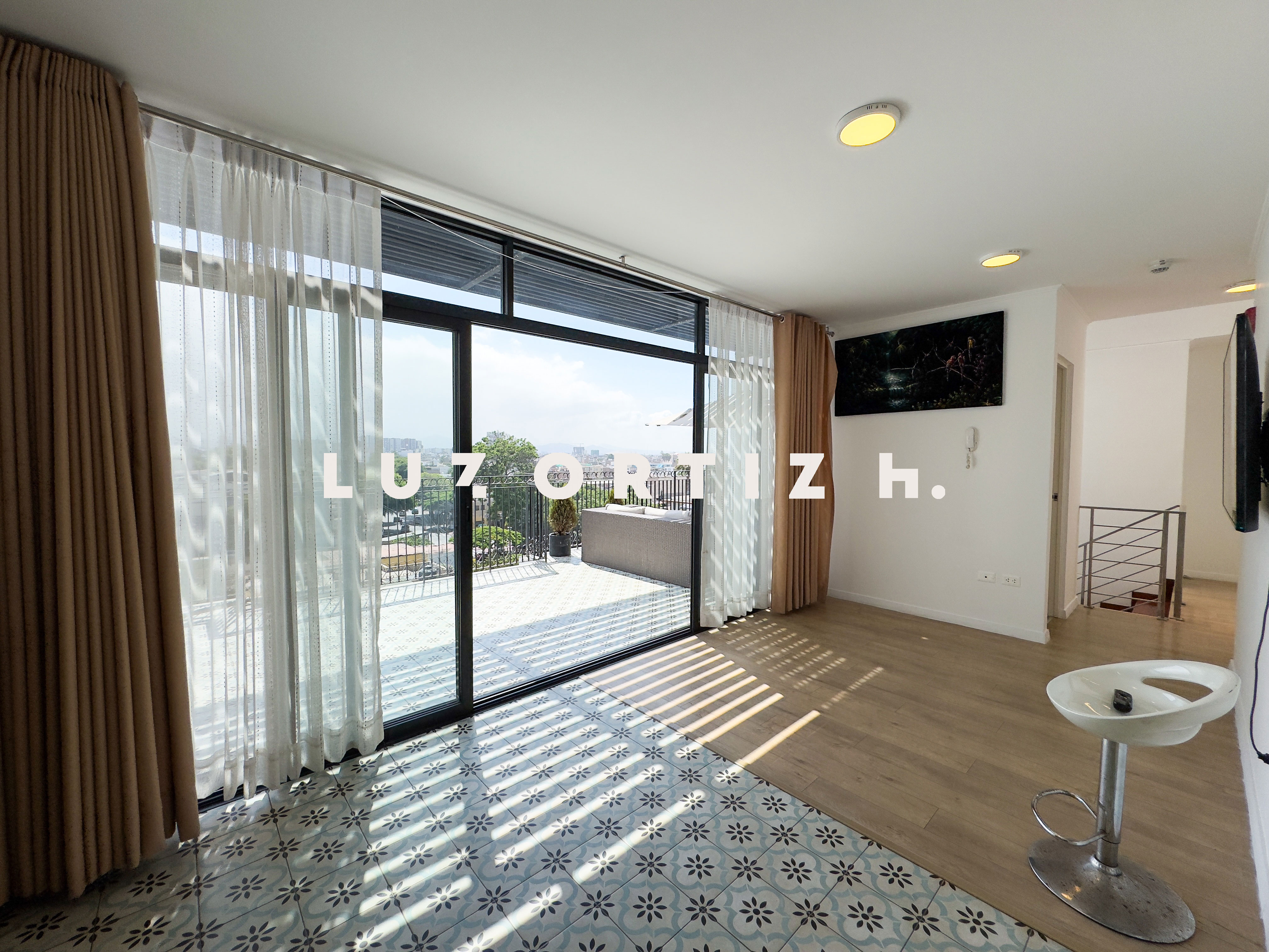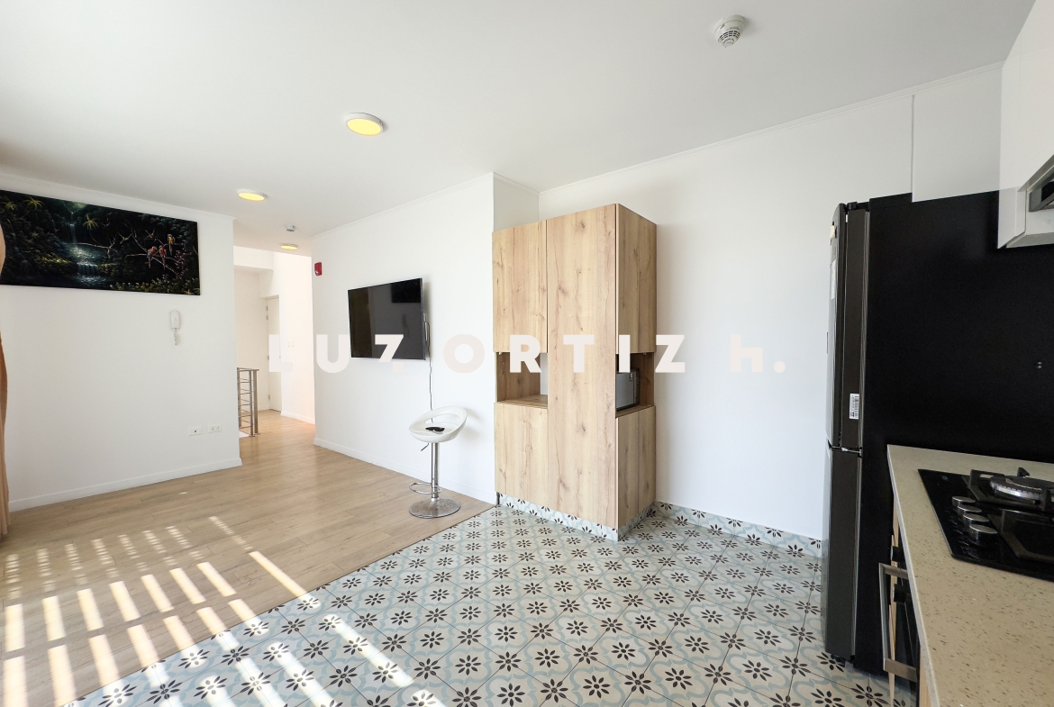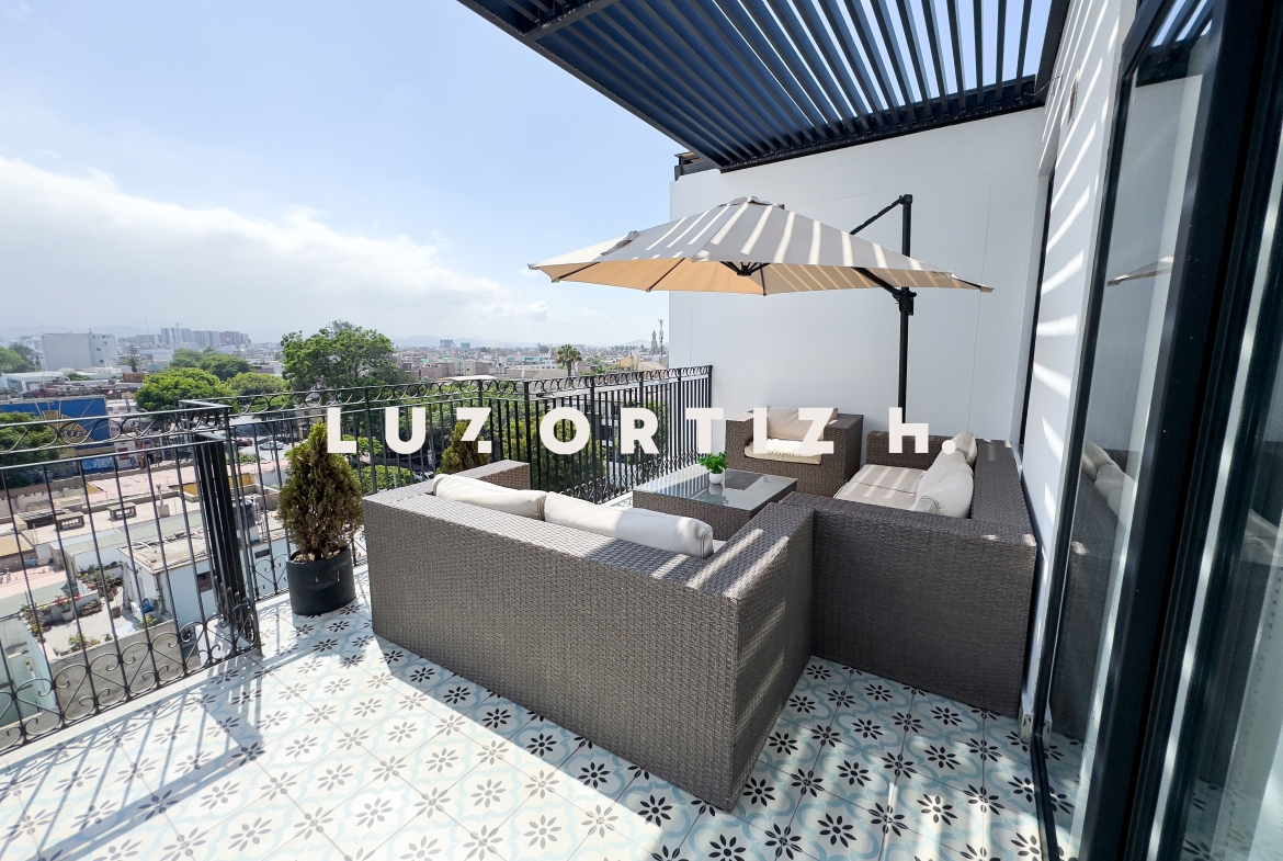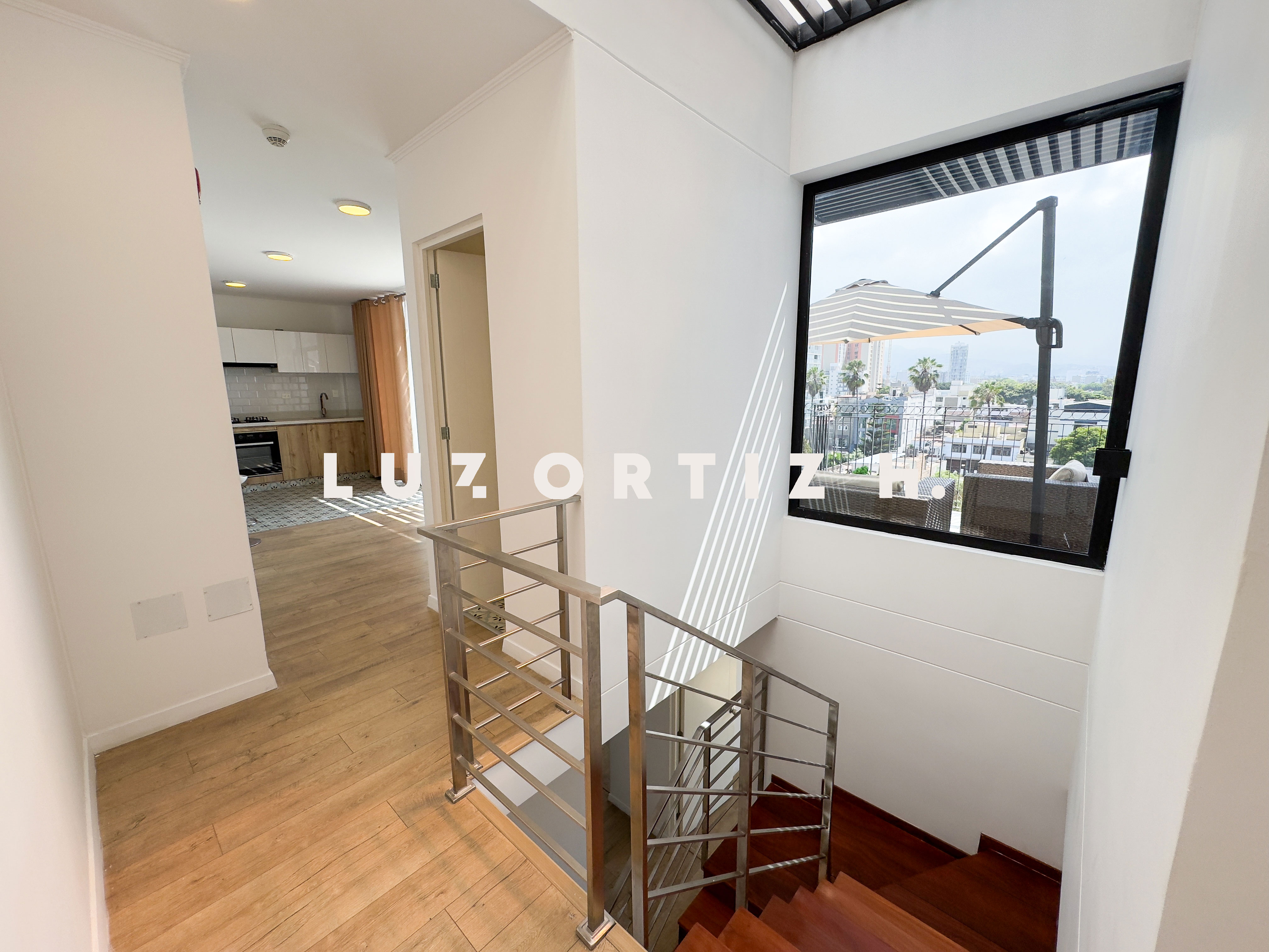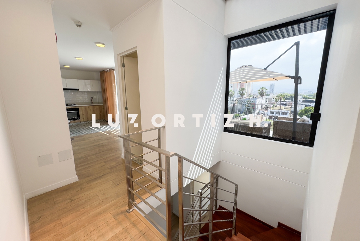 En ALQUILER de dúplex iluminado y con terraza, a pasos del malecon Paul Harris, Barranco.