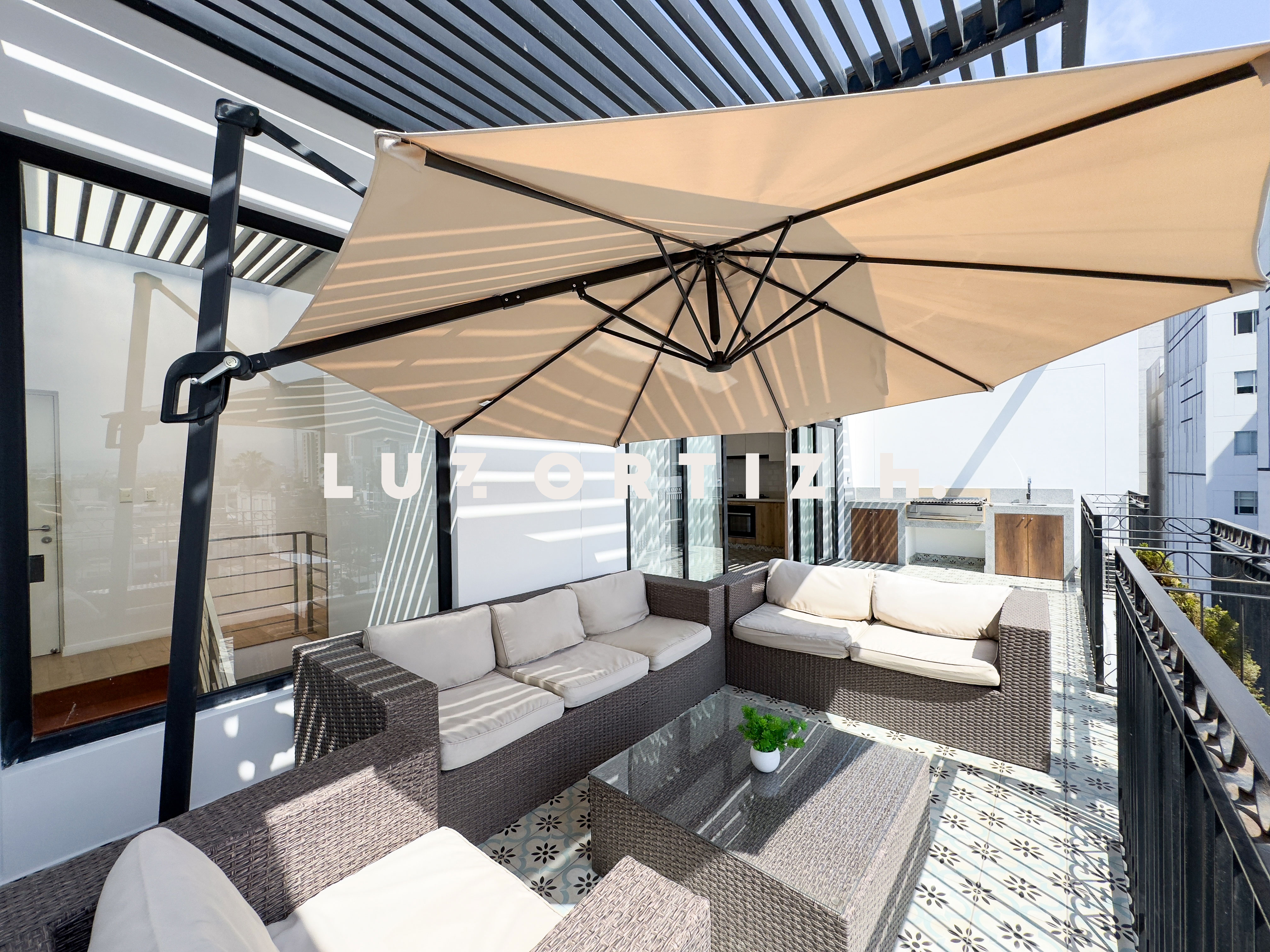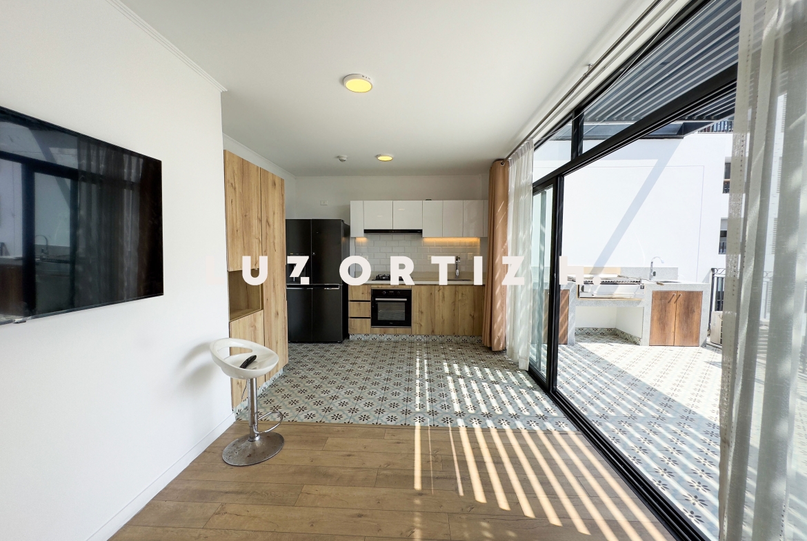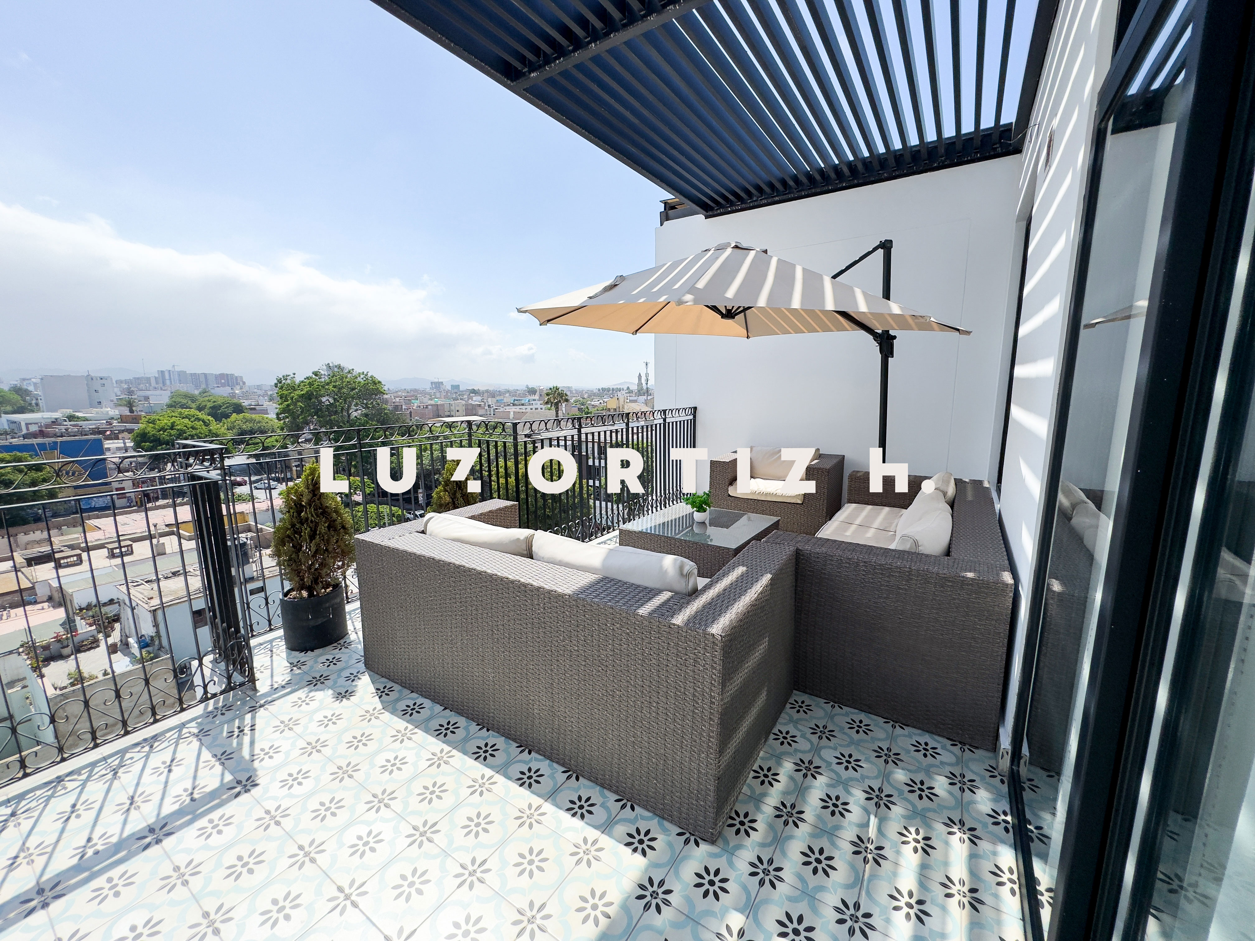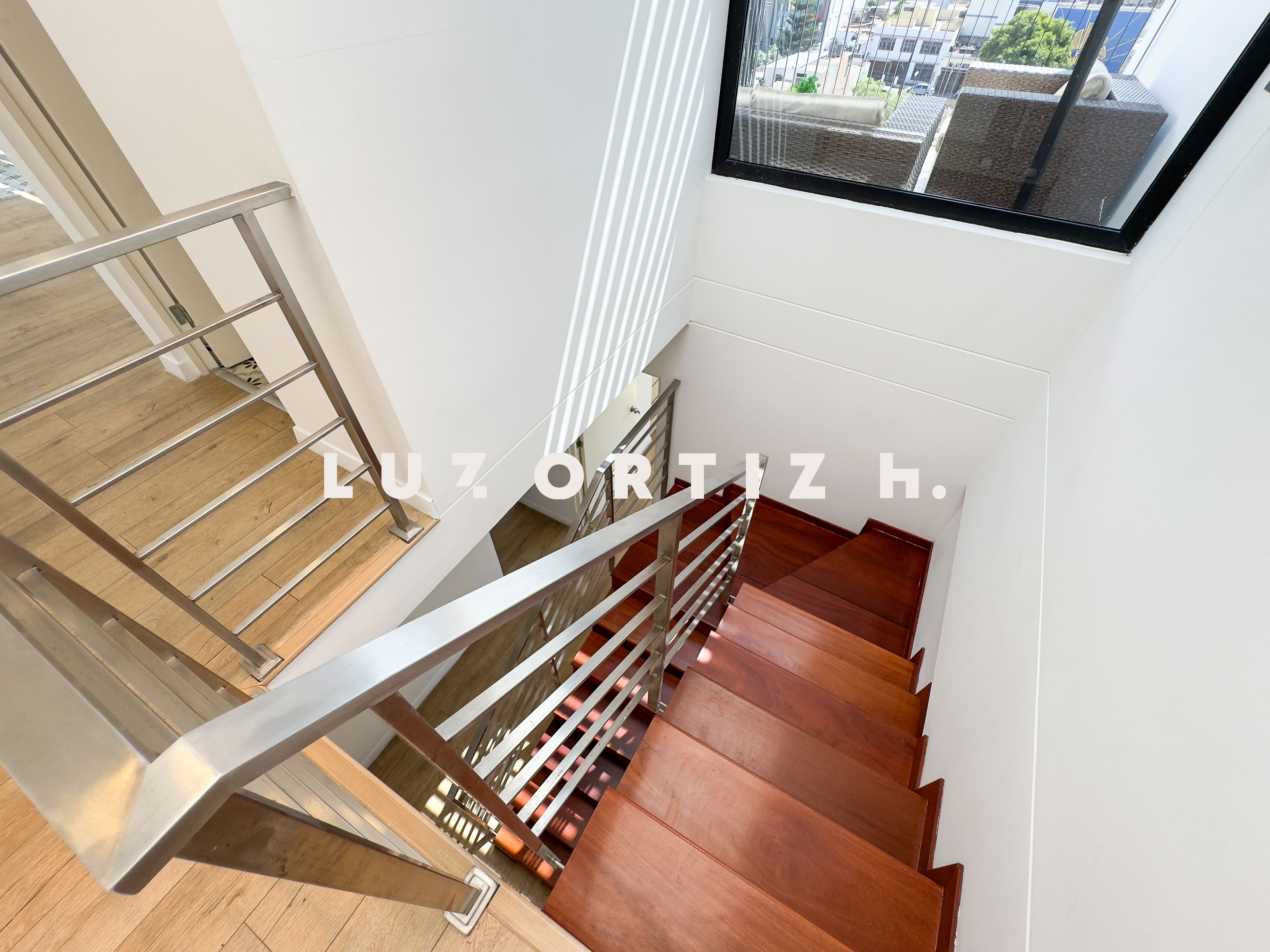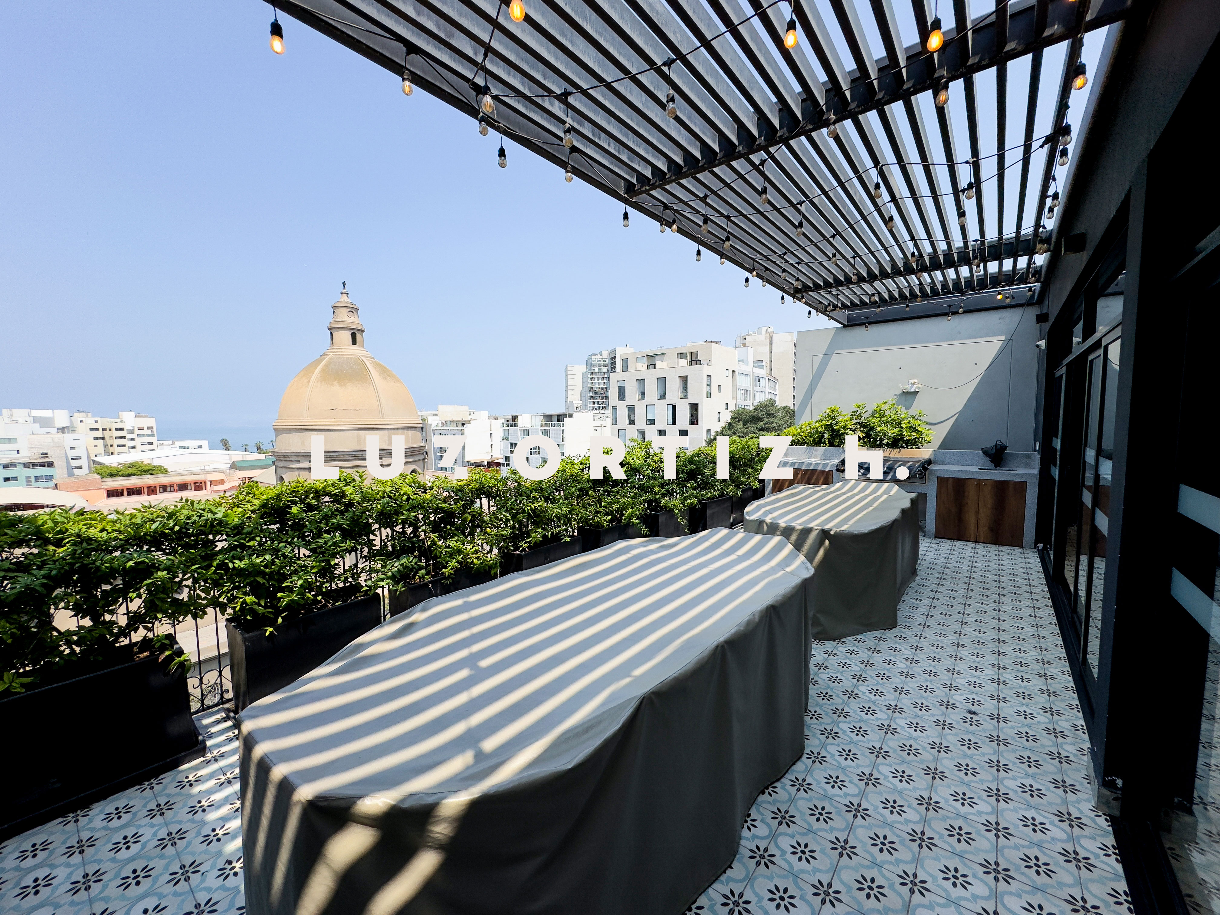 En ALQUILER de dúplex iluminado y con terraza, a pasos del malecon Paul Harris, Barranco.