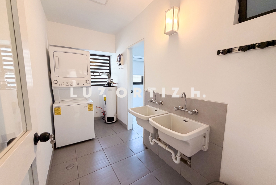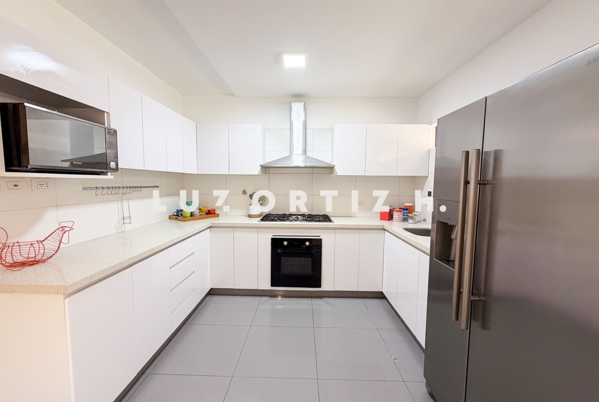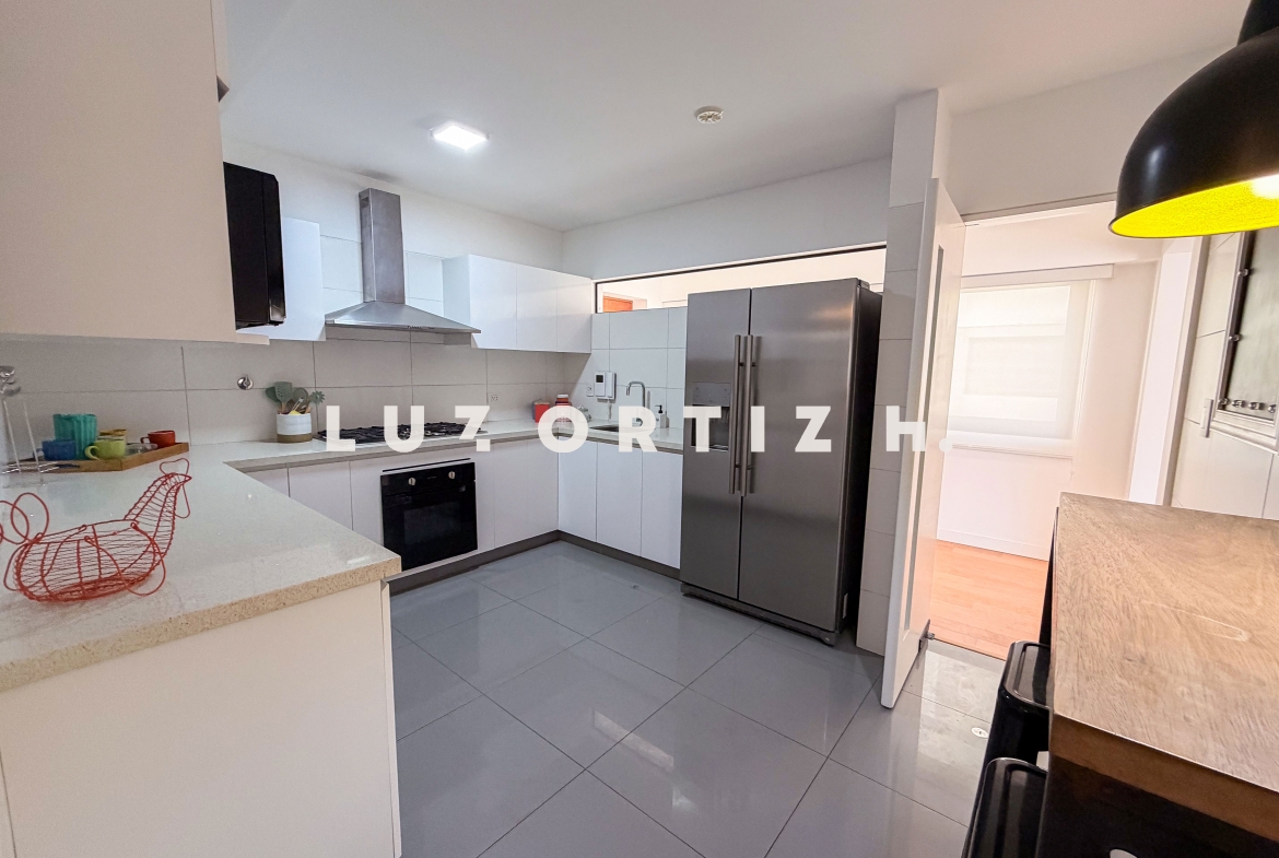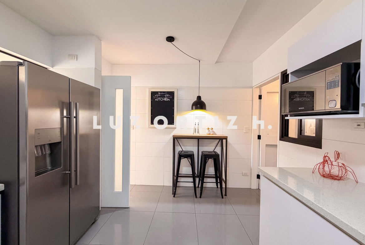 Amplia sala comedor que se integra con una cómoda terraza, baño de visitas, cocina cerrada con muebles altos y bajos, comedor de diario, área de lavandería, área de servicio completa, sala de estar, 3 dormitorios, el principal con baño completo incorporado, adicionalmente 2 baños completos.