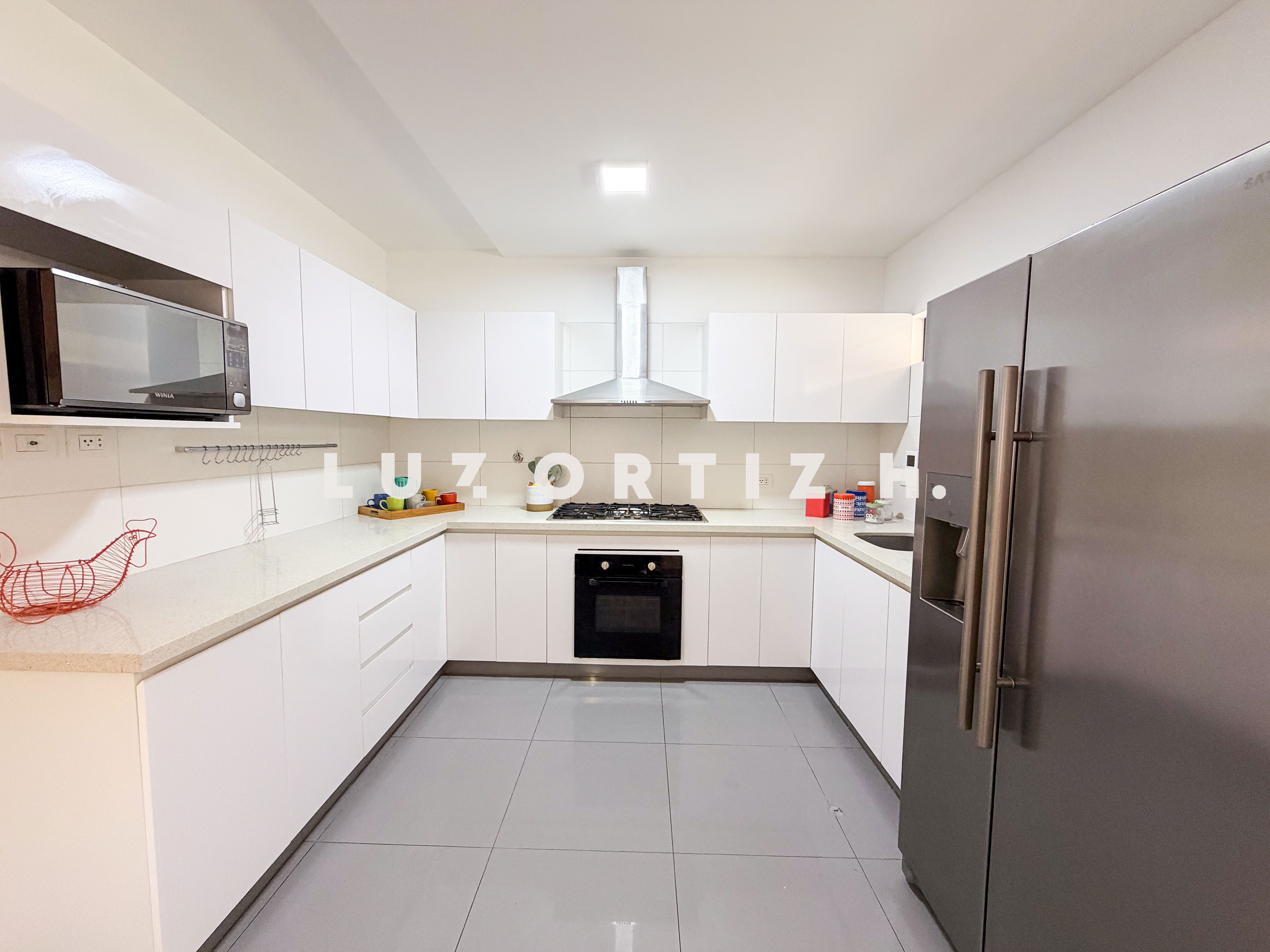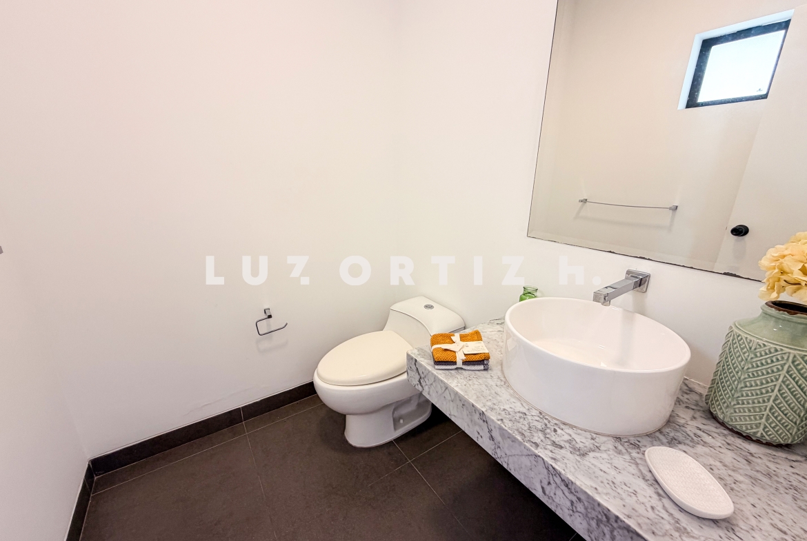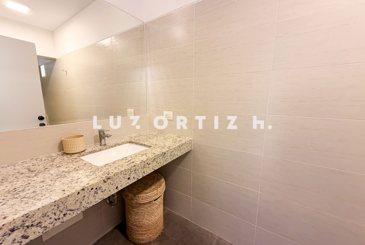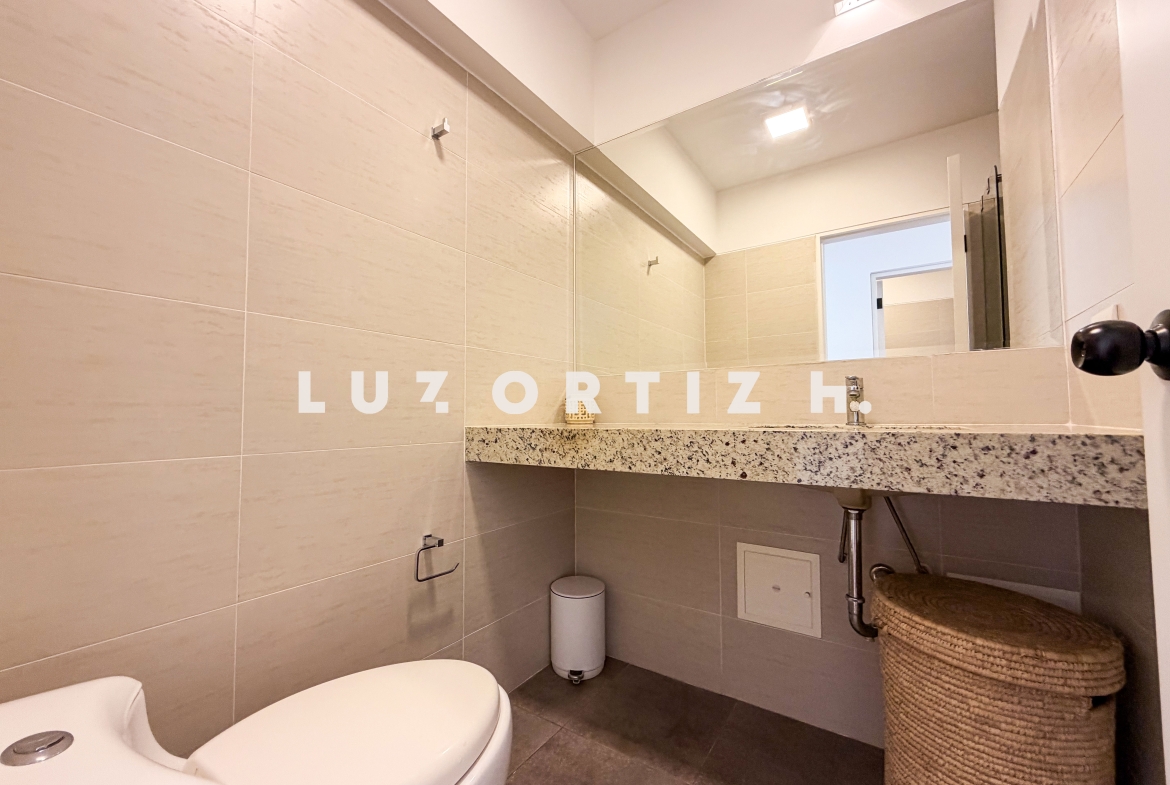 Amplia sala comedor que se integra con una cómoda terraza, baño de visitas, cocina cerrada con muebles altos y bajos, comedor de diario, área de lavandería, área de servicio completa, sala de estar, 3 dormitorios, el principal con baño completo incorporado, adicionalmente 2 baños completos.