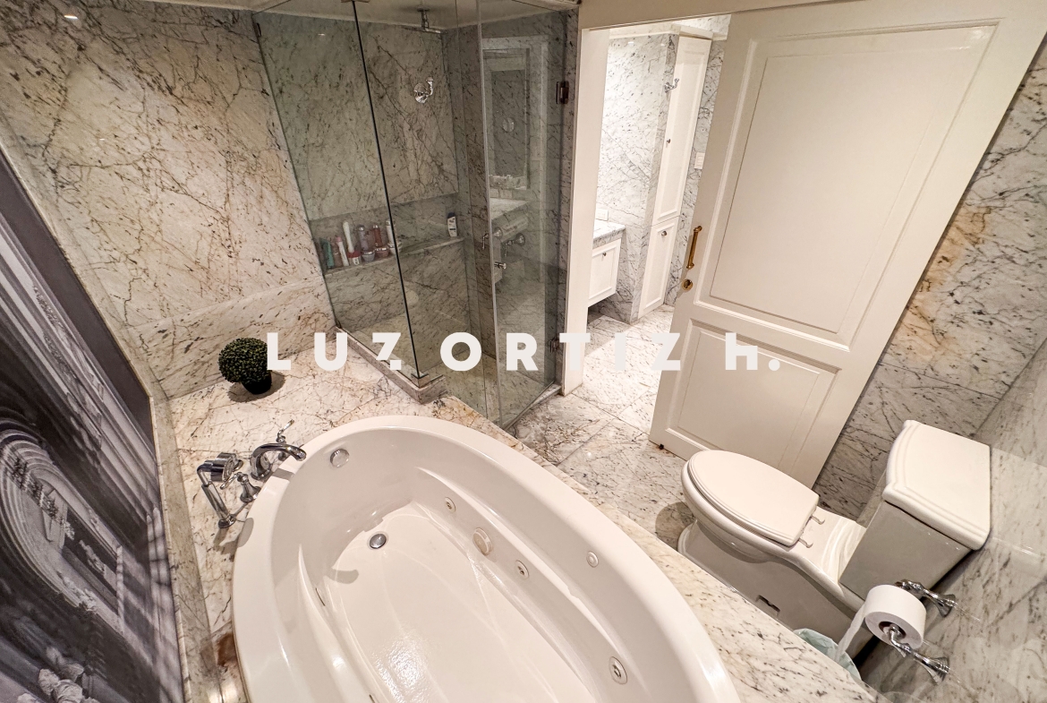 El departamento cuenta con 3 amplias habitaciones. La principal, de generoso tamaño, tiene un walk-in closet que ofrece un espacio de almacenamiento ideal, y un baño incorporado para mayor privacidad.