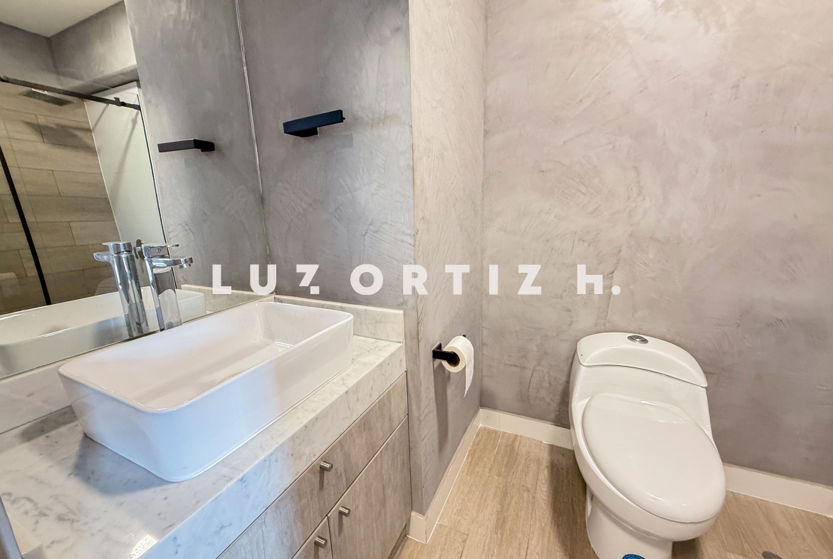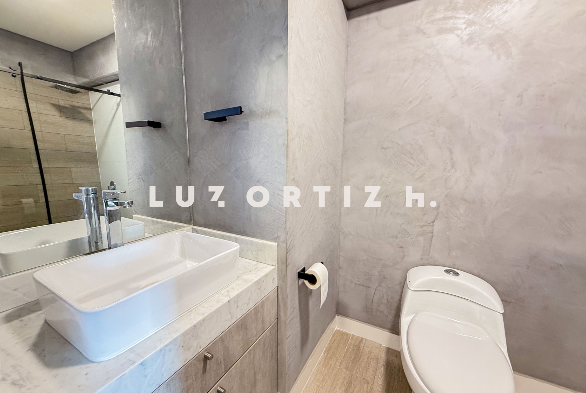 El departamento se cuenta con vista al mar y una distribución funcional que aprovecha cada metro cuadrado. Dispone de una cómoda sala comedor con un pequeño balcón que permite disfrutar de buena iluminación y ventilación. La zona de lavandería tipo clóset es práctica y discreta. Además, cuenta con 2 habitaciónes con walkie closet t incorporado, la principal con baño completo. Adicionalmente un baño completo en el exterior.