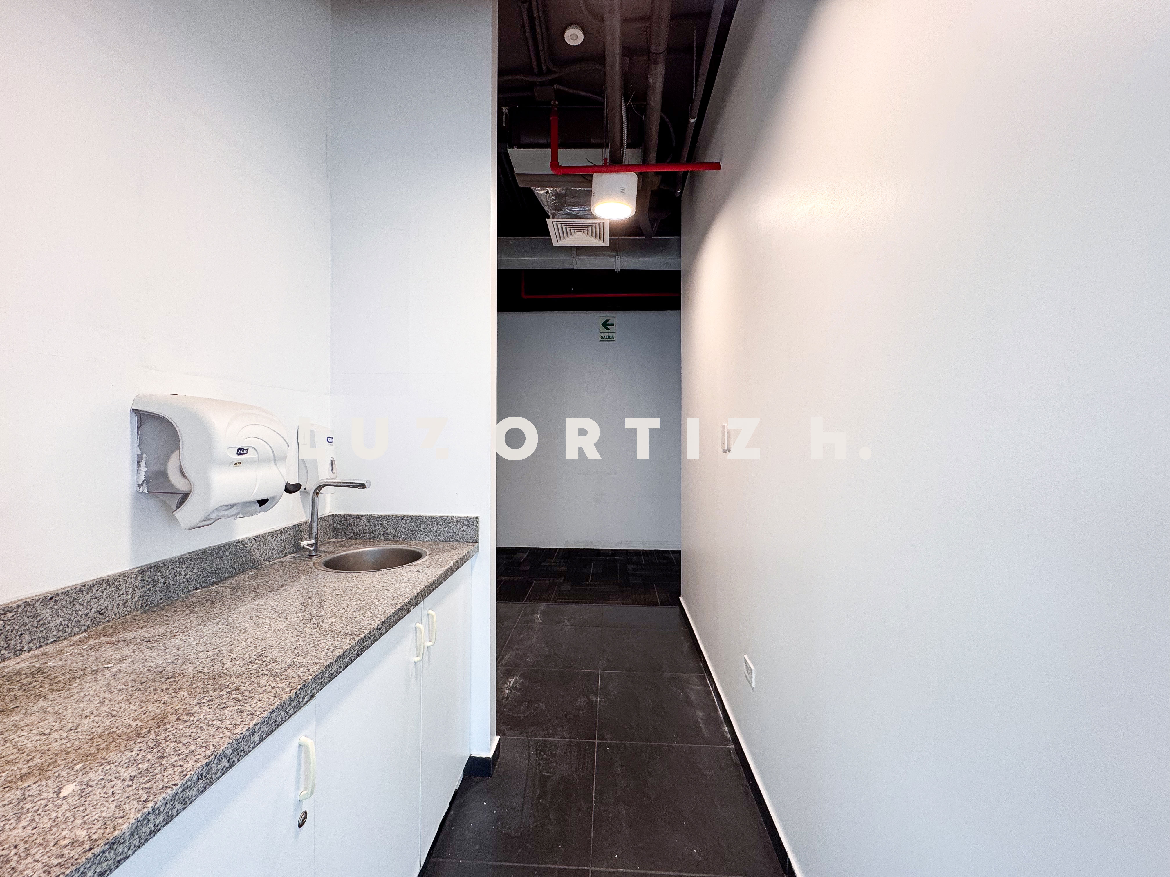 El edificio corporativo ofrece un lobby moderno con recepción, control de accesos, ascensores de alta velocidad y vigilancia permanente, asegurando seguridad y eficiencia para colaboradores y visitantes.