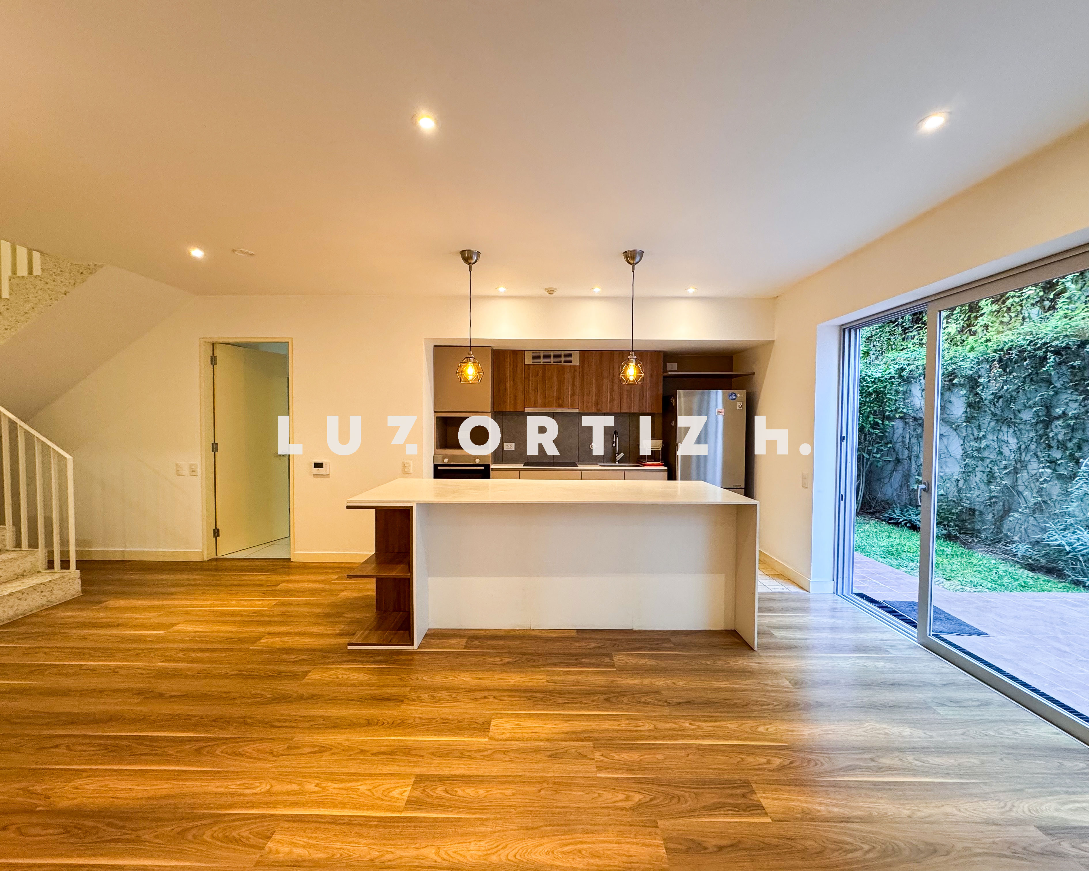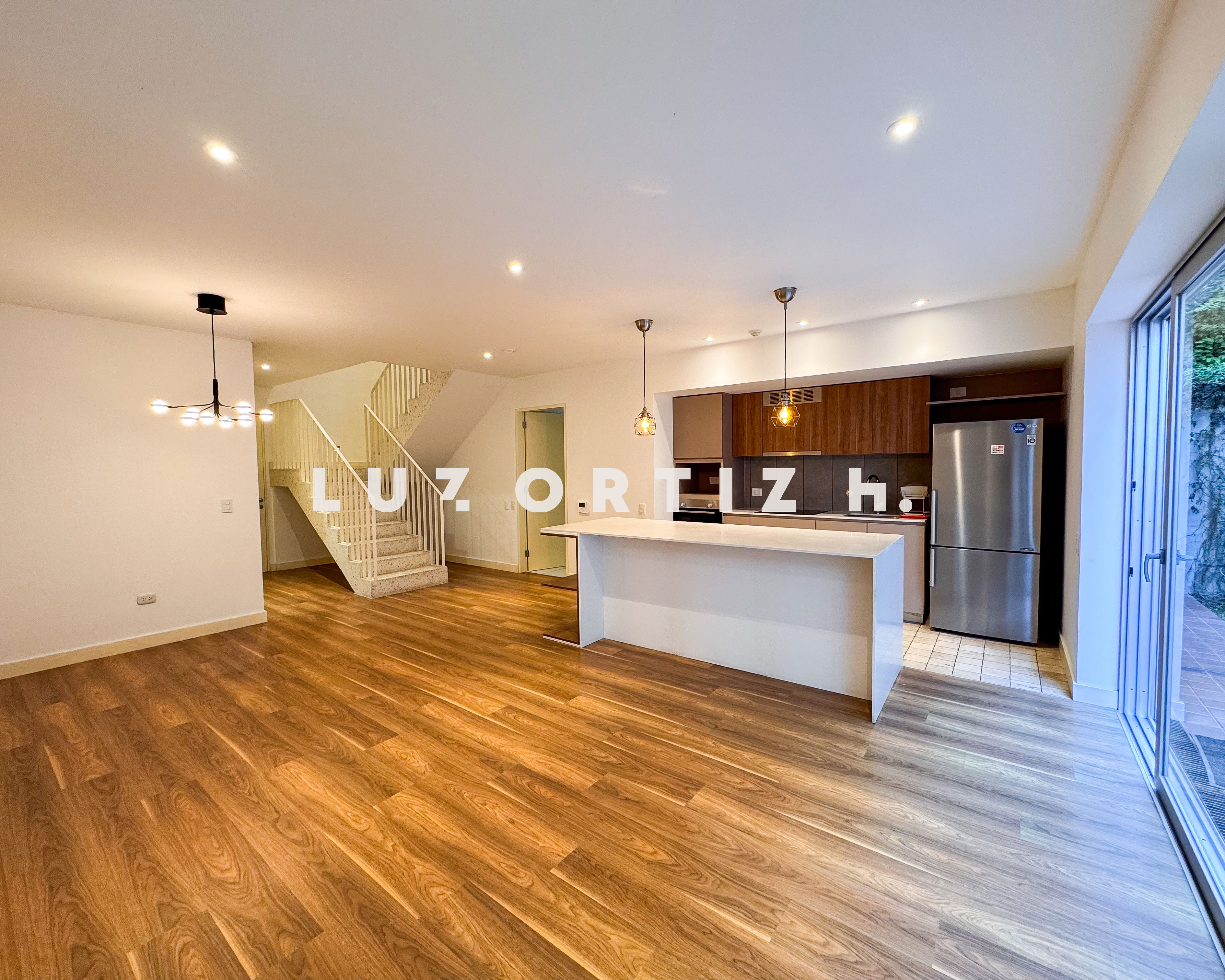 Amplia sala comedor con cocina americana integrada, que cuenta con una cómoda isla perfecta para compartir con familiares y amigos.