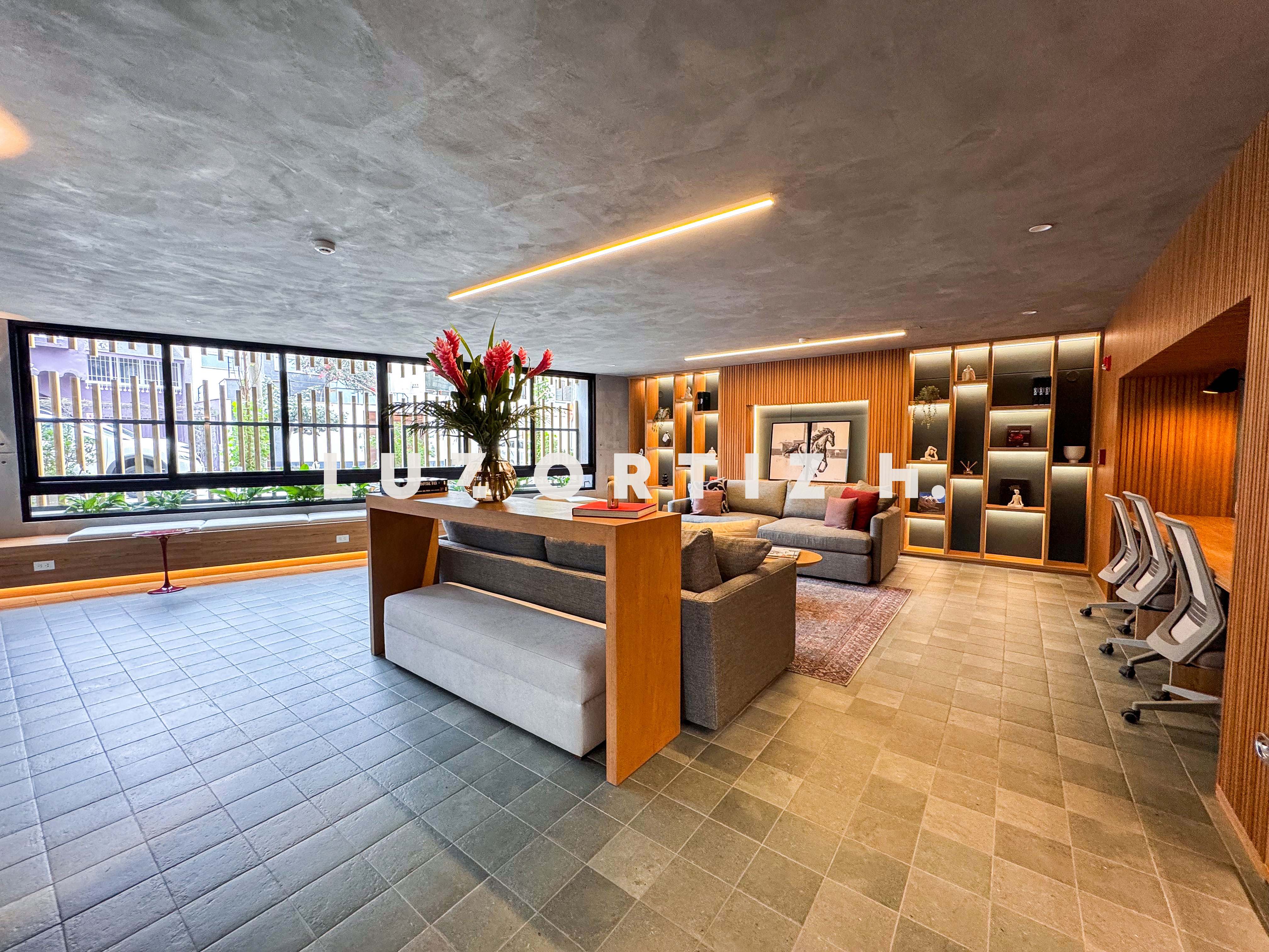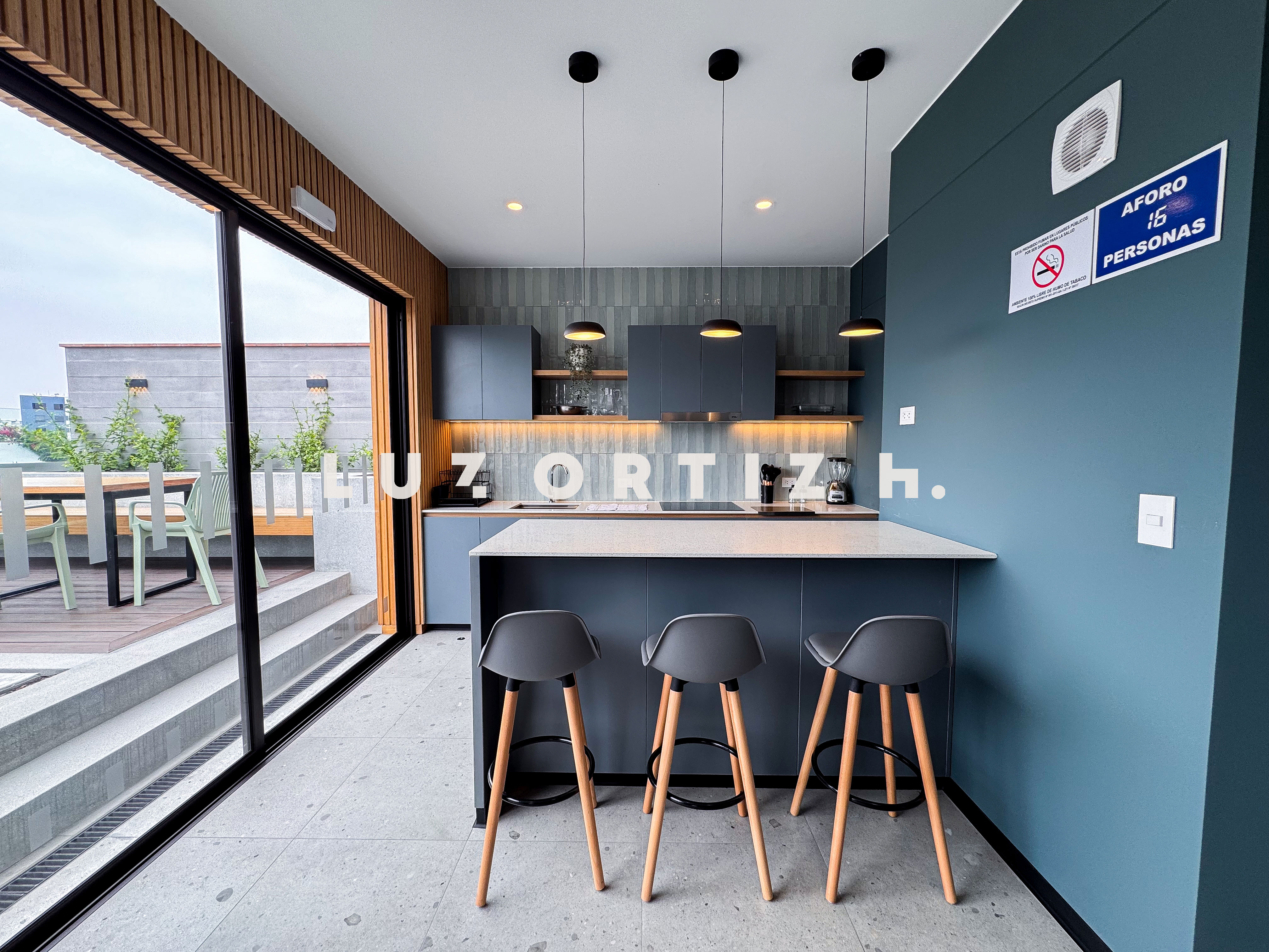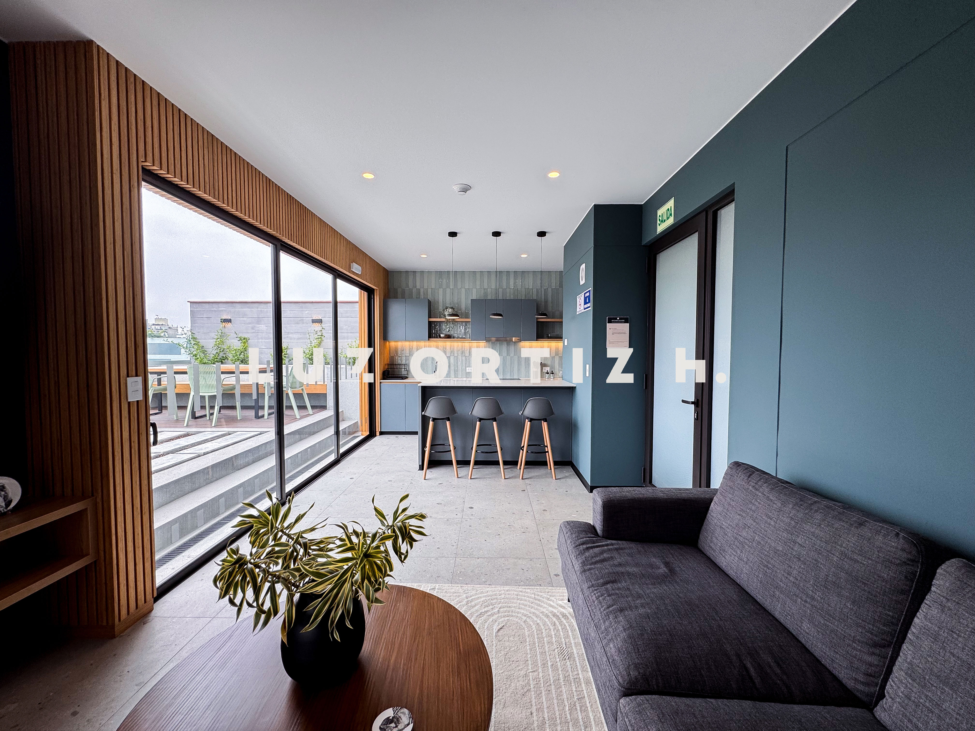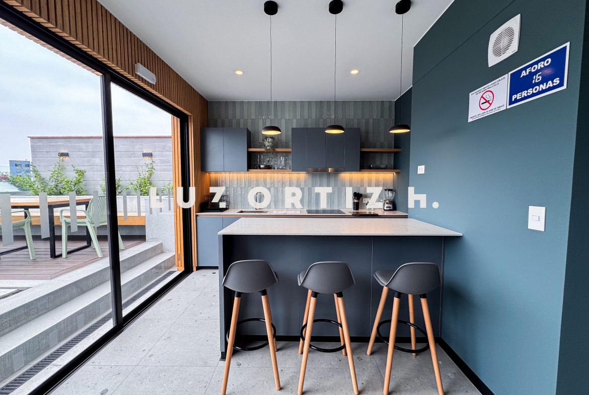 Lobby de seguridad y recepción, Living Room de diseño elegante, Kitchen Lounge totalmente equipado, Zona de Parrillas para reuniones sociales, Gimnasio moderno. Bike Zone y estacionamiento para bicicletas. Área de lavandería funcional.