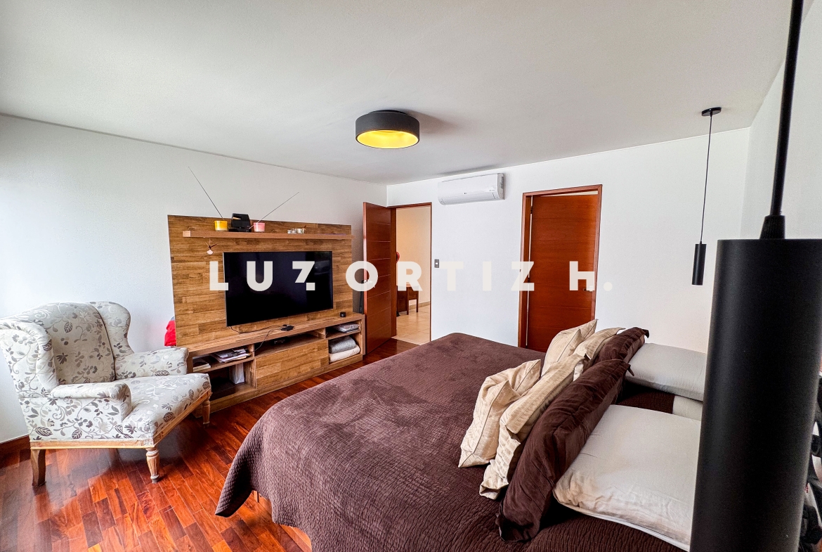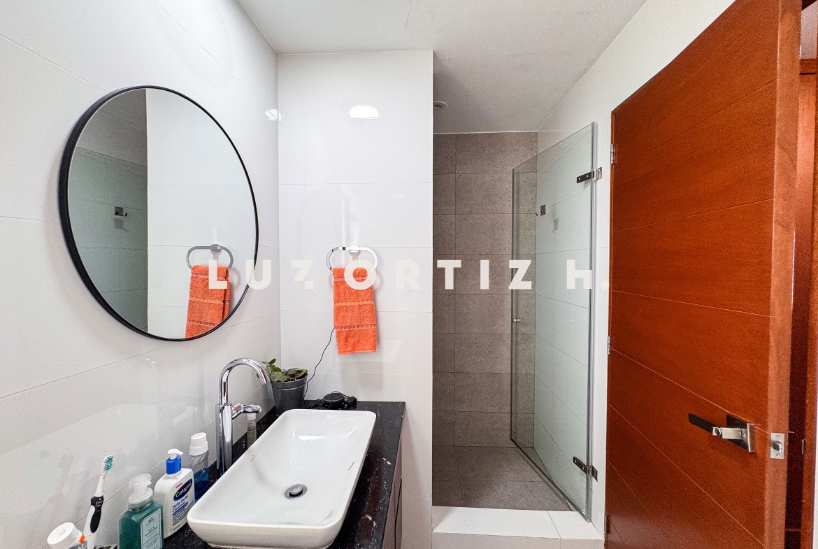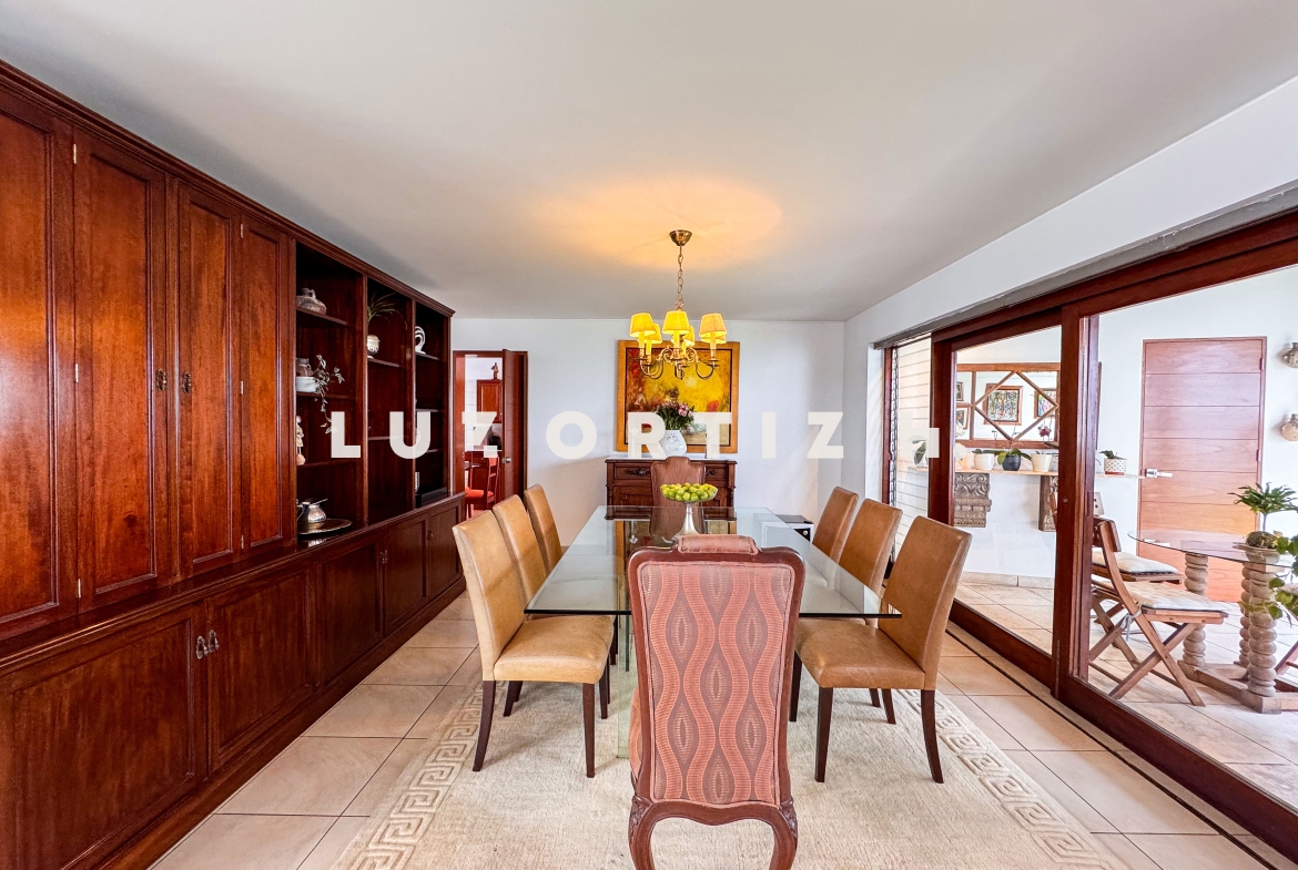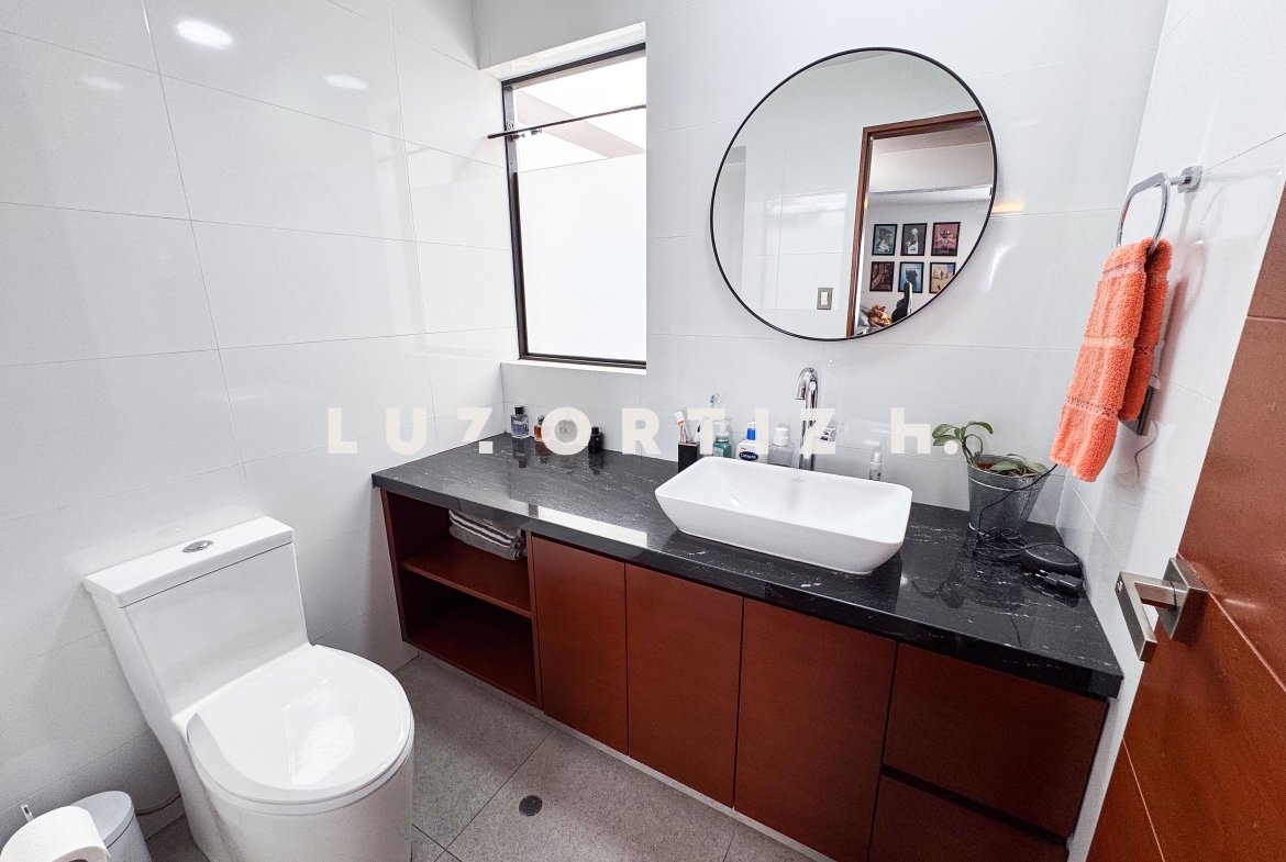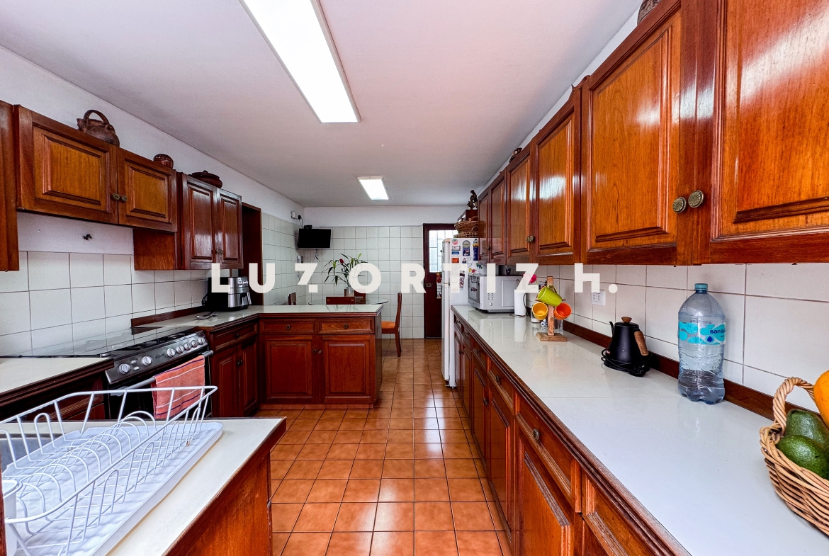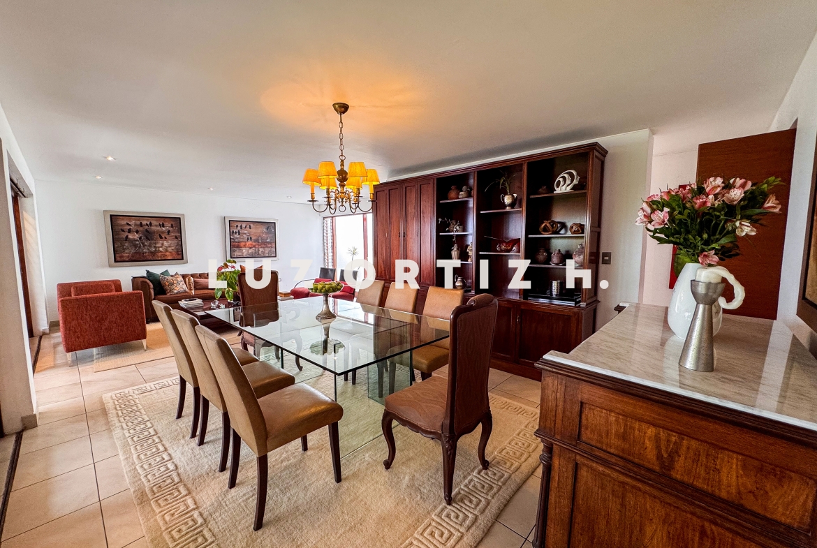 La propiedad presenta una amplia y luminosa sala-comedor con vista directa a una gran terraza, perfecta para reuniones familiares o sociales. Dispone también de un baño de visitas, una cocina cerrada con muebles altos y bajos, zona de lavandería, así como cuarto y baño de servicio completamente independientes.