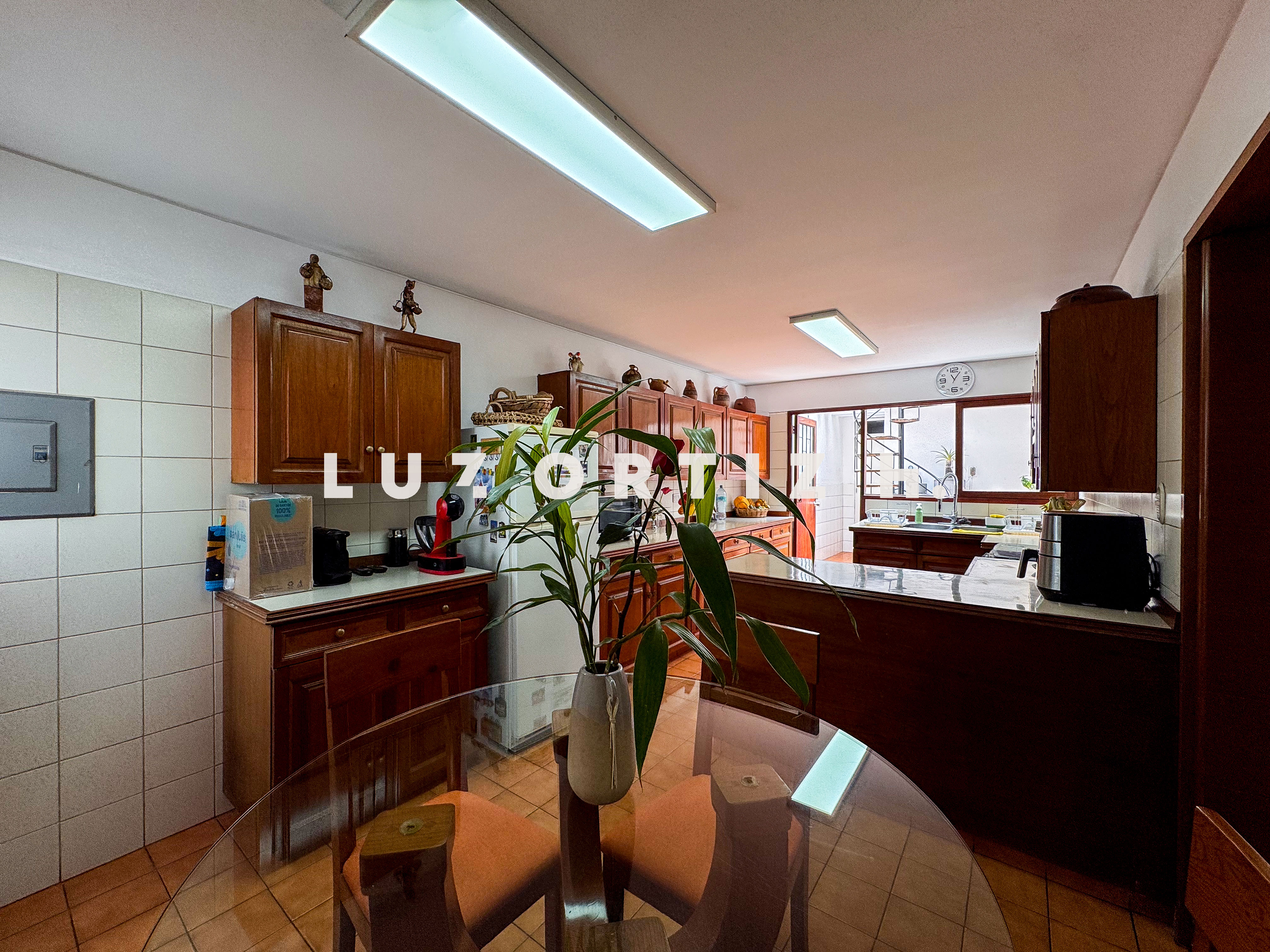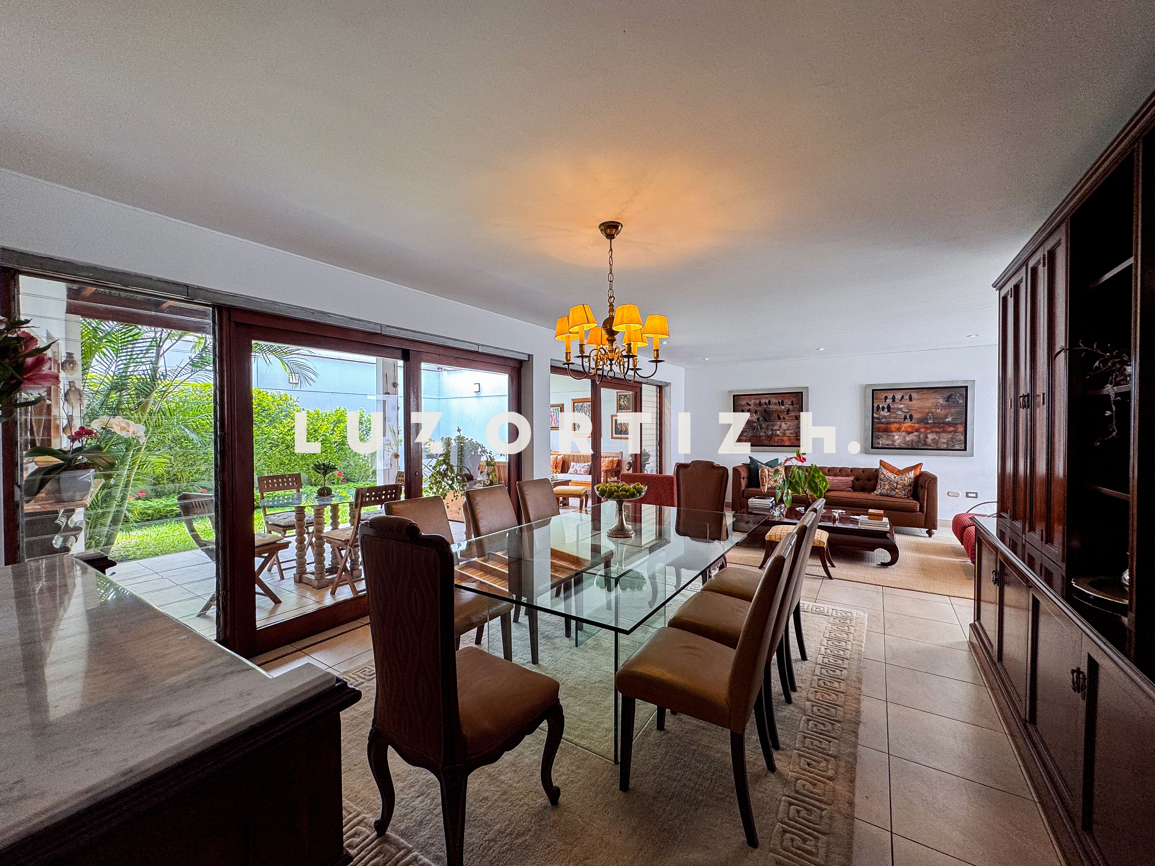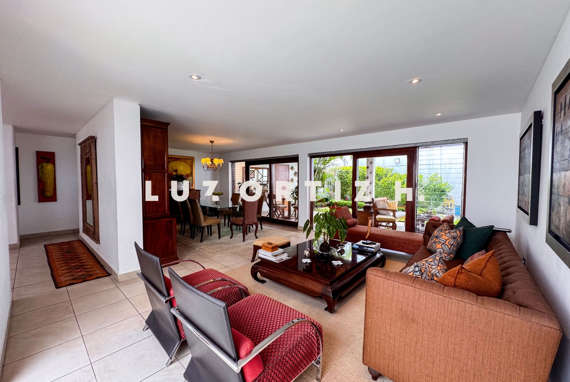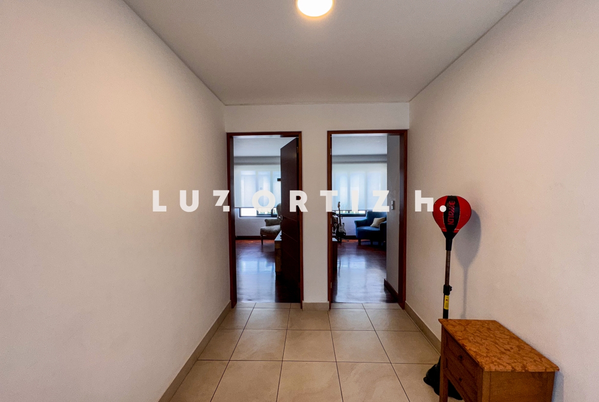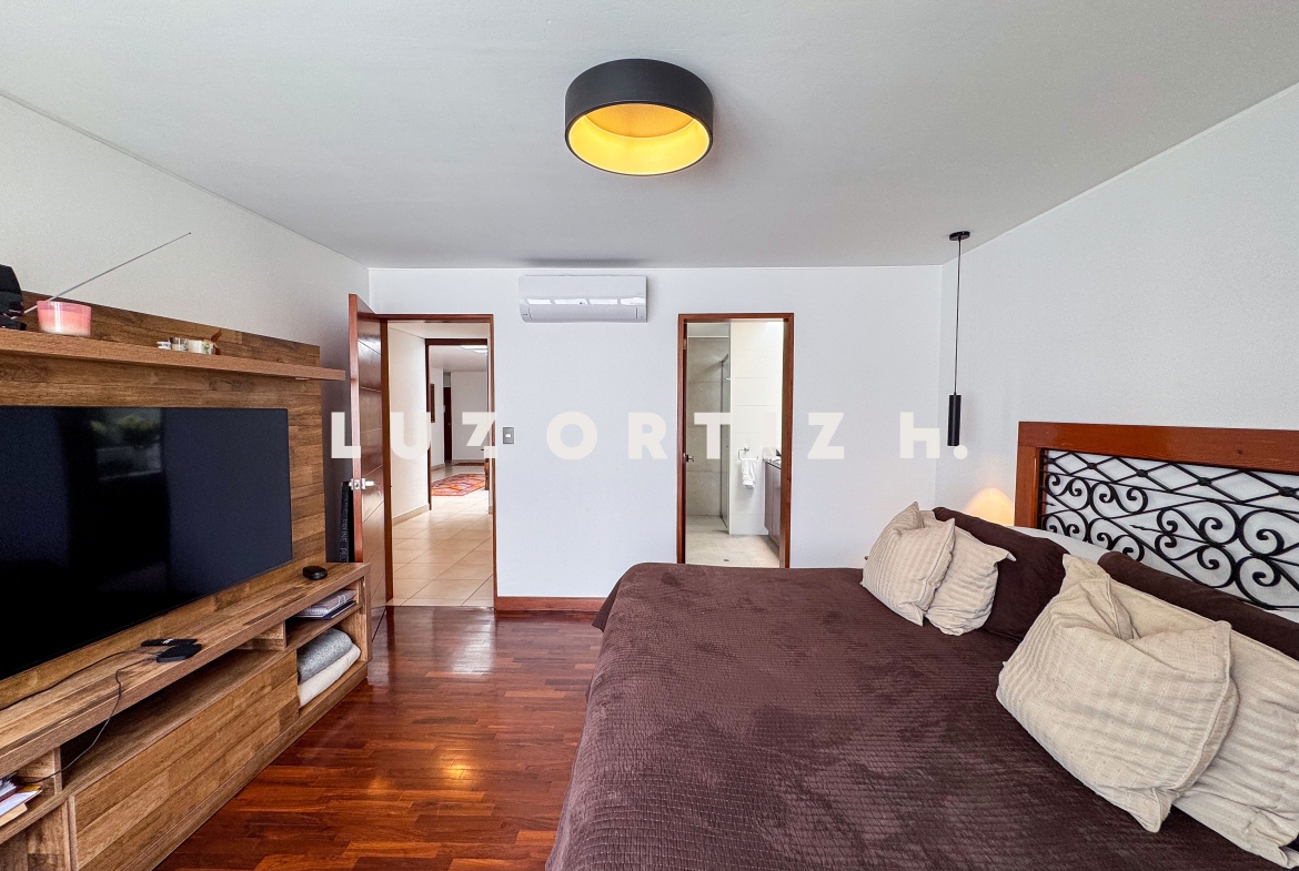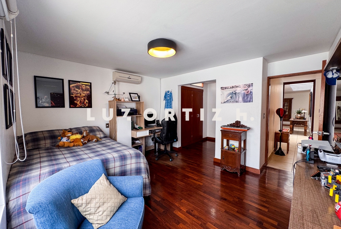 La propiedad presenta una amplia y luminosa sala-comedor con vista directa a una gran terraza, perfecta para reuniones familiares o sociales. Dispone también de un baño de visitas, una cocina cerrada con muebles altos y bajos, zona de lavandería, así como cuarto y baño de servicio completamente independientes.