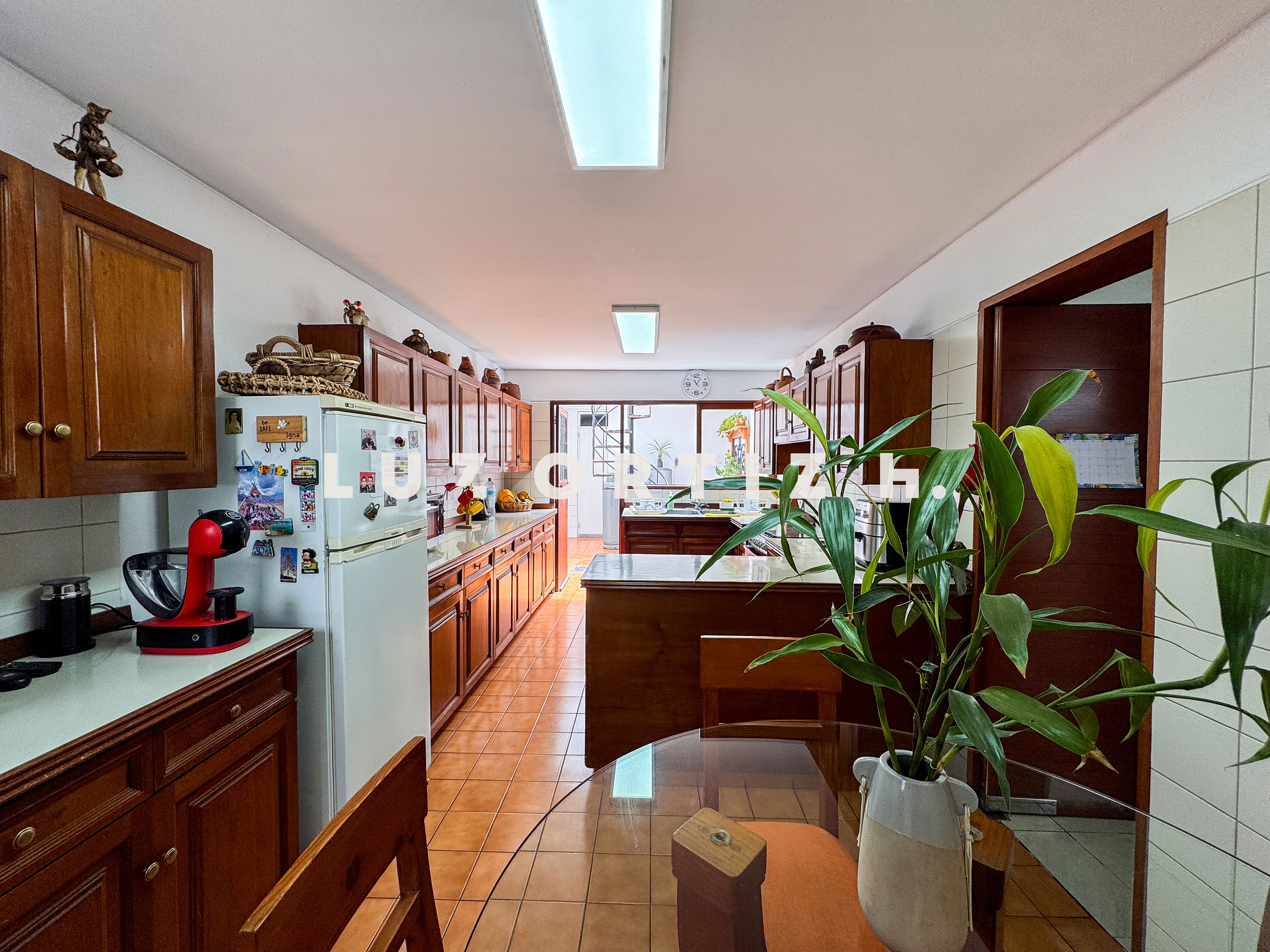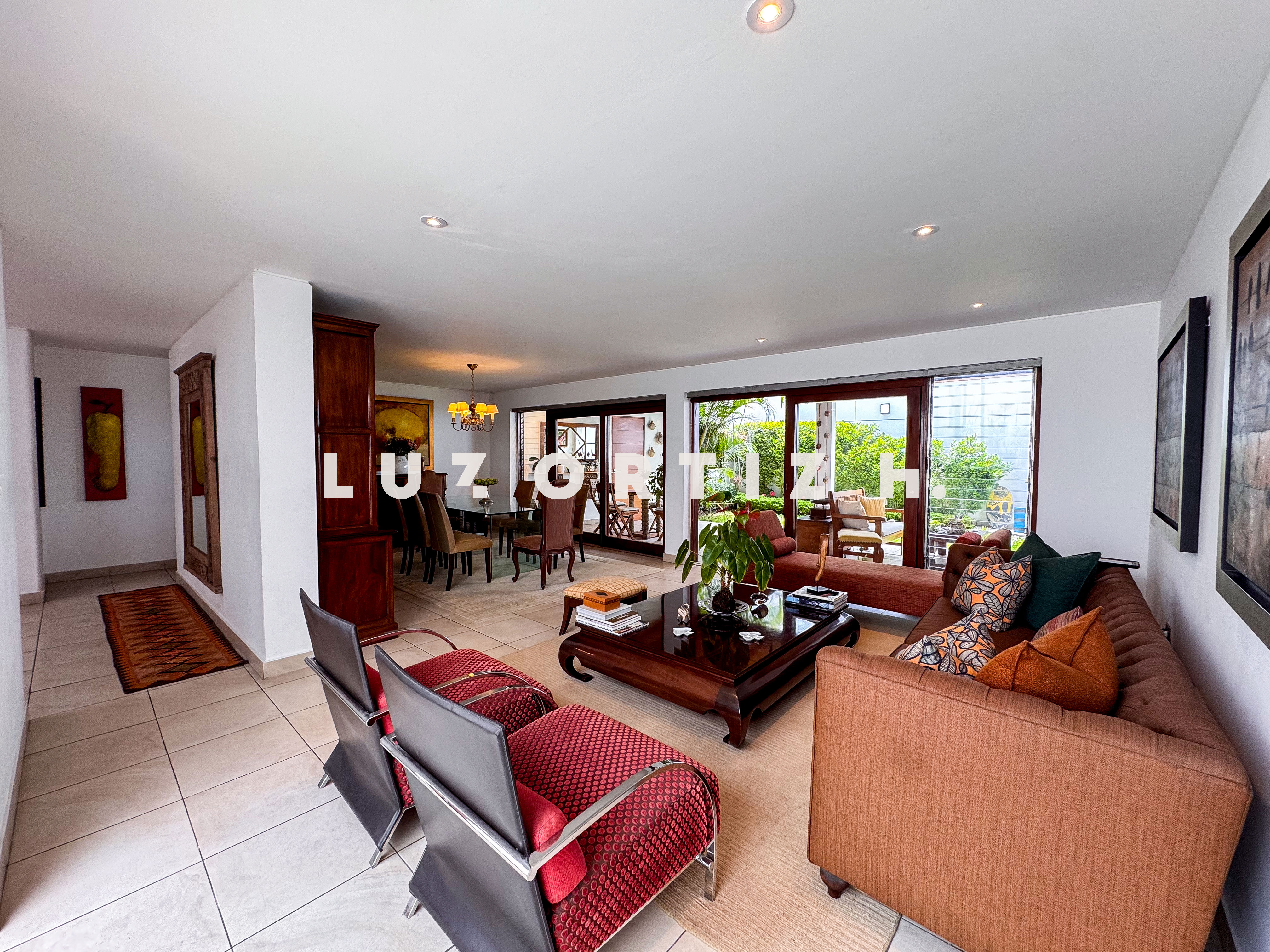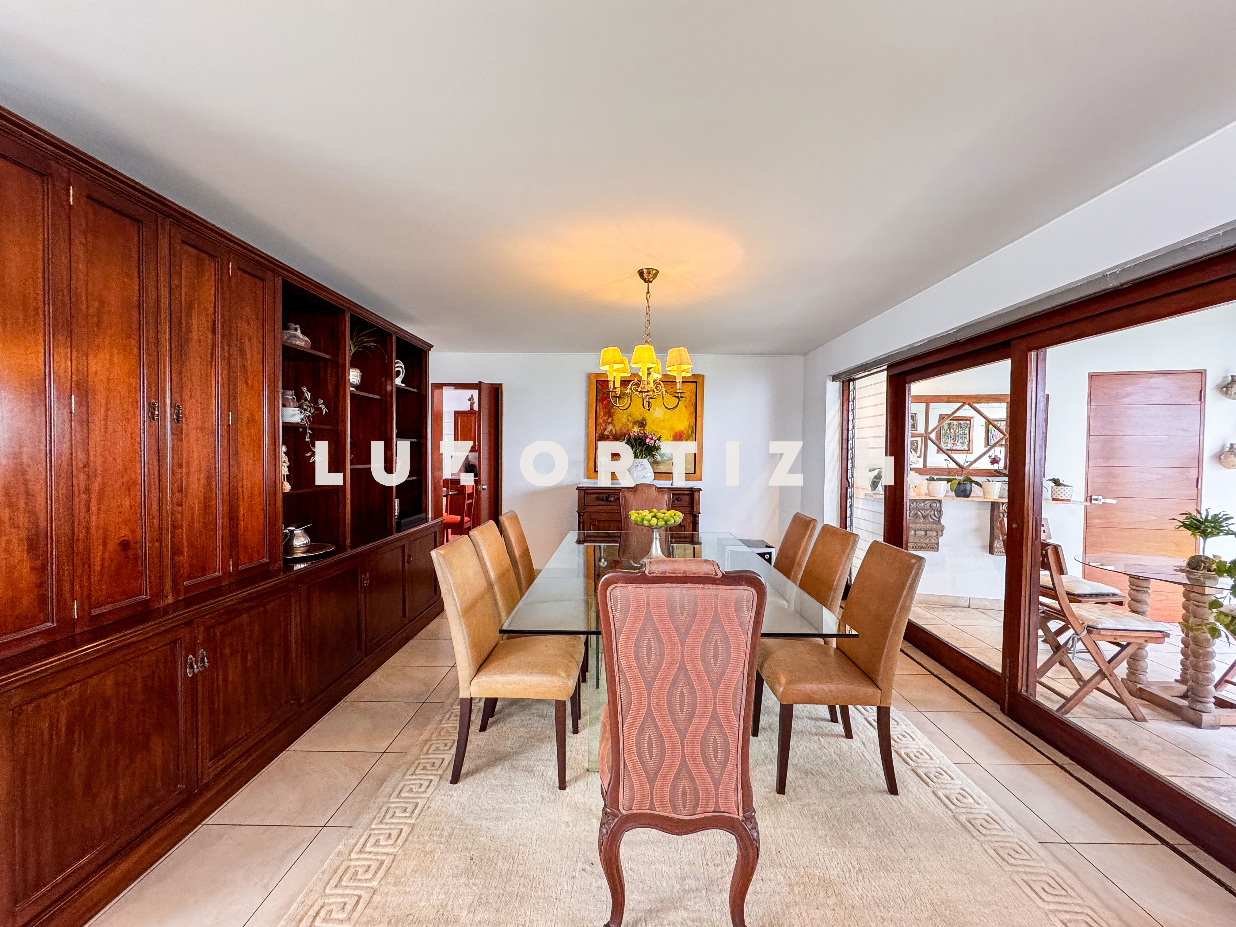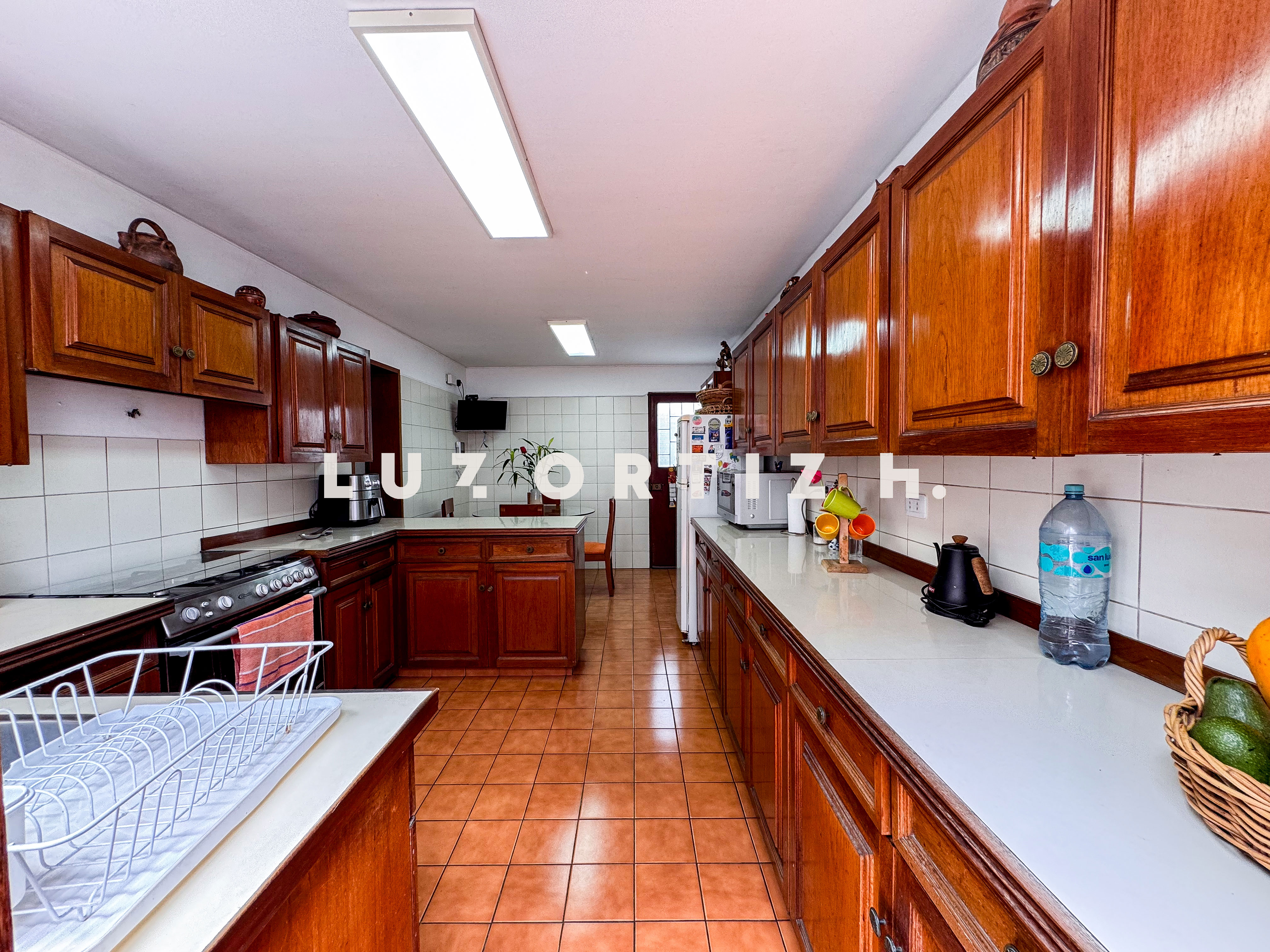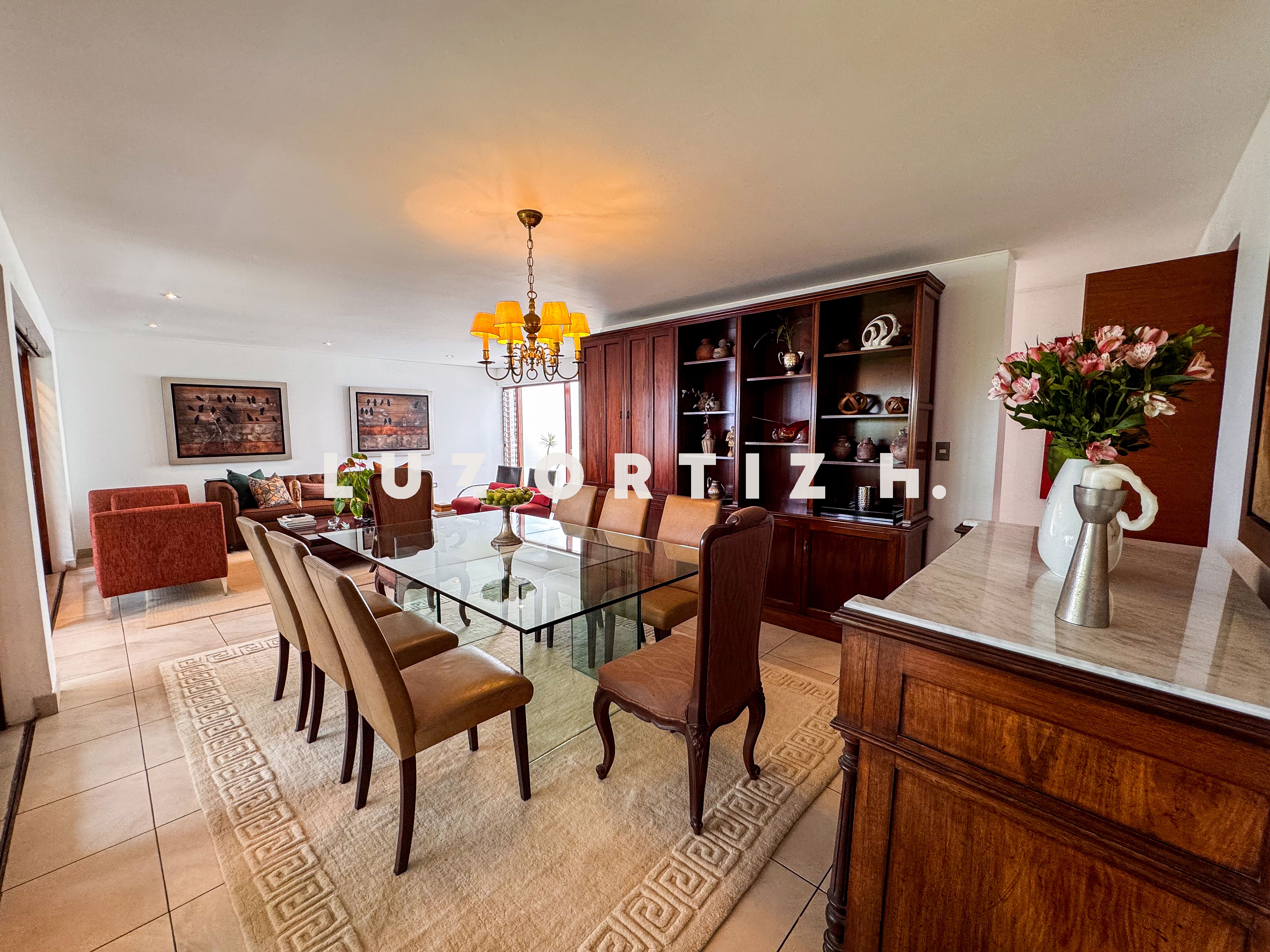 La propiedad presenta una amplia y luminosa sala-comedor con vista directa a una gran terraza, perfecta para reuniones familiares o sociales. Dispone también de un baño de visitas, una cocina cerrada con muebles altos y bajos, zona de lavandería, así como cuarto y baño de servicio completamente independientes.