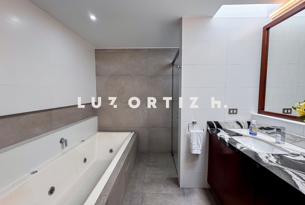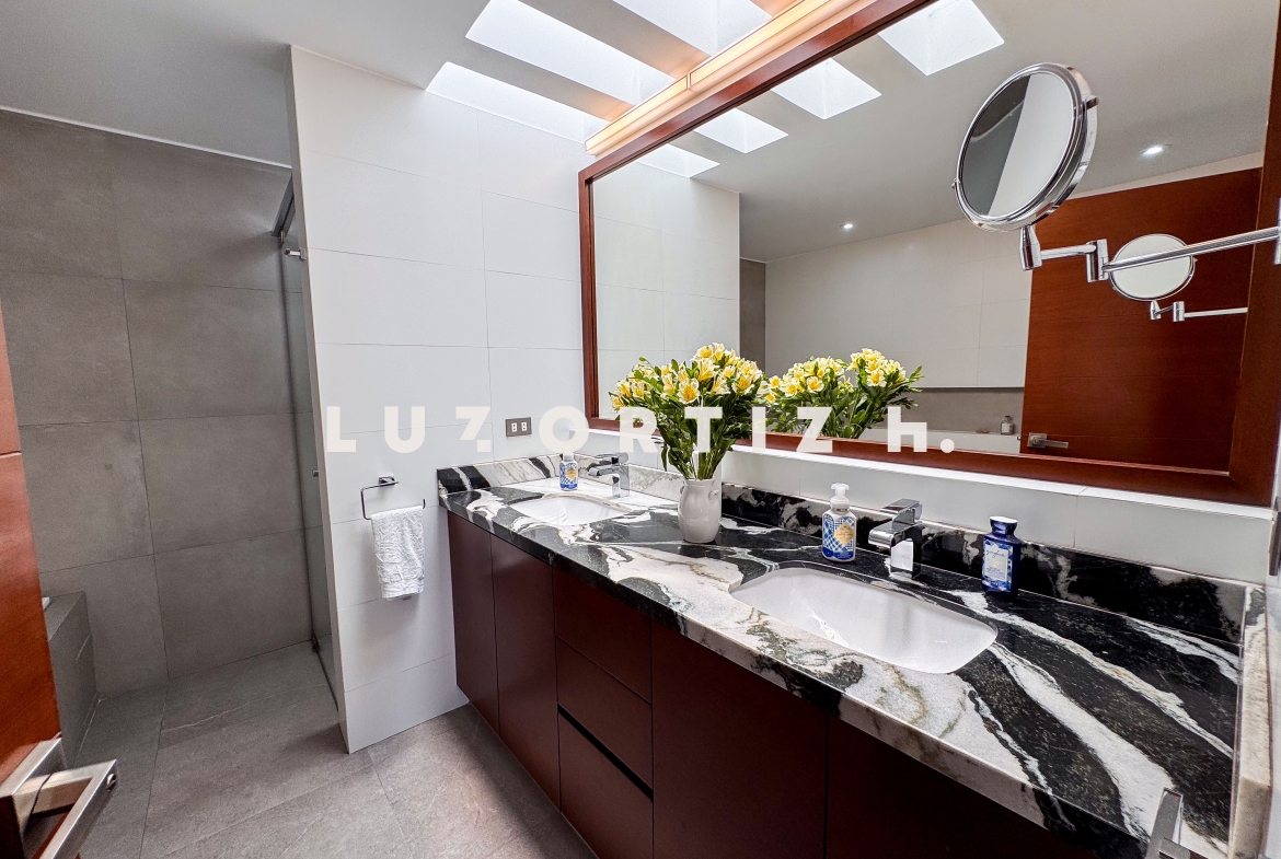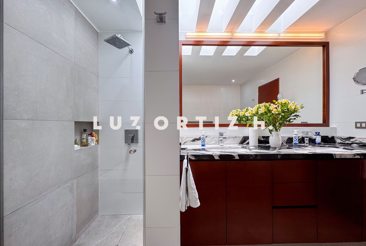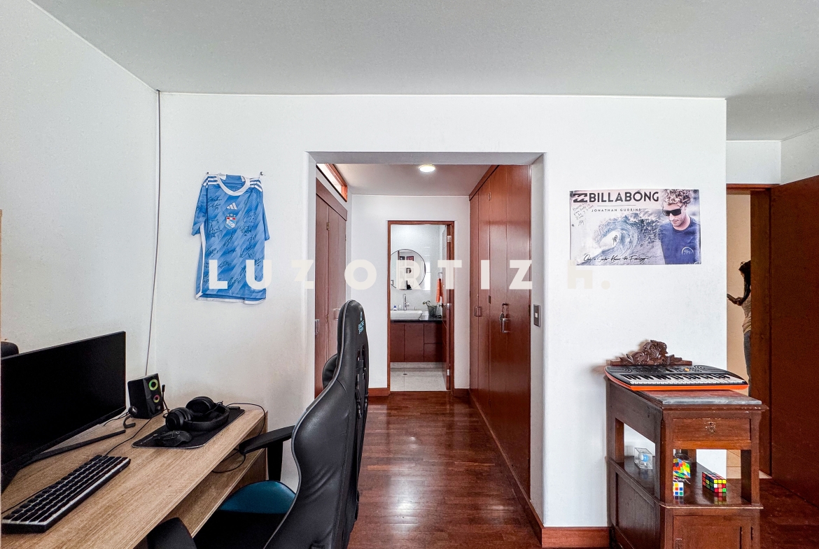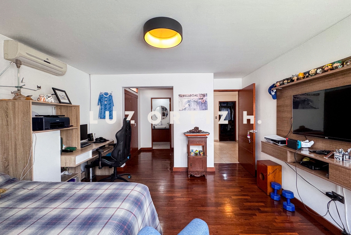 En la zona privada, encontramos tres habitaciones, dos de ellas con baño incorporado. La tercera habitación se utiliza actualmente como un walk-in closet muy espacioso, además de contar con una zona de depósito ideal para almacenamiento adicional.