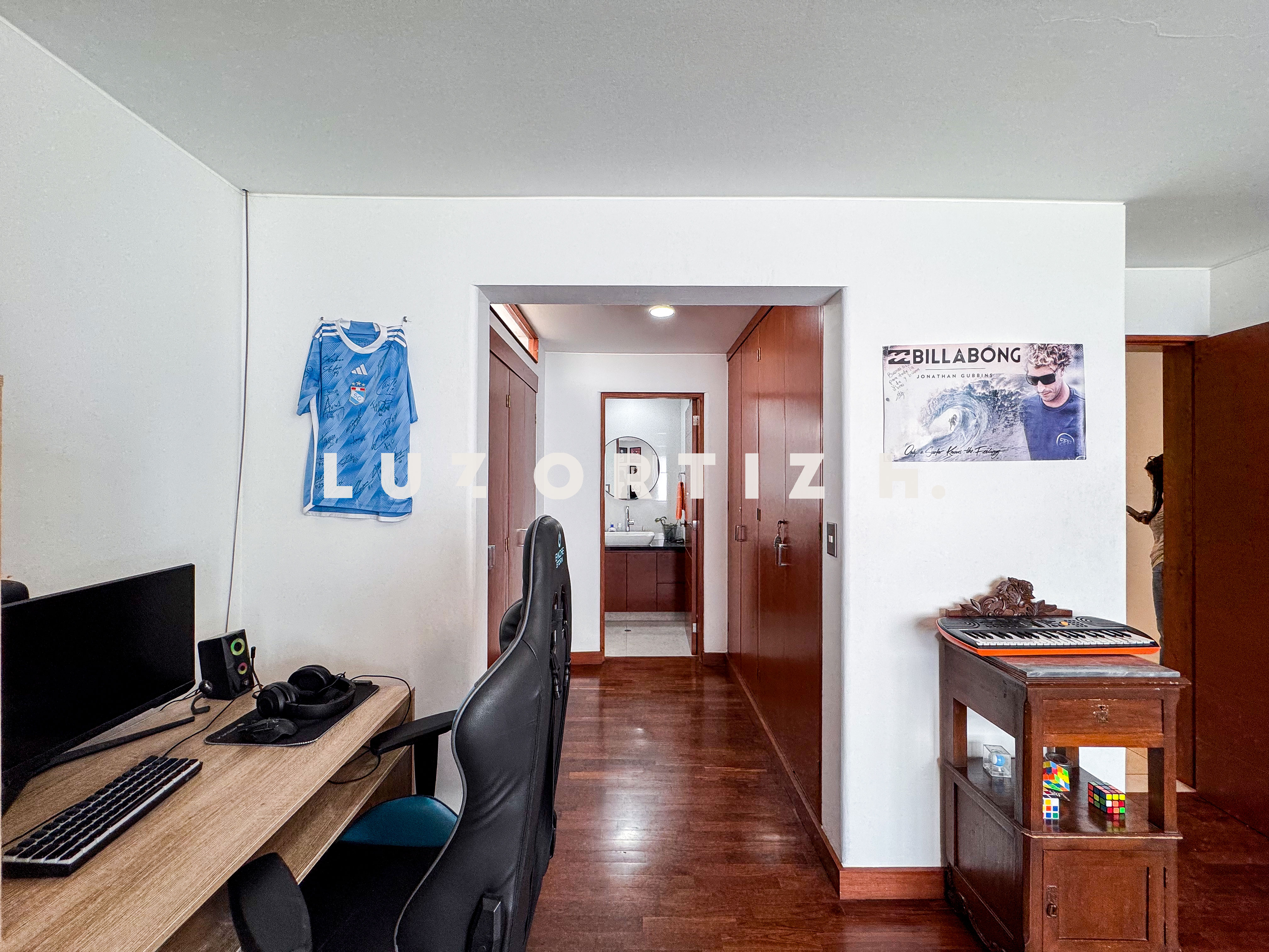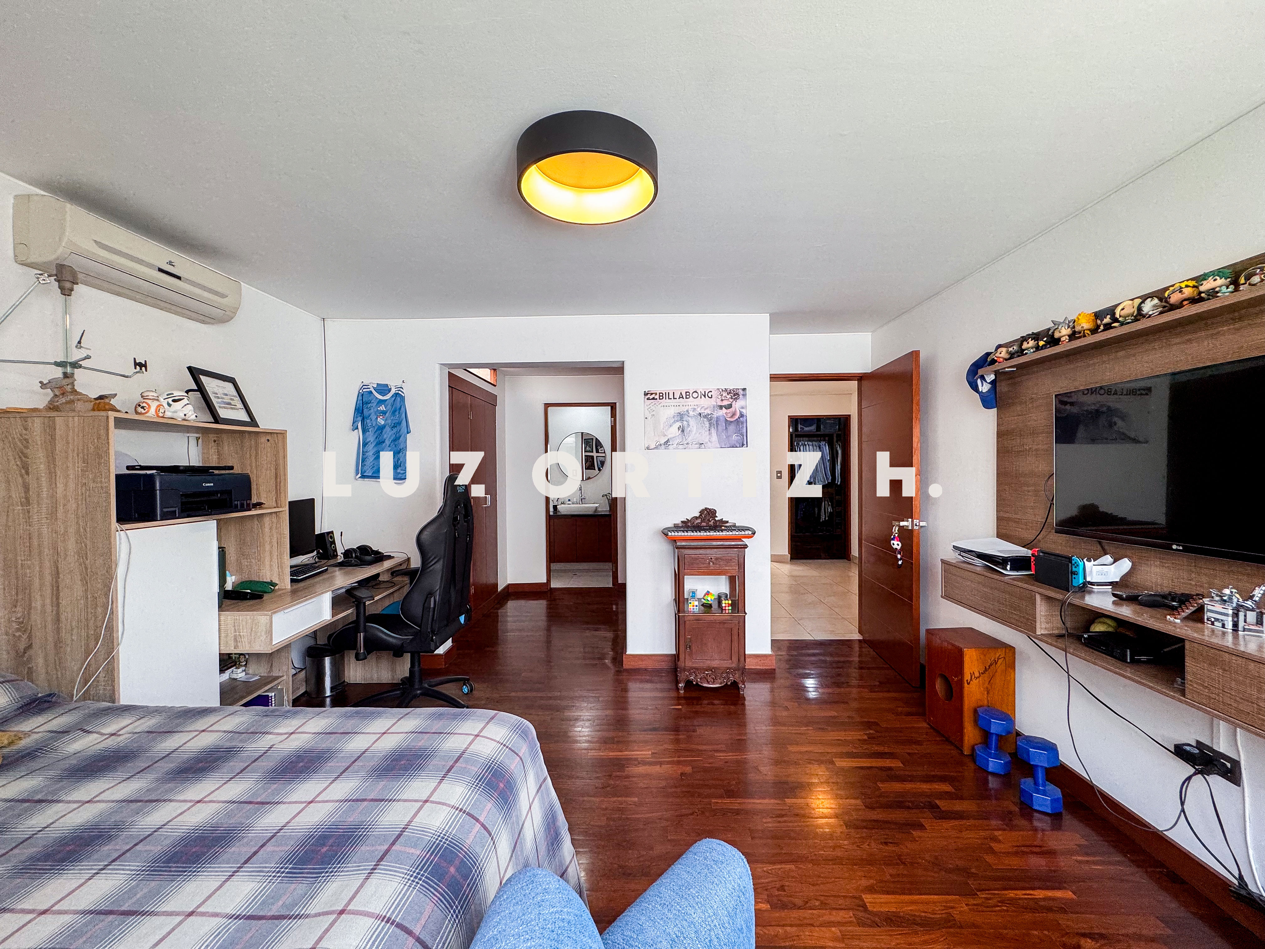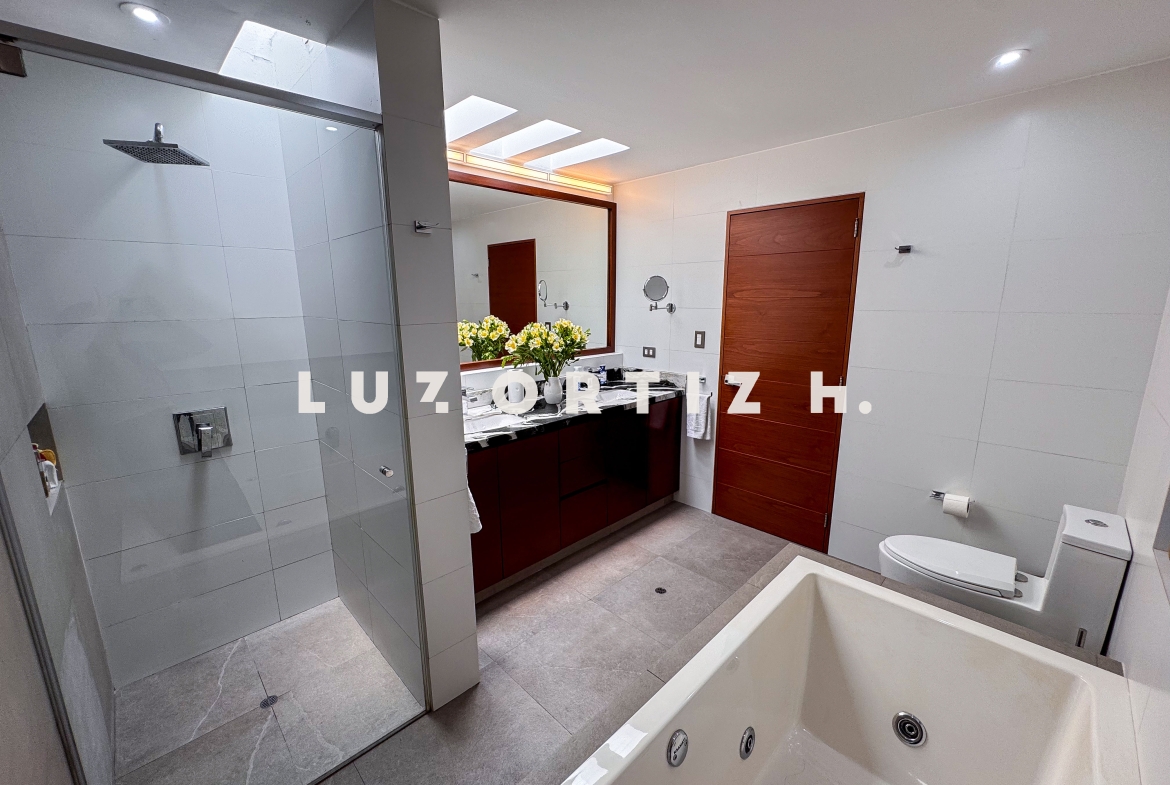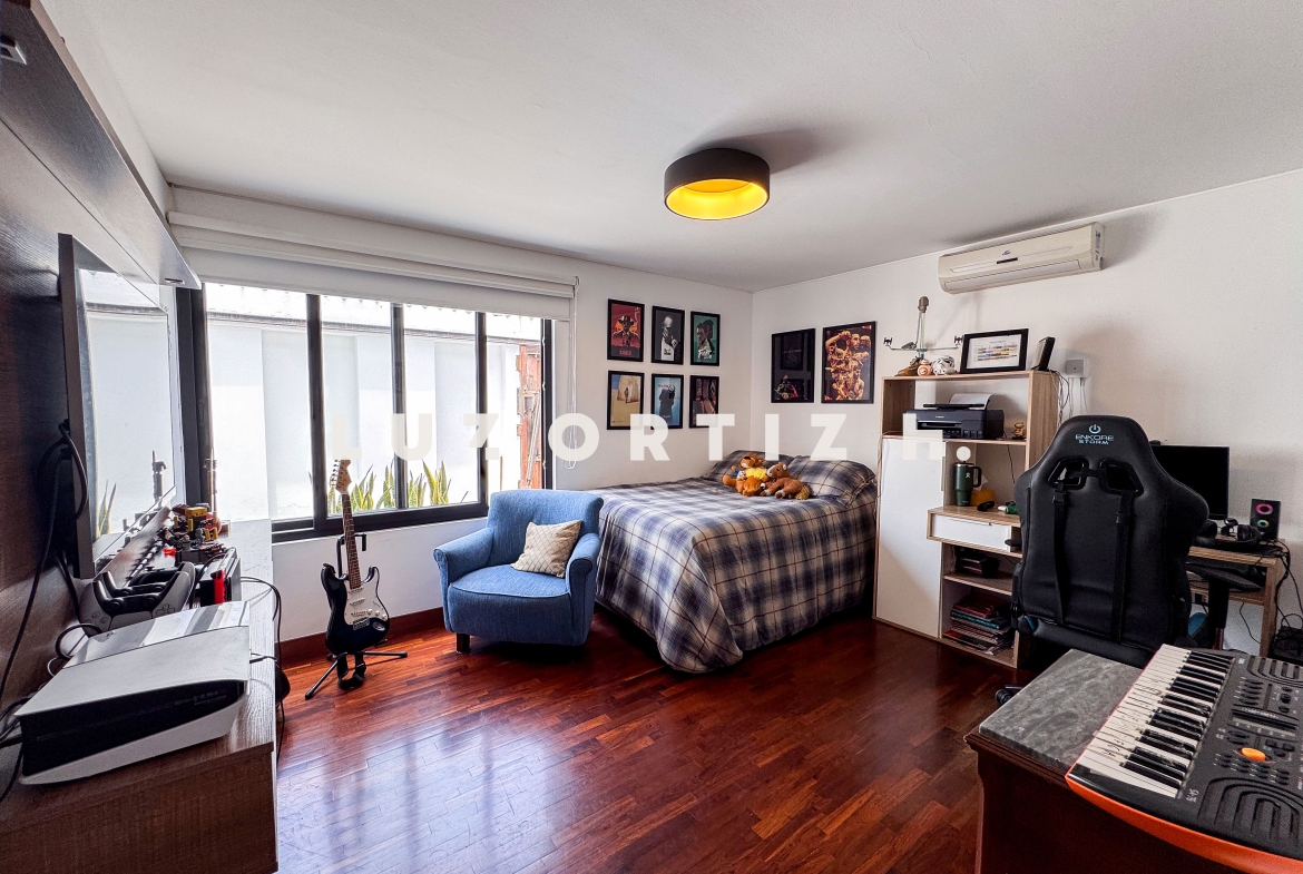 En la zona privada, encontramos tres habitaciones, dos de ellas con baño incorporado. La tercera habitación se utiliza actualmente como un walk-in closet muy espacioso, además de contar con una zona de depósito ideal para almacenamiento adicional.