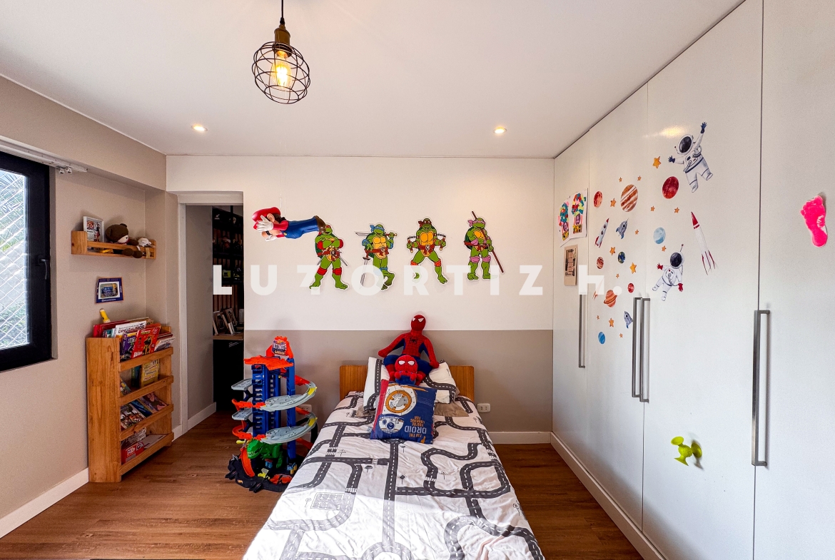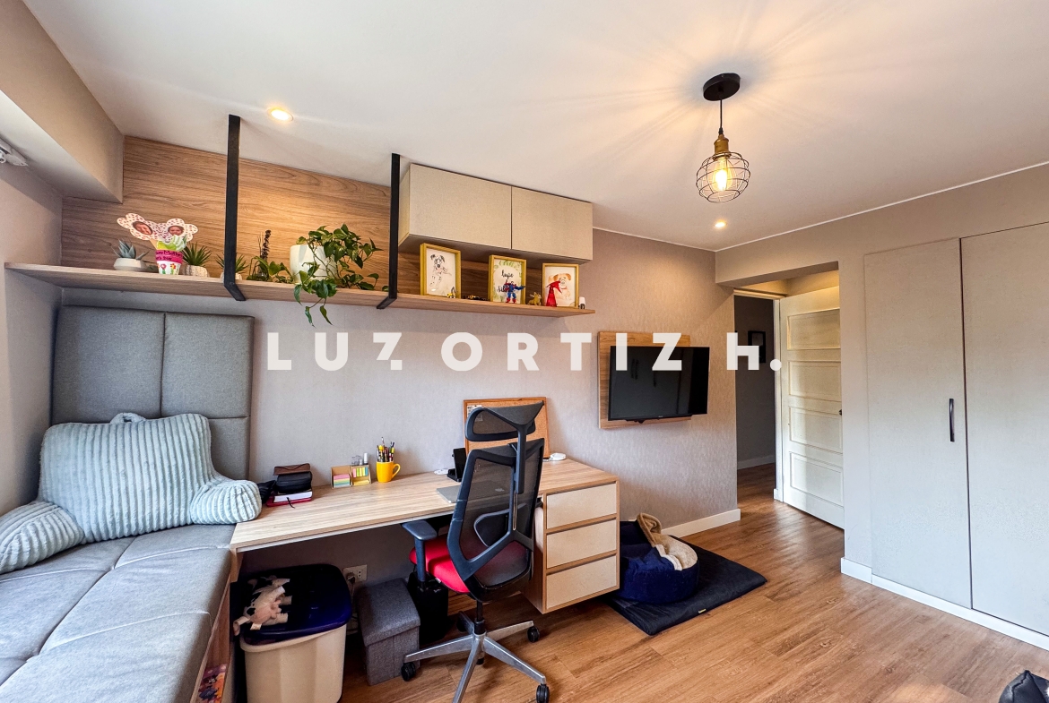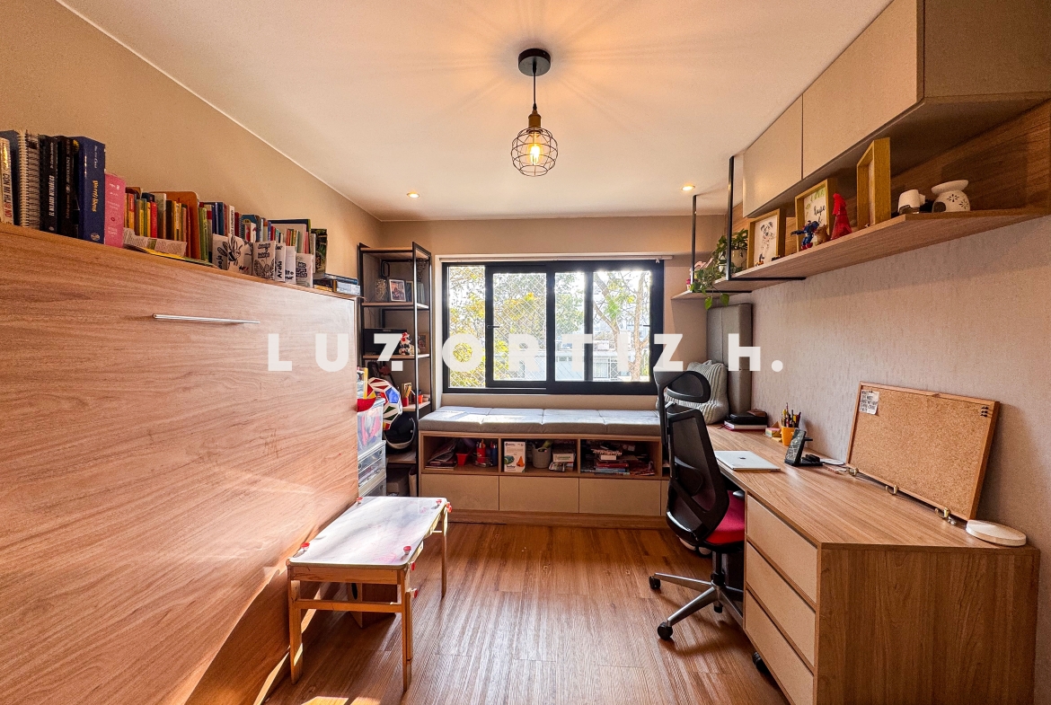 Seguido tenemos 03 habitaciones iluminadas, el principal con baño incorporado, un escritorio y un baño completo adicional para compartir que también funciona como baño de visitas.