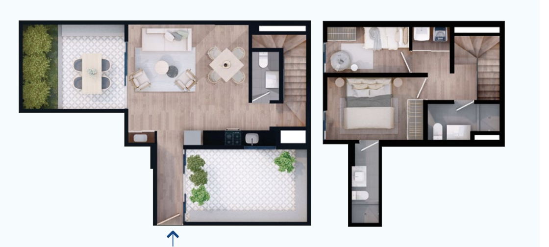 Este DUPLEX se encuentra en el piso 1 y cuenta con la siguiente distribucion:
