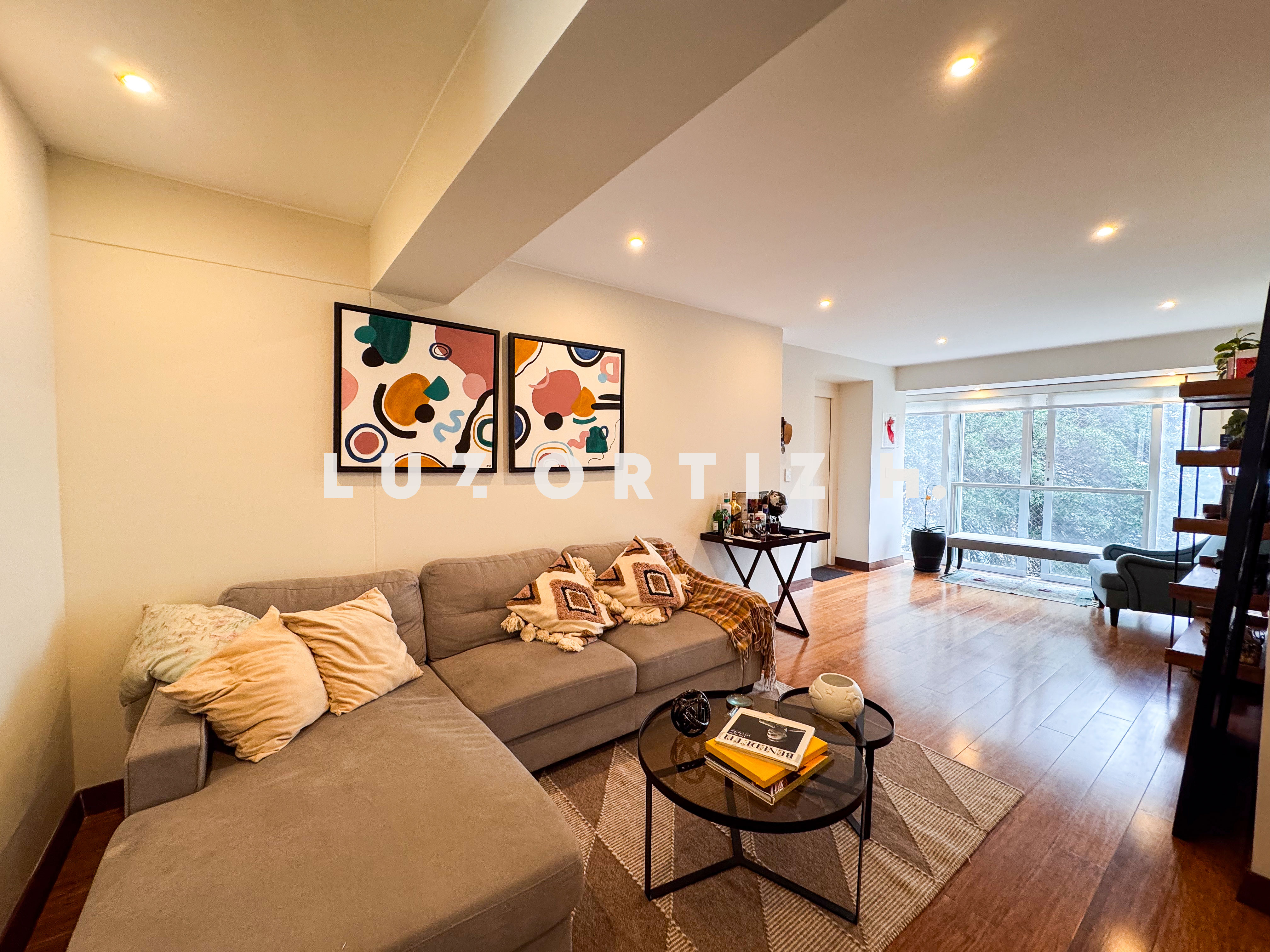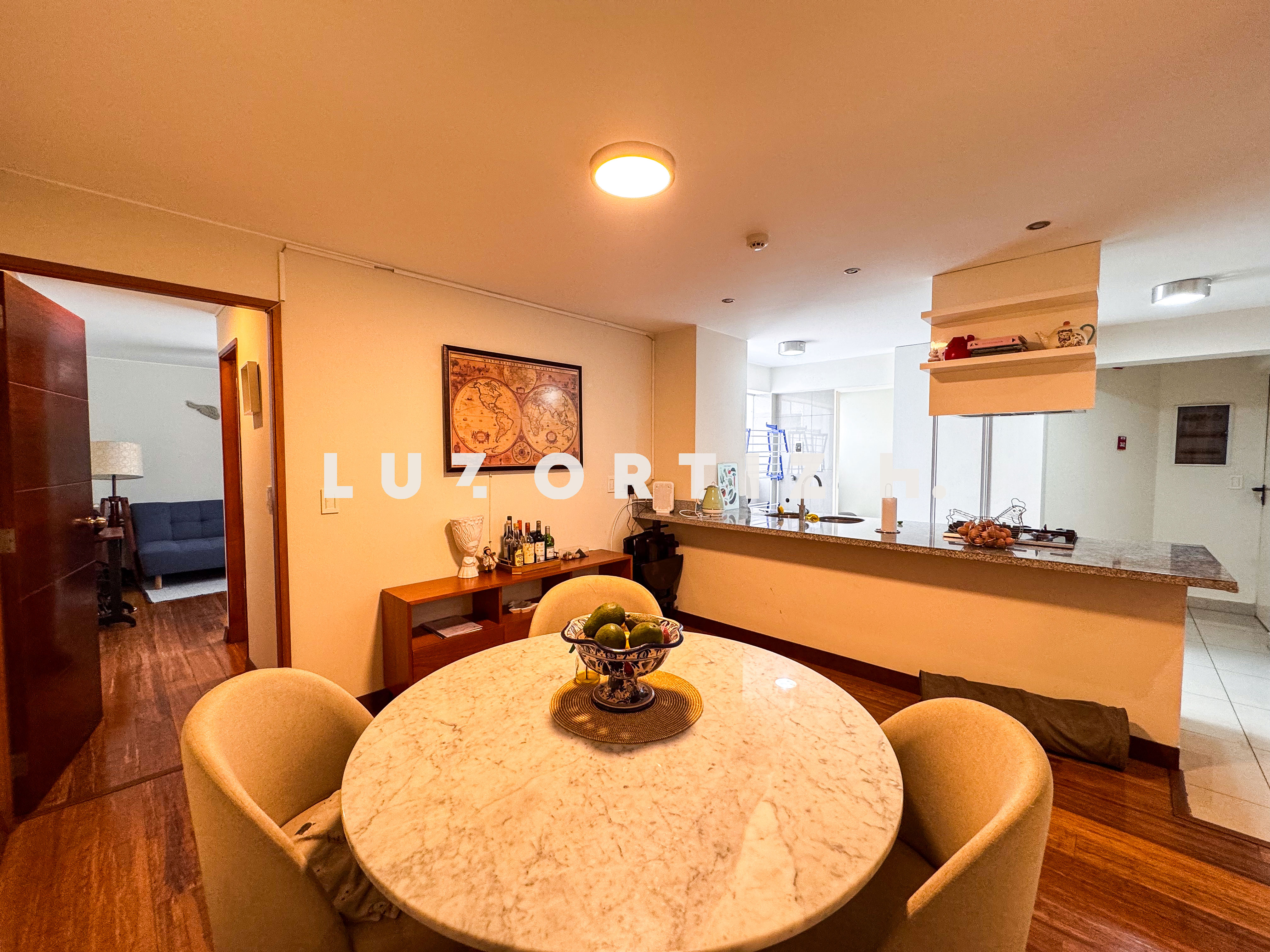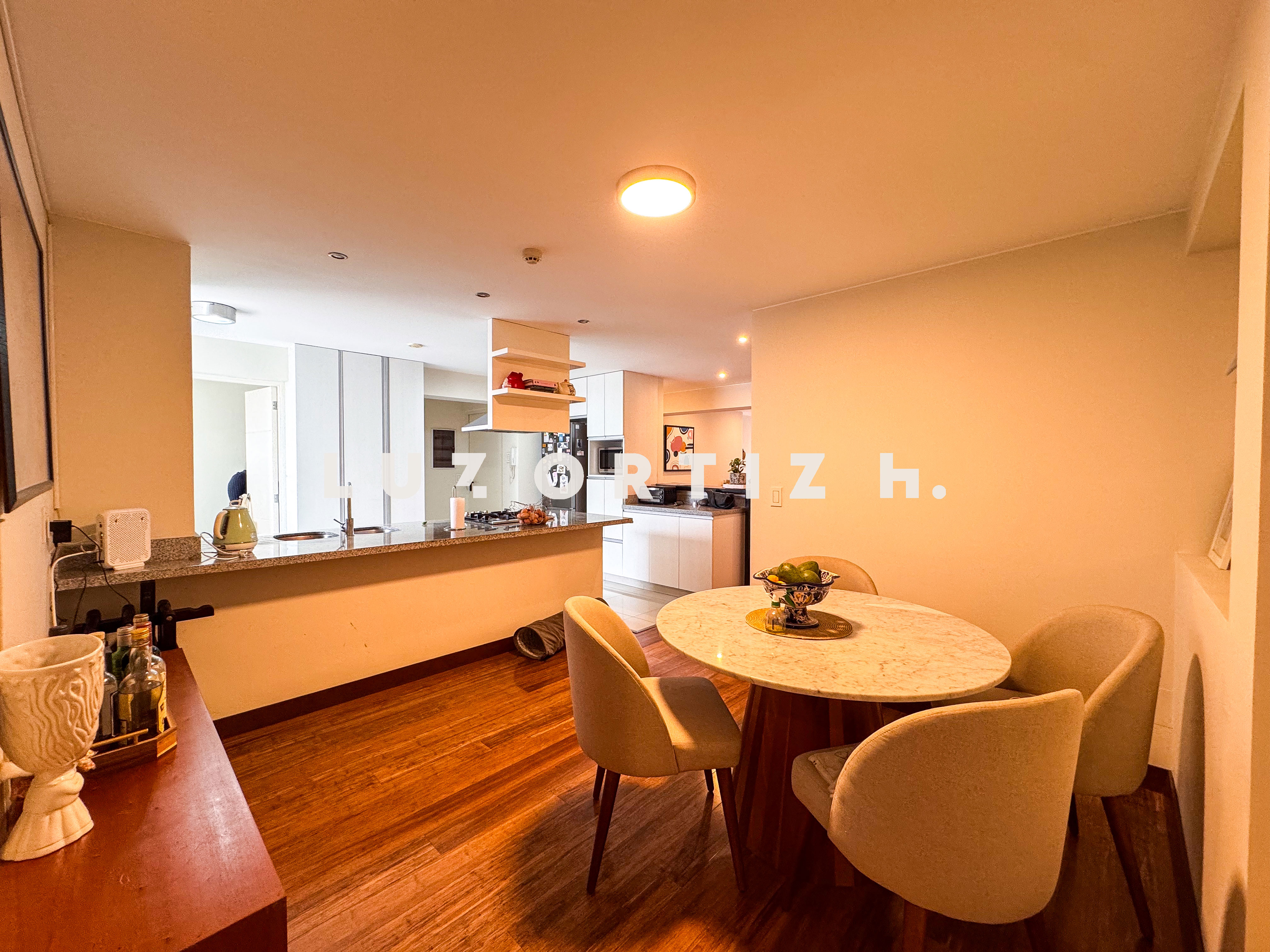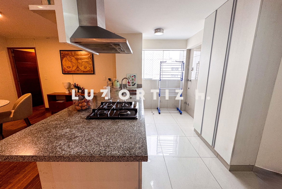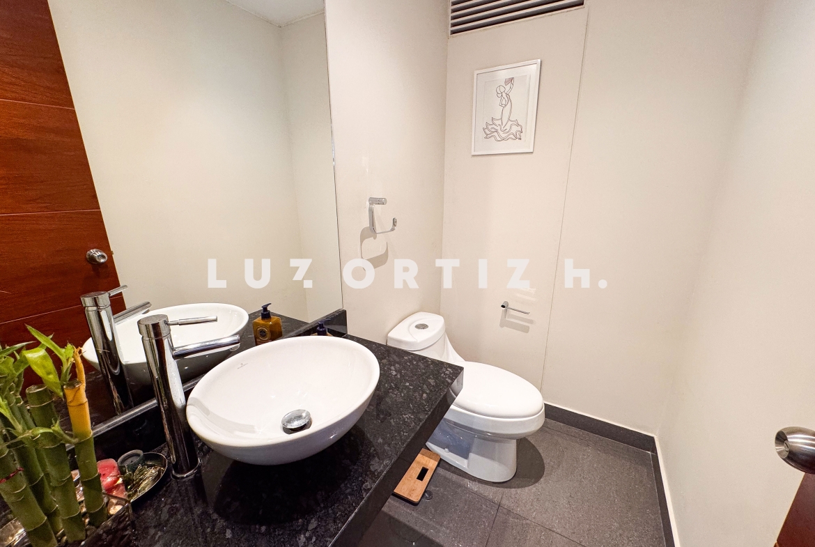 El departamento cuenta con una distribución muy funcional sala comedor con vista a la copa de los arboles, cocina abierta moderna que se integra perfectamente al espacio social.en el area privada cuenta con dos dormitorios, cada uno con baño incorporado, lo que brinda mayor privacidad y comodidad. Además, incluye un baño de visita,