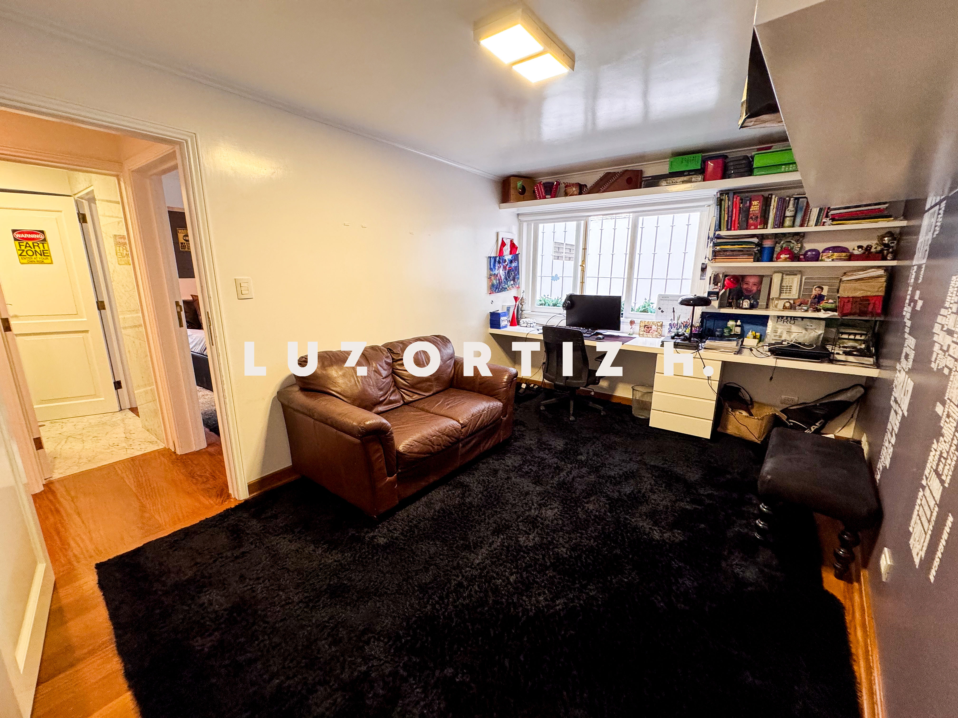 Espaciosa y luminosa, conecta directamente con una cómoda terraza, desde donde se puede disfrutar de una linda vista al Parque Alayza Grundy, creando un ambiente relajante y tranquilo.
