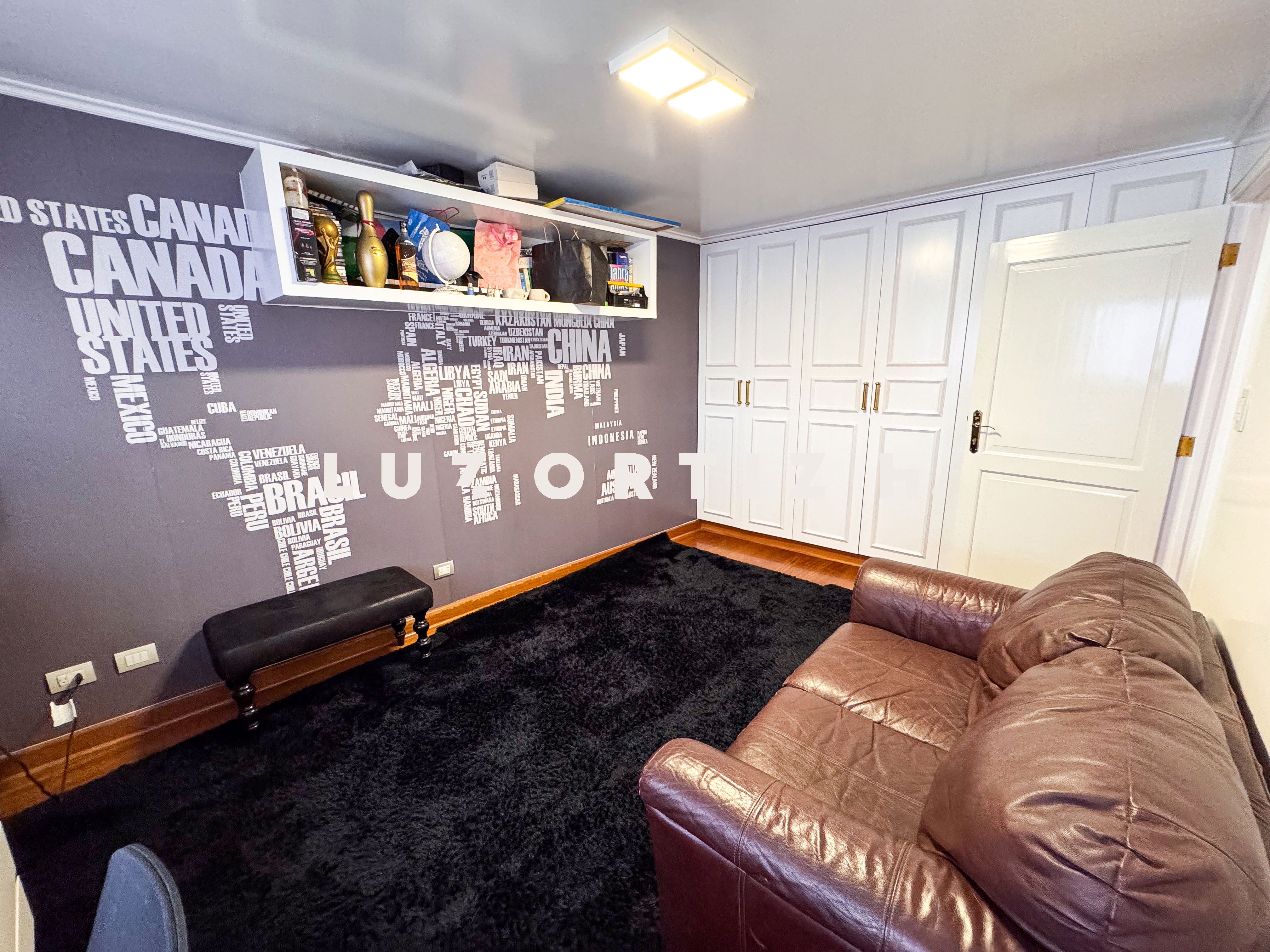 El departamento cuenta con 3 amplias habitaciones. La principal, de generoso tamaño, tiene un walk-in closet que ofrece un espacio de almacenamiento ideal, y un baño incorporado para mayor privacidad.