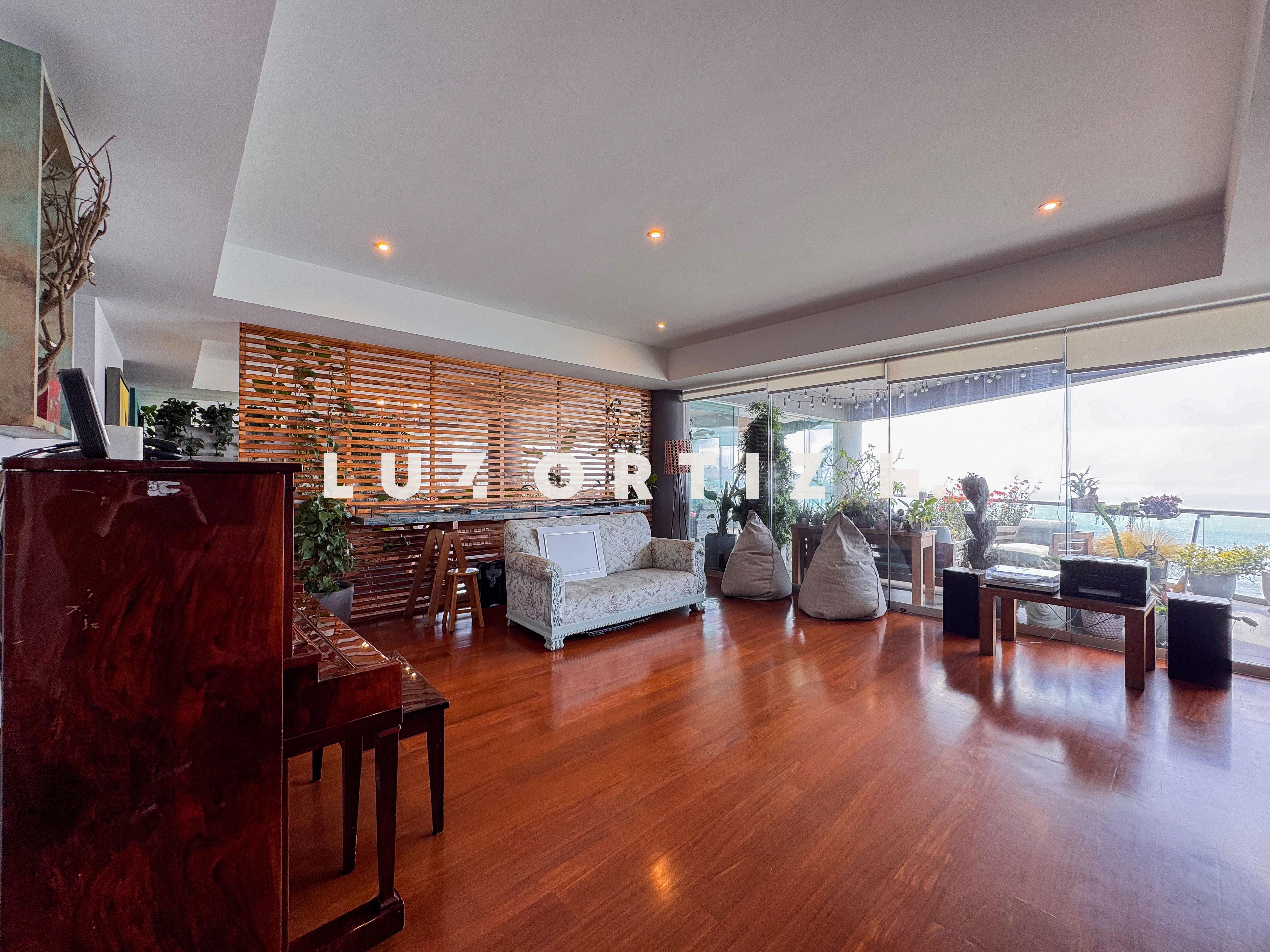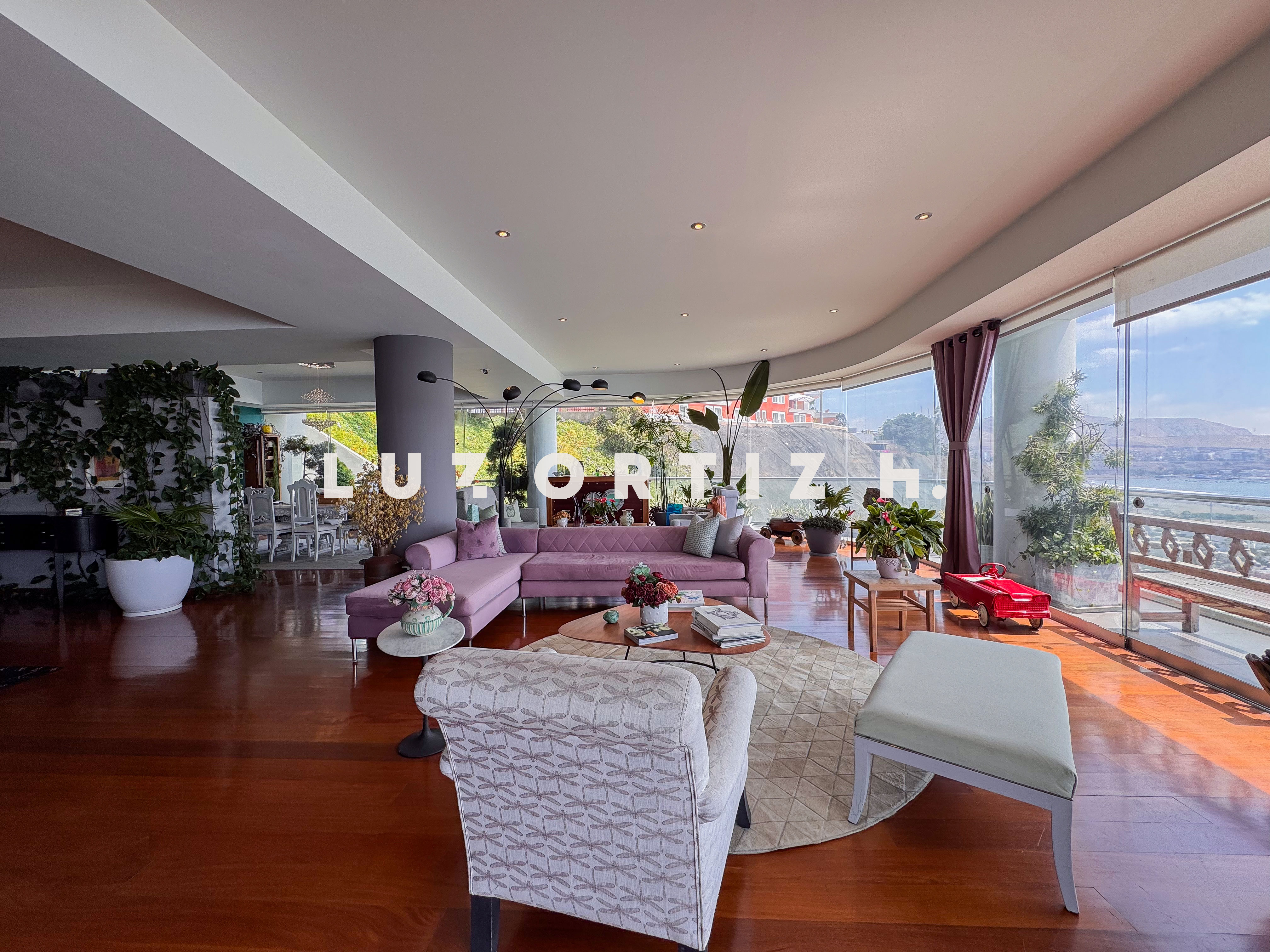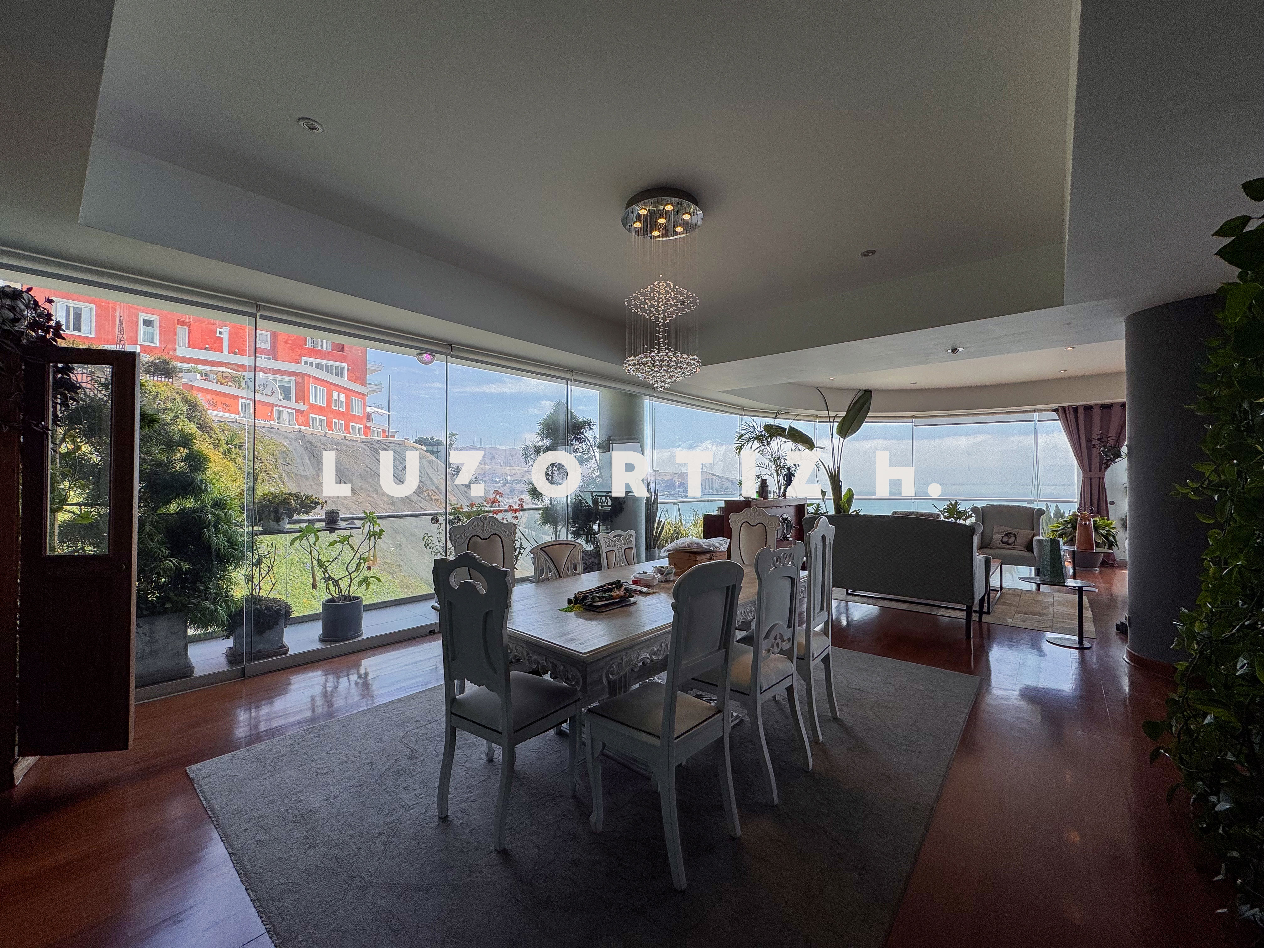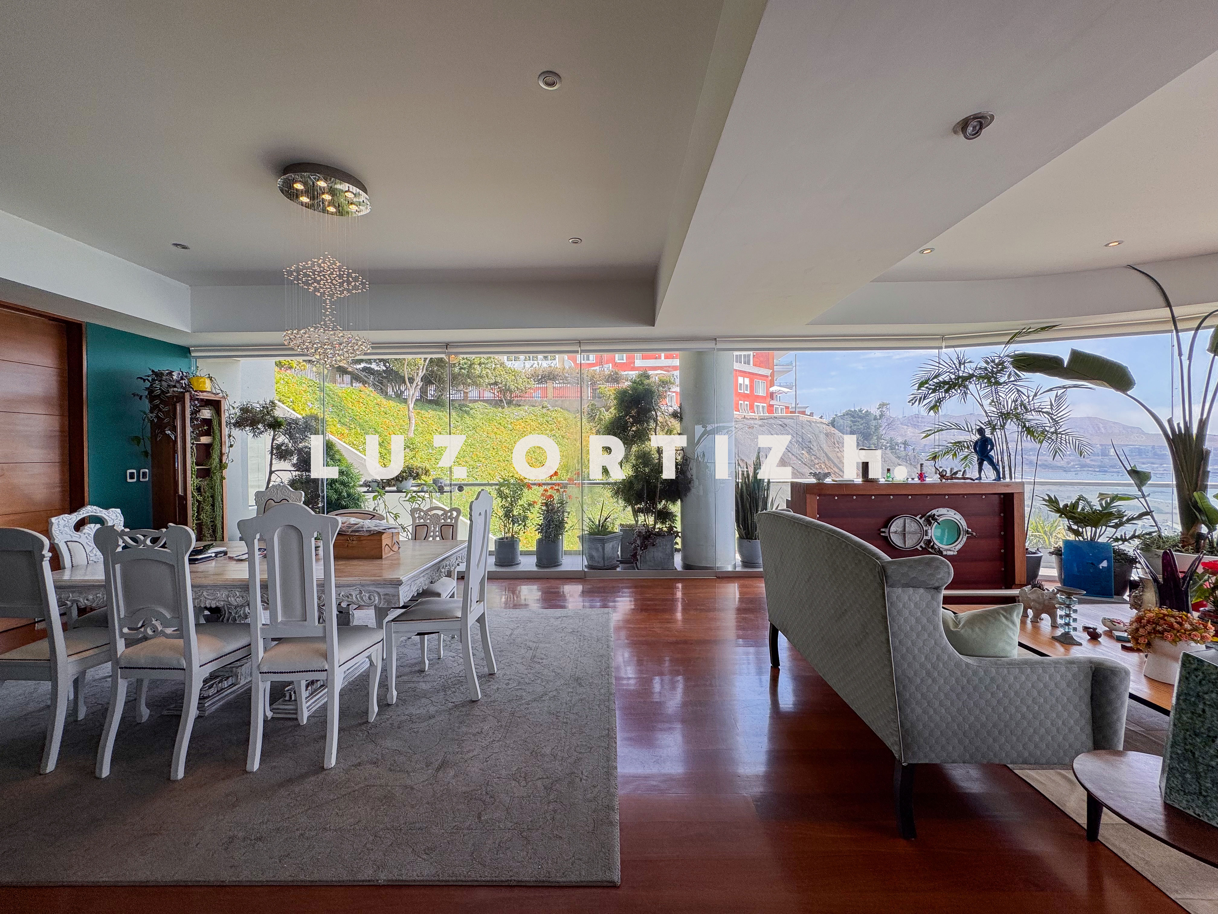 El departamento se encuentra en el piso 4 y destaca por sus amplios espacios y su vista directa y panorámica al océano. Cuenta con una gran sala comedor con ventanales de piso a techo que permiten disfrutar de una iluminación excepcional y del paisaje costero en todo momento. Además, dispone de una amplia terraza frontal con vista panorámica tanto al mar como a la ciudad, ideal para compartir reuniones sociales, descanso o simplemente disfrutar del atardecer.