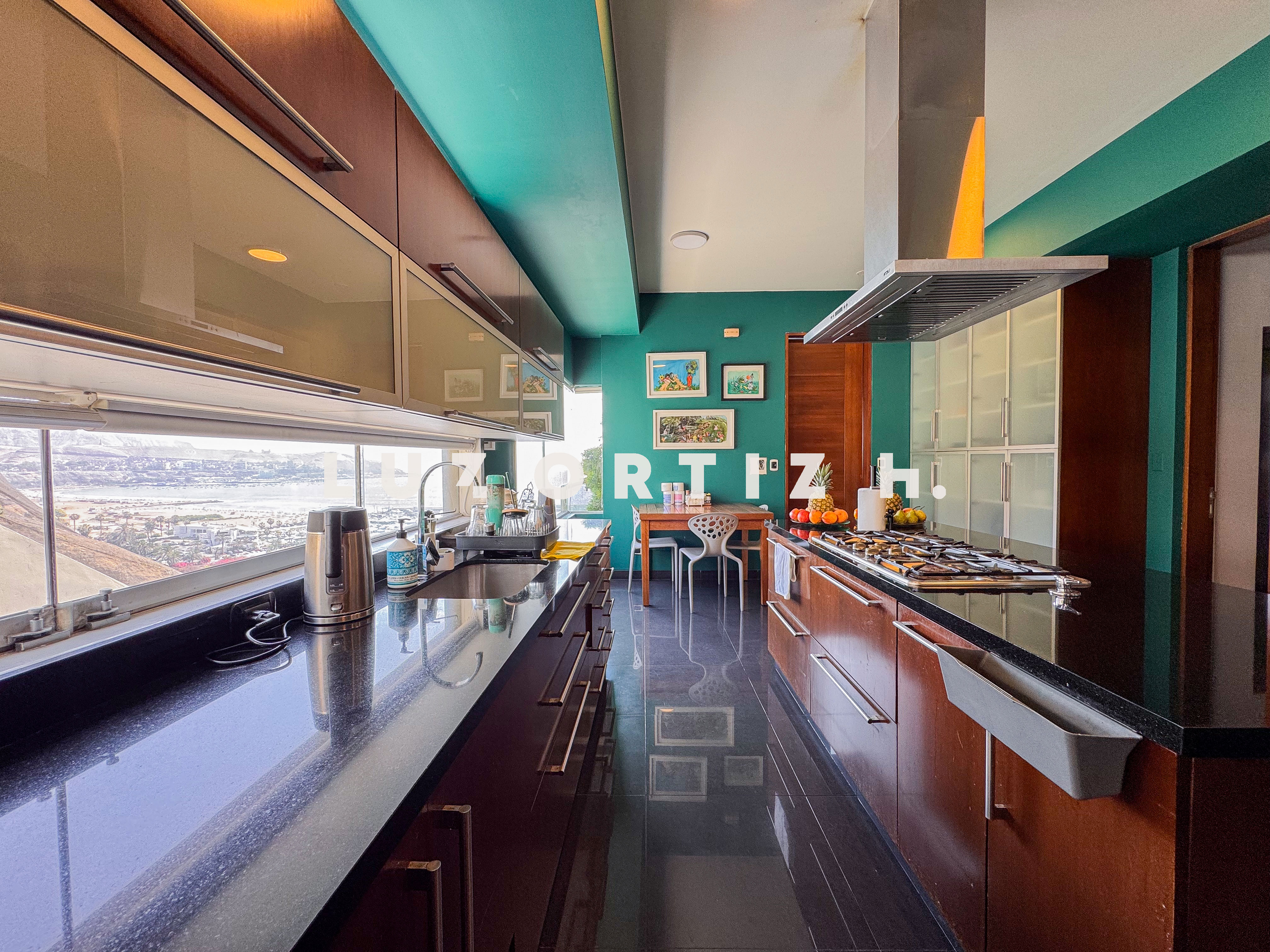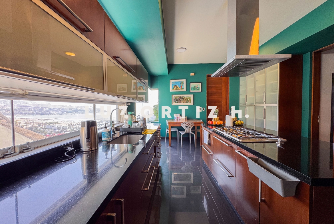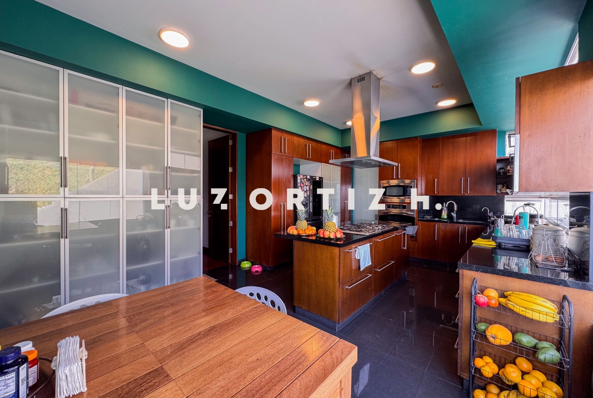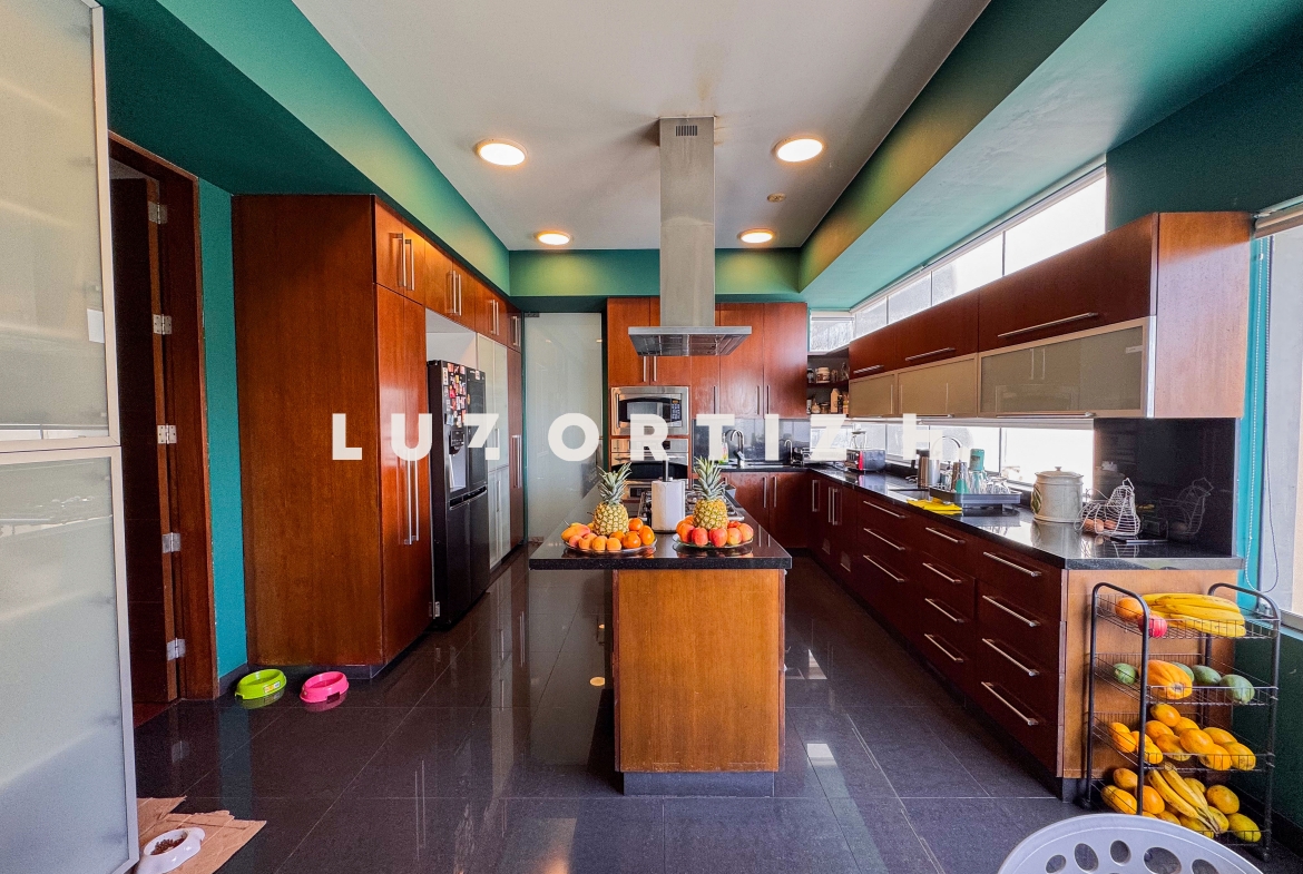 La cocina americana es moderna y funcional, equipada con muebles altos y bajos, comedor de diario y acabados de primera. Cuenta también con zona de lavandería, cuarto y baño de servicio completos, así como baño de visitas, brindando comodidad y practicidad en el día a día.