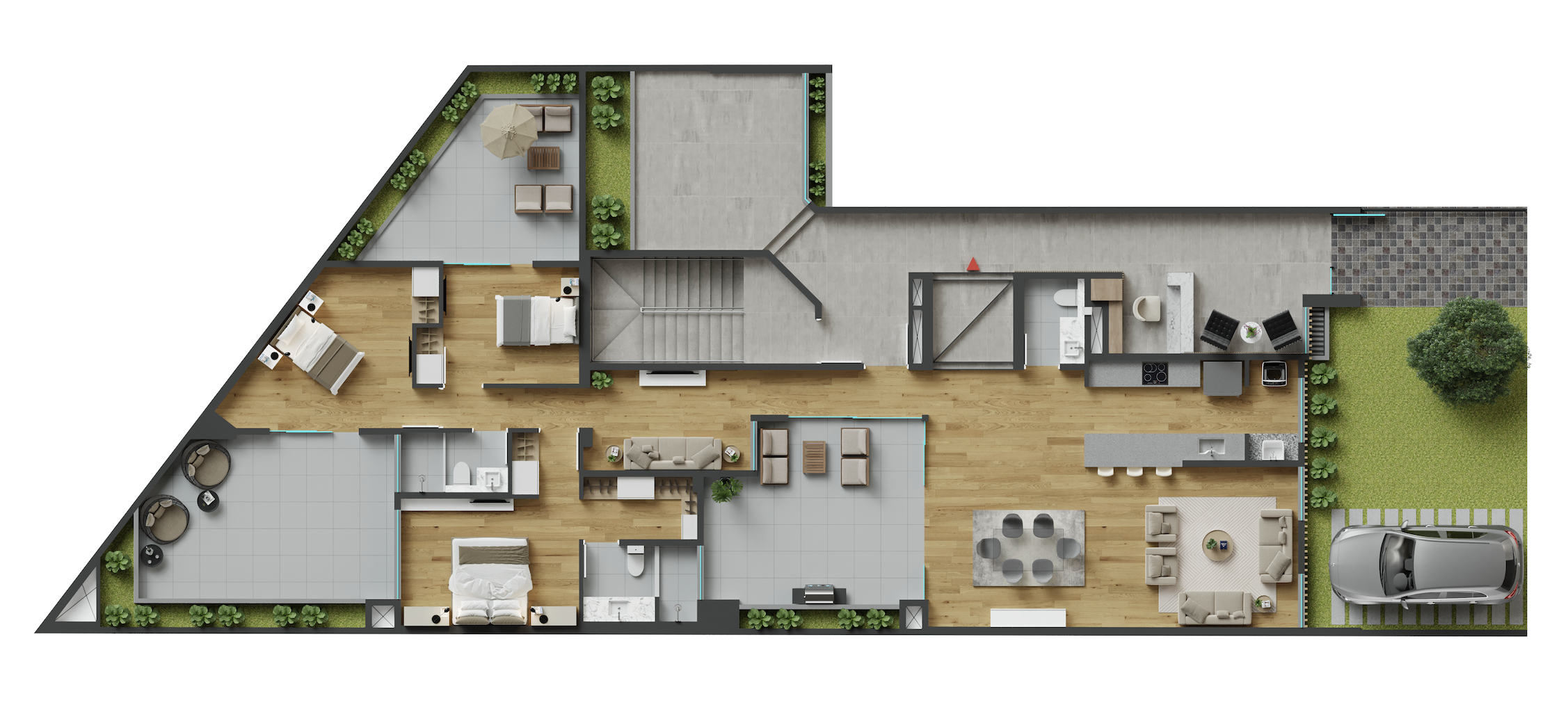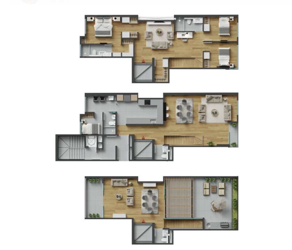 Este proyecto ofrece unidades de 2 y 3 dormitorios, disponibles en formatos flats, dúplex y triplex