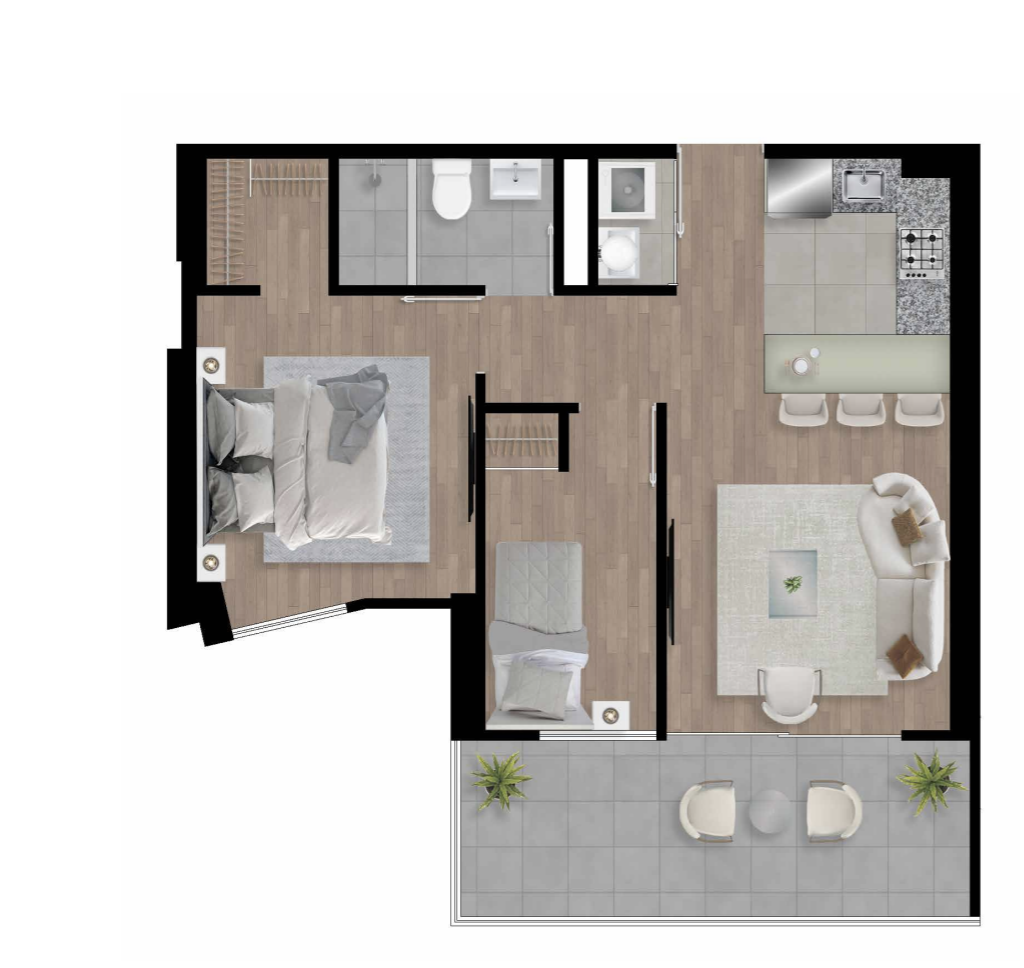 Contamos con unidades disponibles de 1, 2 y 3 dormitorios desde los 43m² hasta los 87m².
