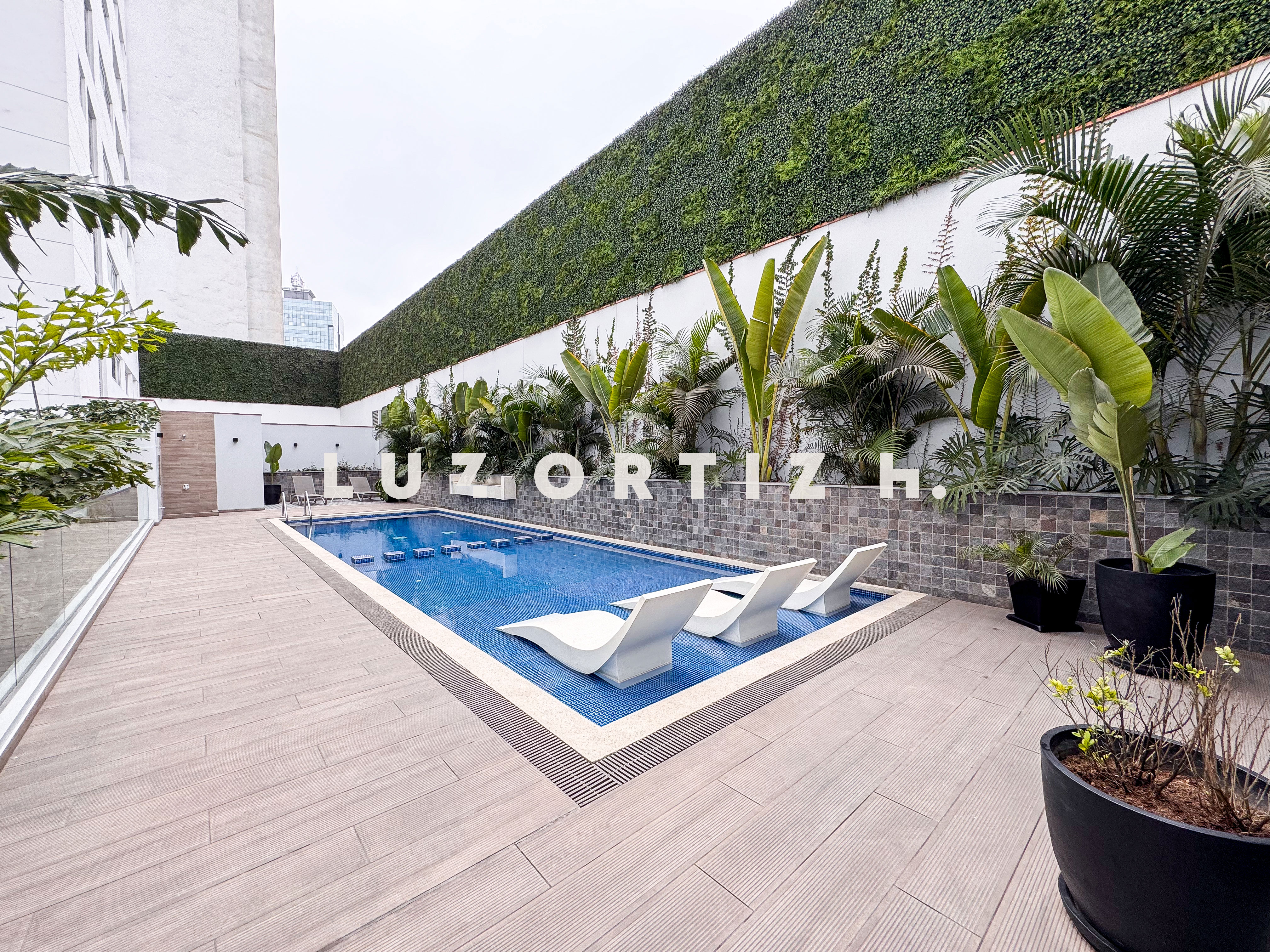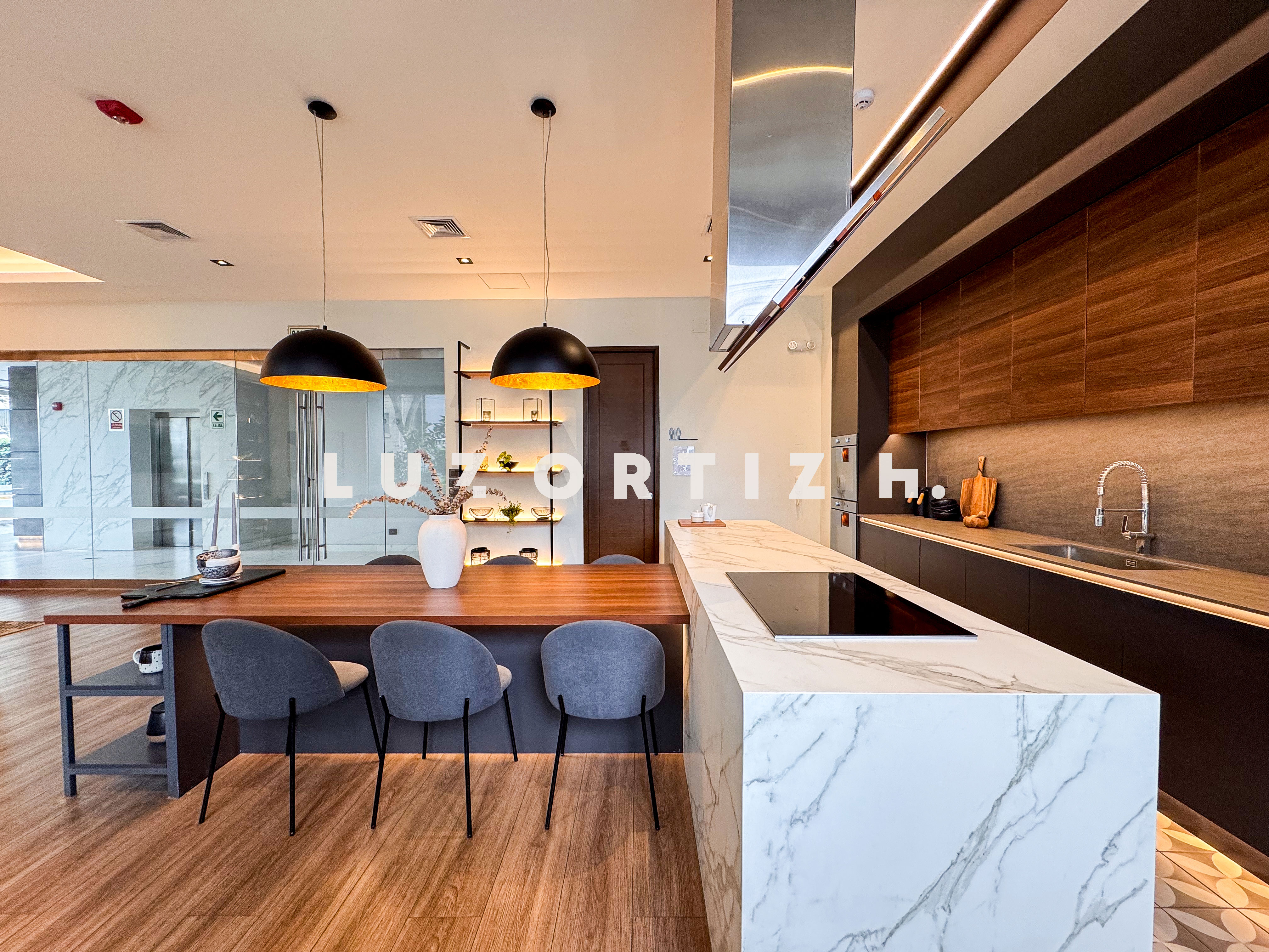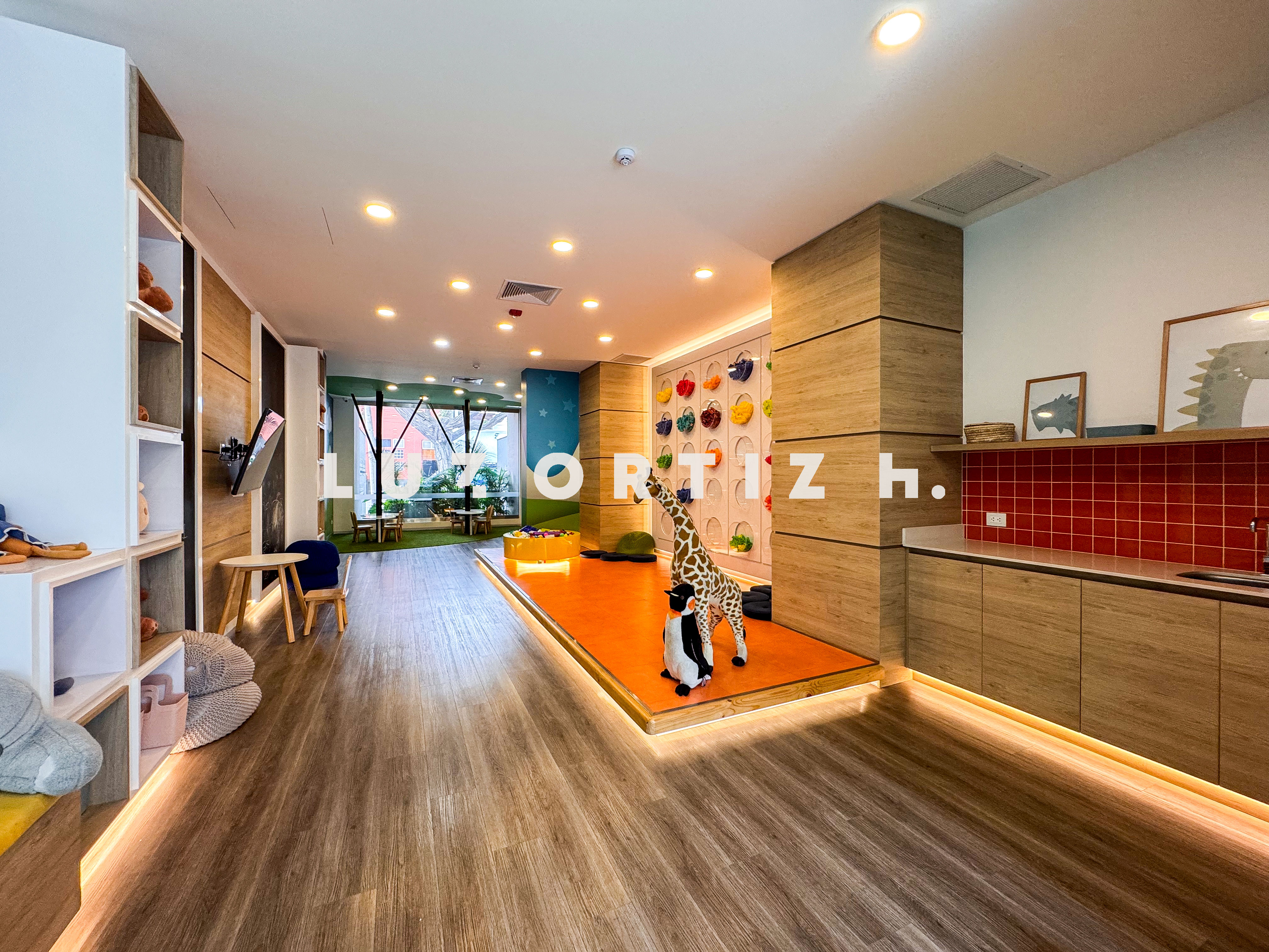 Ademas cuenta con áreas comunes como: co-working, piscina, gimnasio, gourmet lounge, kids room, friends room, y lobby de ingreso con seguridad 24hrs, entre otras.