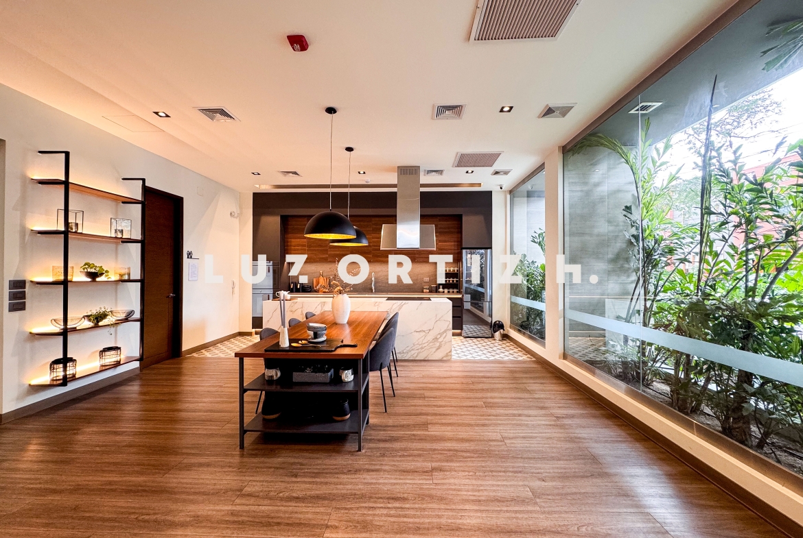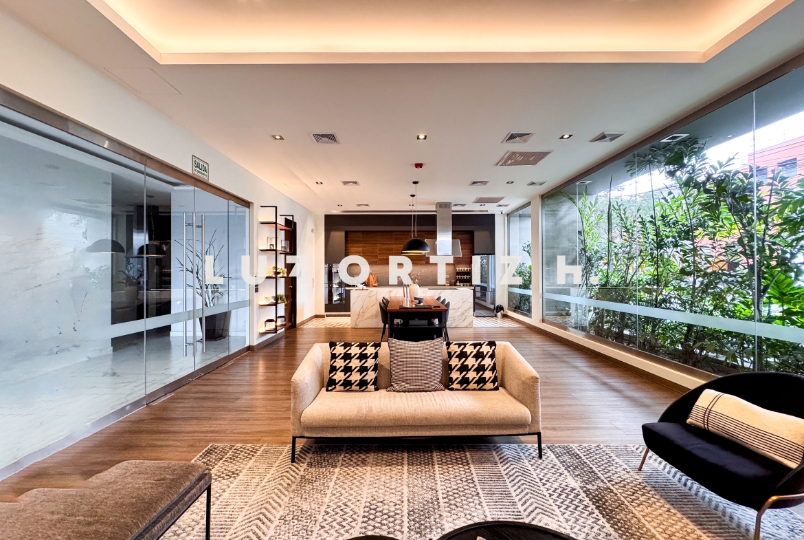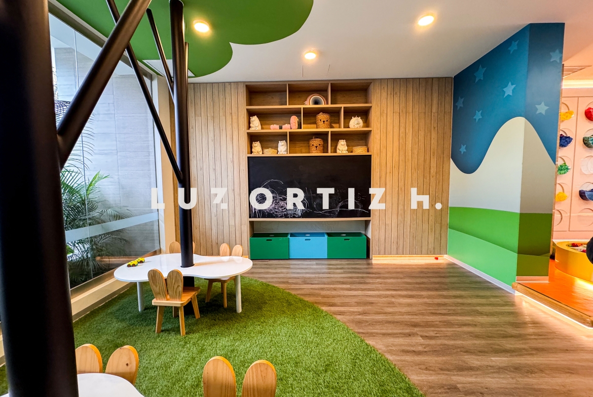 Ademas cuenta con áreas comunes como: co-working, piscina, gimnasio, gourmet lounge, kids room, friends room, y lobby de ingreso con seguridad 24hrs, entre otras.