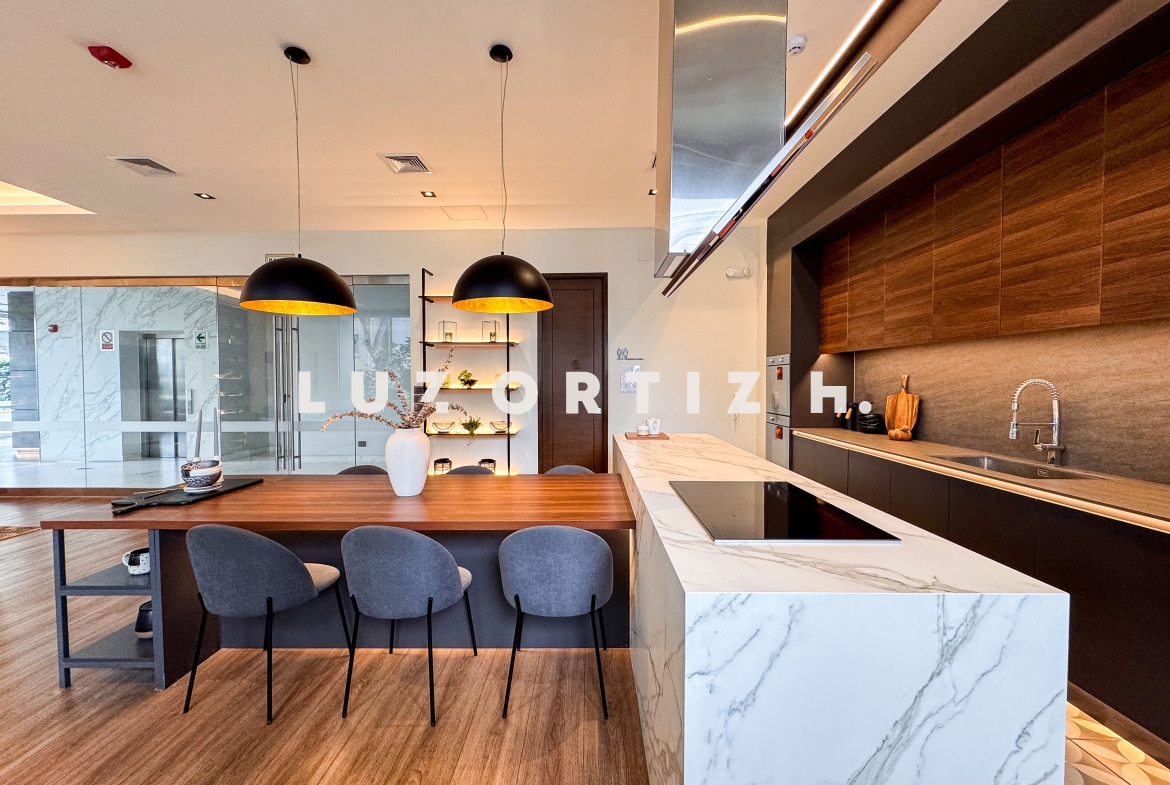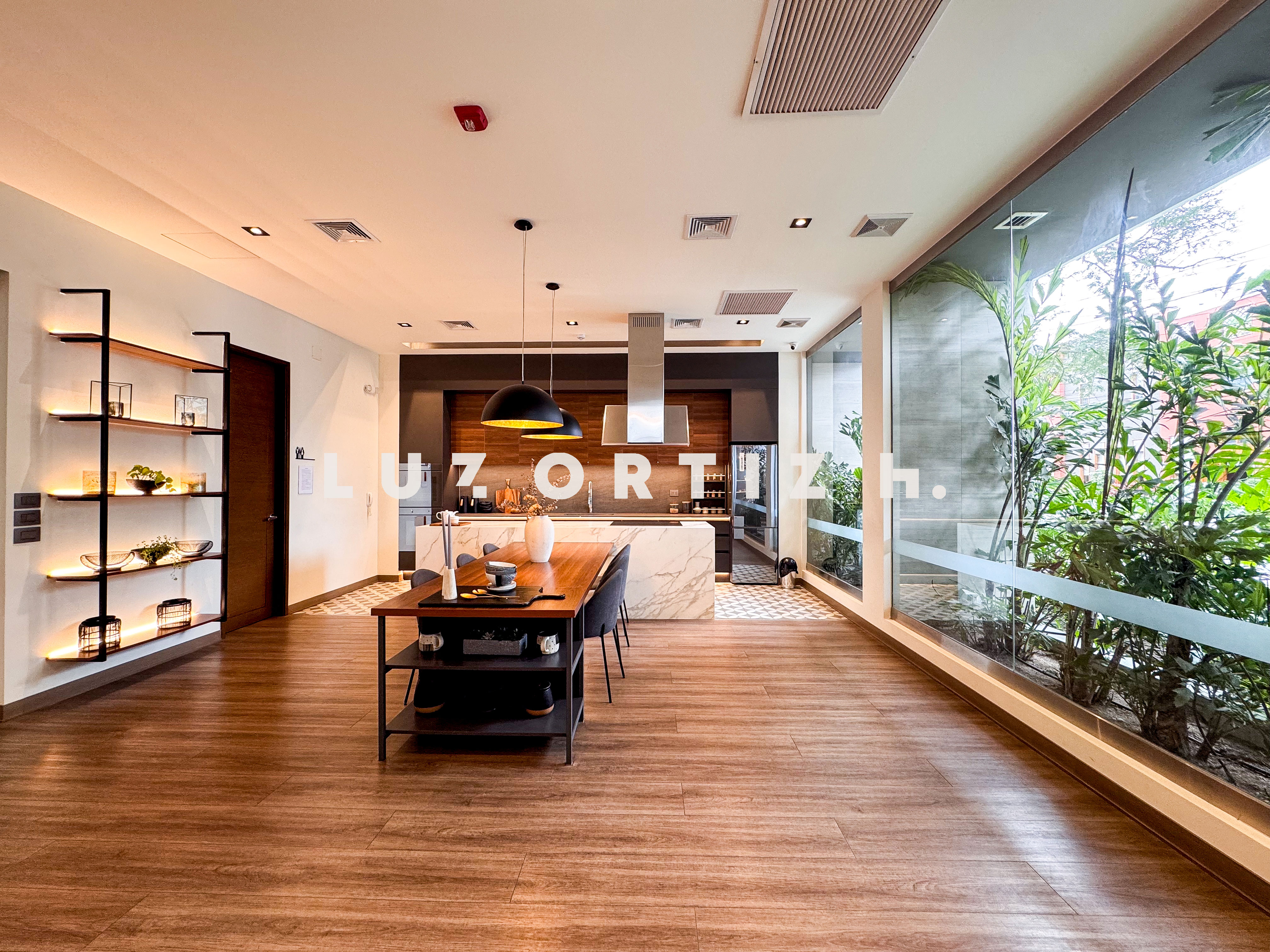 Contamos con flats desde 132m², de 2 dormitorios, con acabados de alta gamma, pisos de madera estructurada, pisos de porcelanato, muebles altos y bajos con acabados de neolith en cocina y totalmente equipada con artefactos Gorenje.