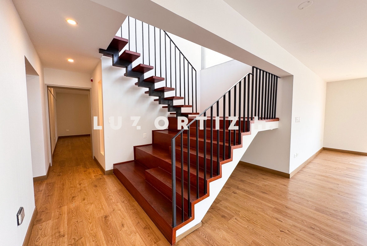 En el segundo nivel, se encuentra el dormitorio principal, amplio y luminoso, con un gran walk-in closet y baño incorporado. Este piso cuenta también con una segunda sala que puede adaptarse como family room, área de estudio o home office. La terraza privada con jardín y zona de parrilla brinda un espacio ideal para reuniones y momentos de descanso.