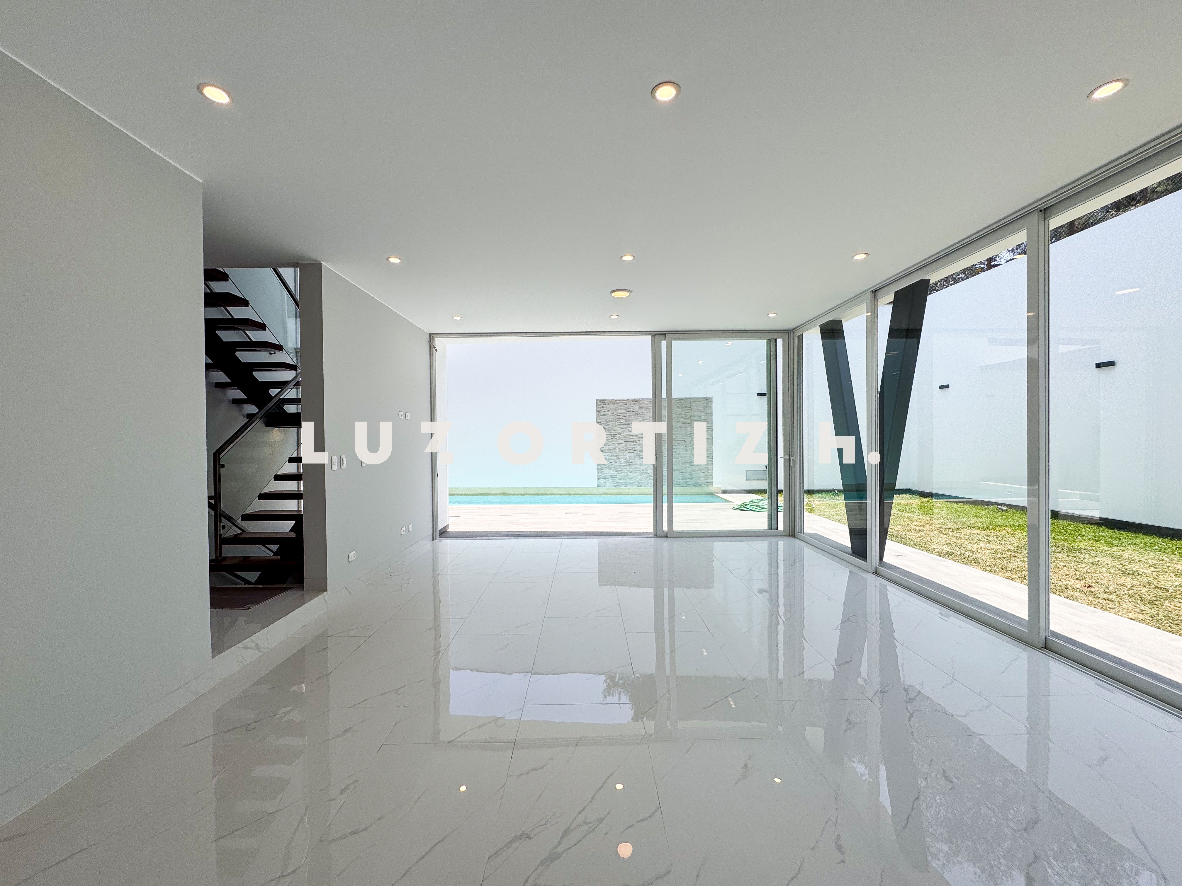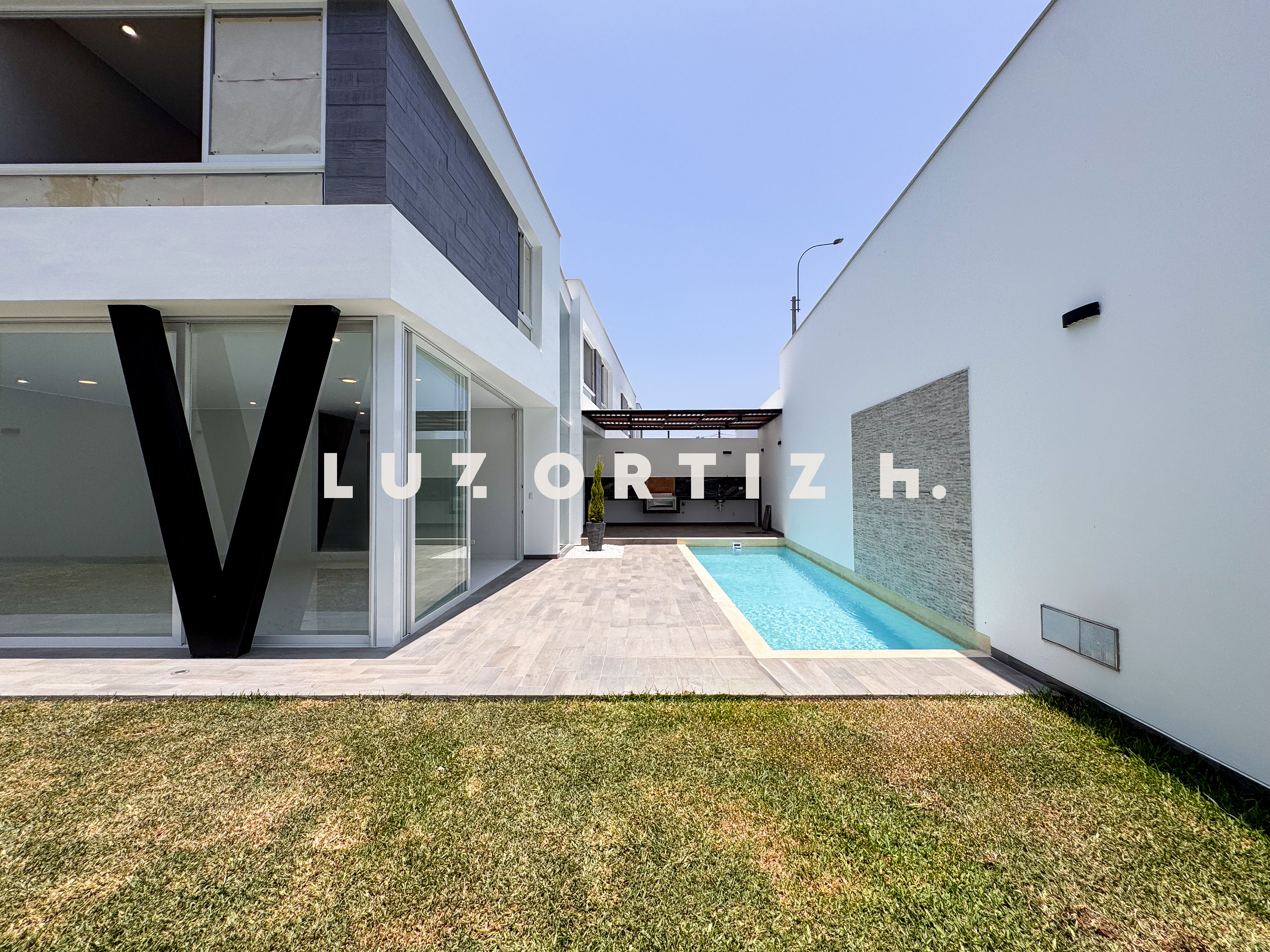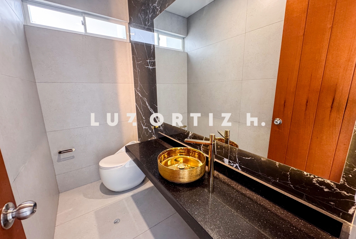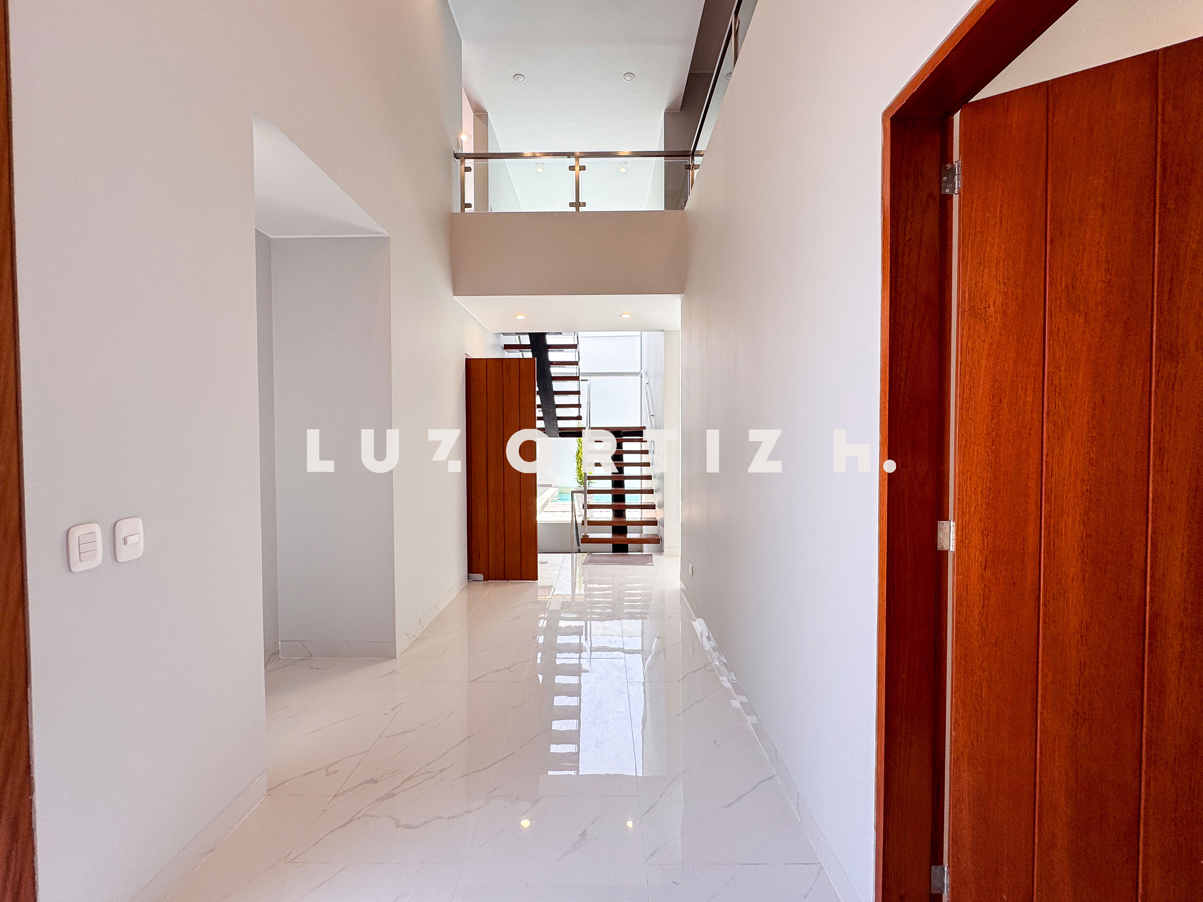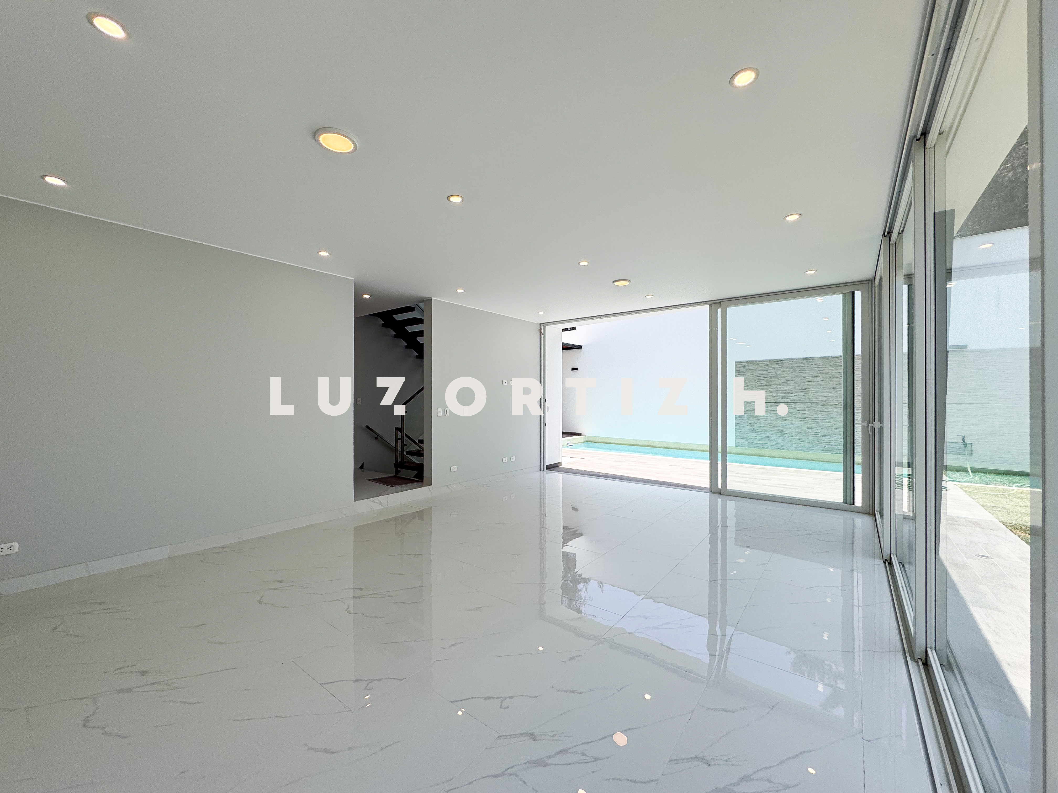 En el primer nivel, un elegante hall de ingreso da la bienvenida a una amplia sala y comedor con excelente iluminación natural y vista directa a la terraza. La terraza cuenta con una zona de parrilla ideal para reuniones sociales y familiares, además de una piscina privada perfecta para disfrutar del sol durante todo el año. La cocina es cerrada, moderna y funcional, equipada con muebles altos y bajos en melamina de alta calidad y tablero de granito. También dispone de un baño de visitas y un estudio u oficina, ideal para el trabajo remoto o como sala de lectura.