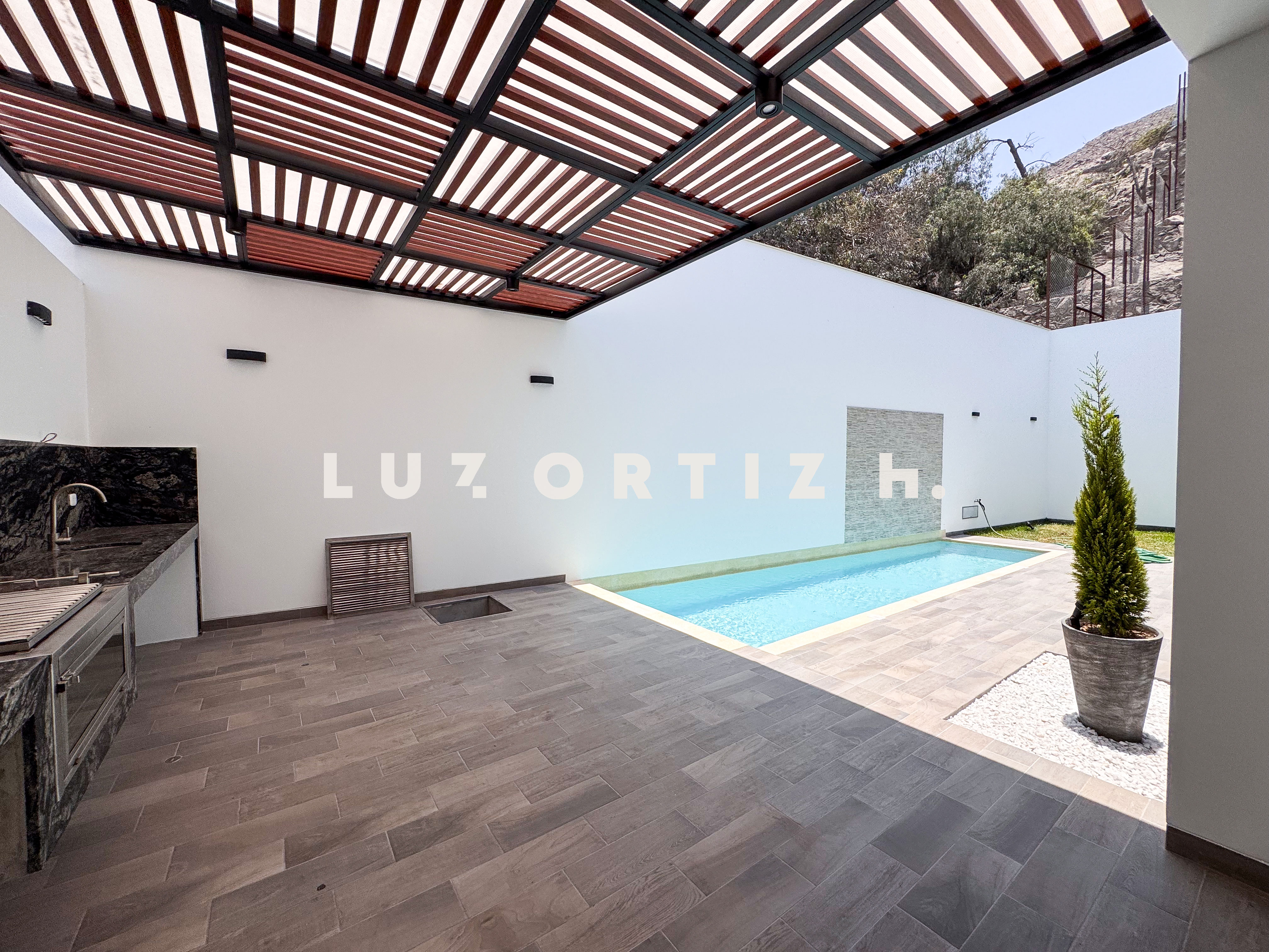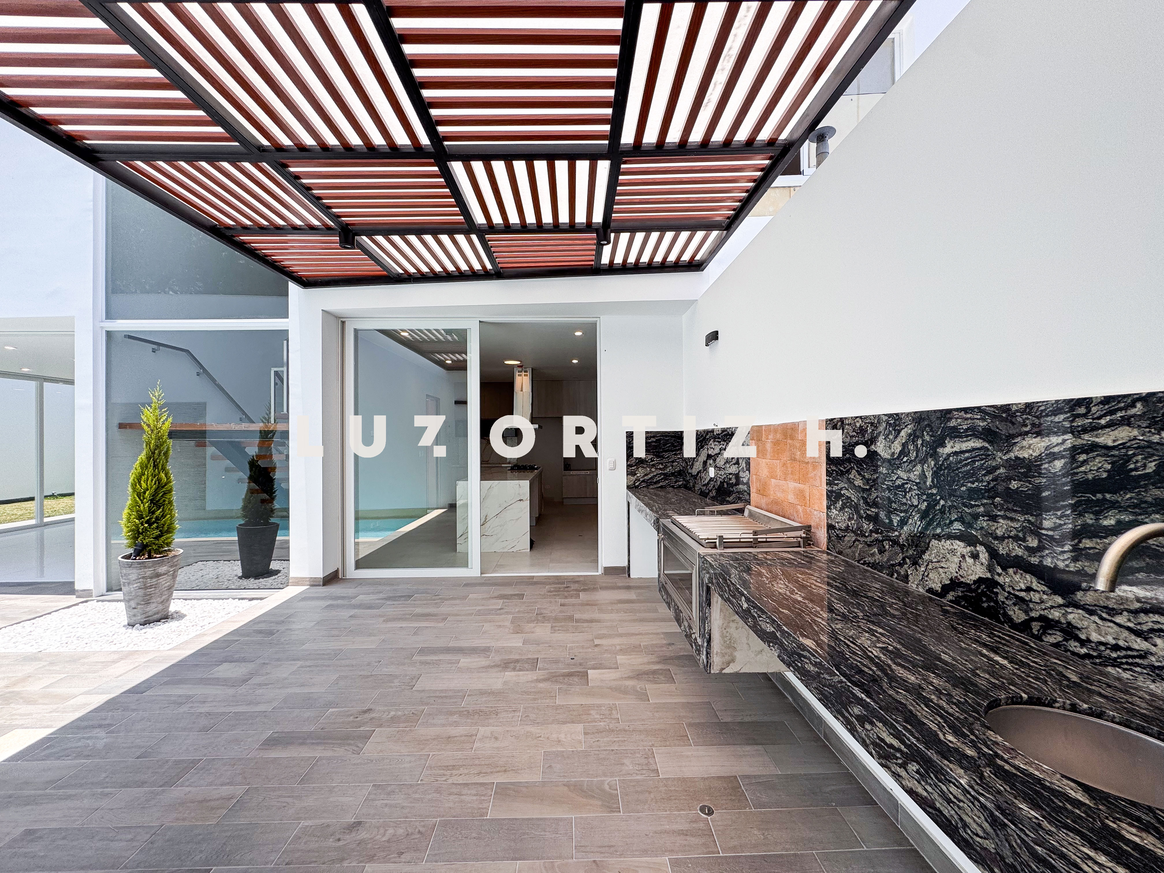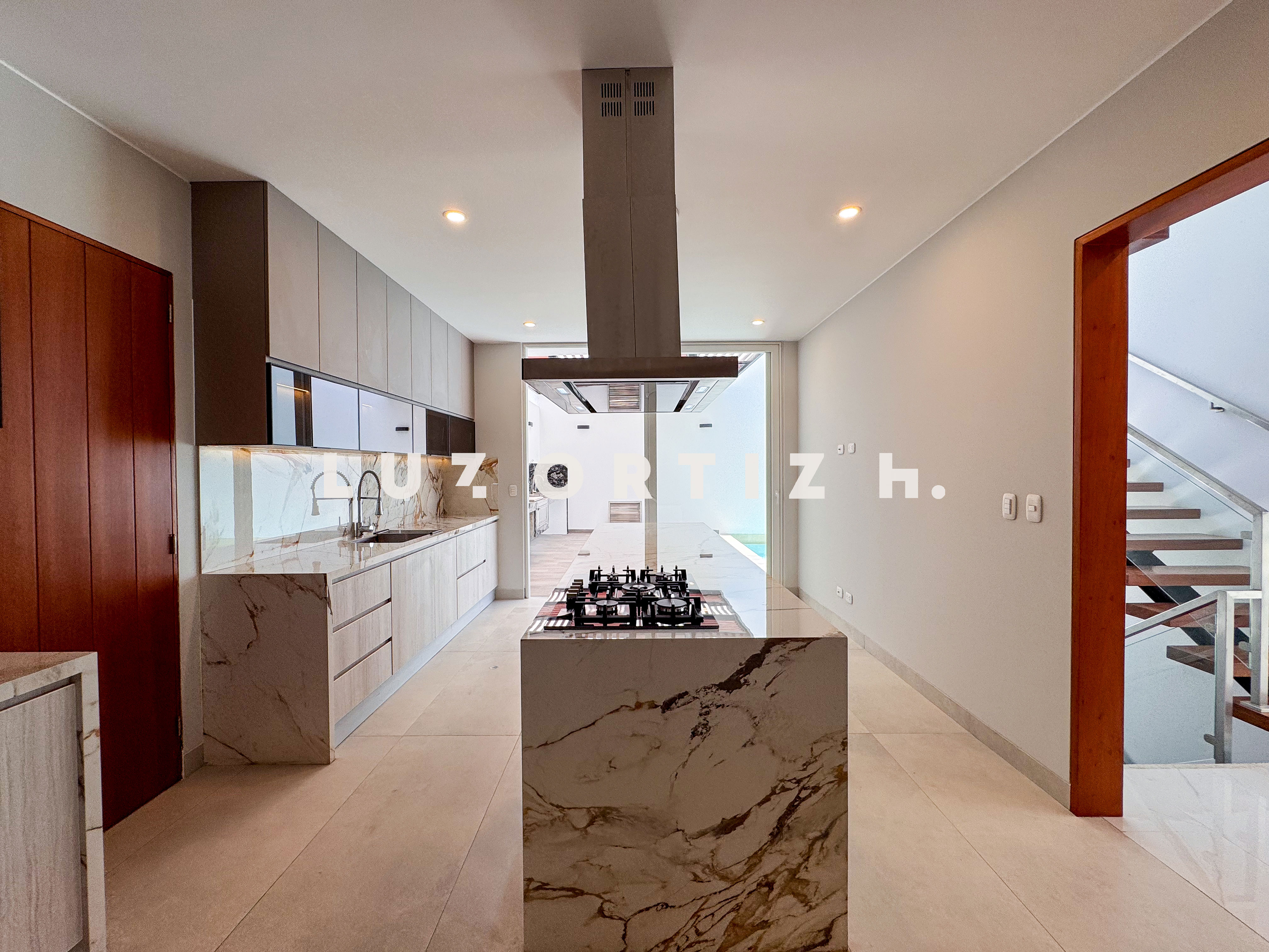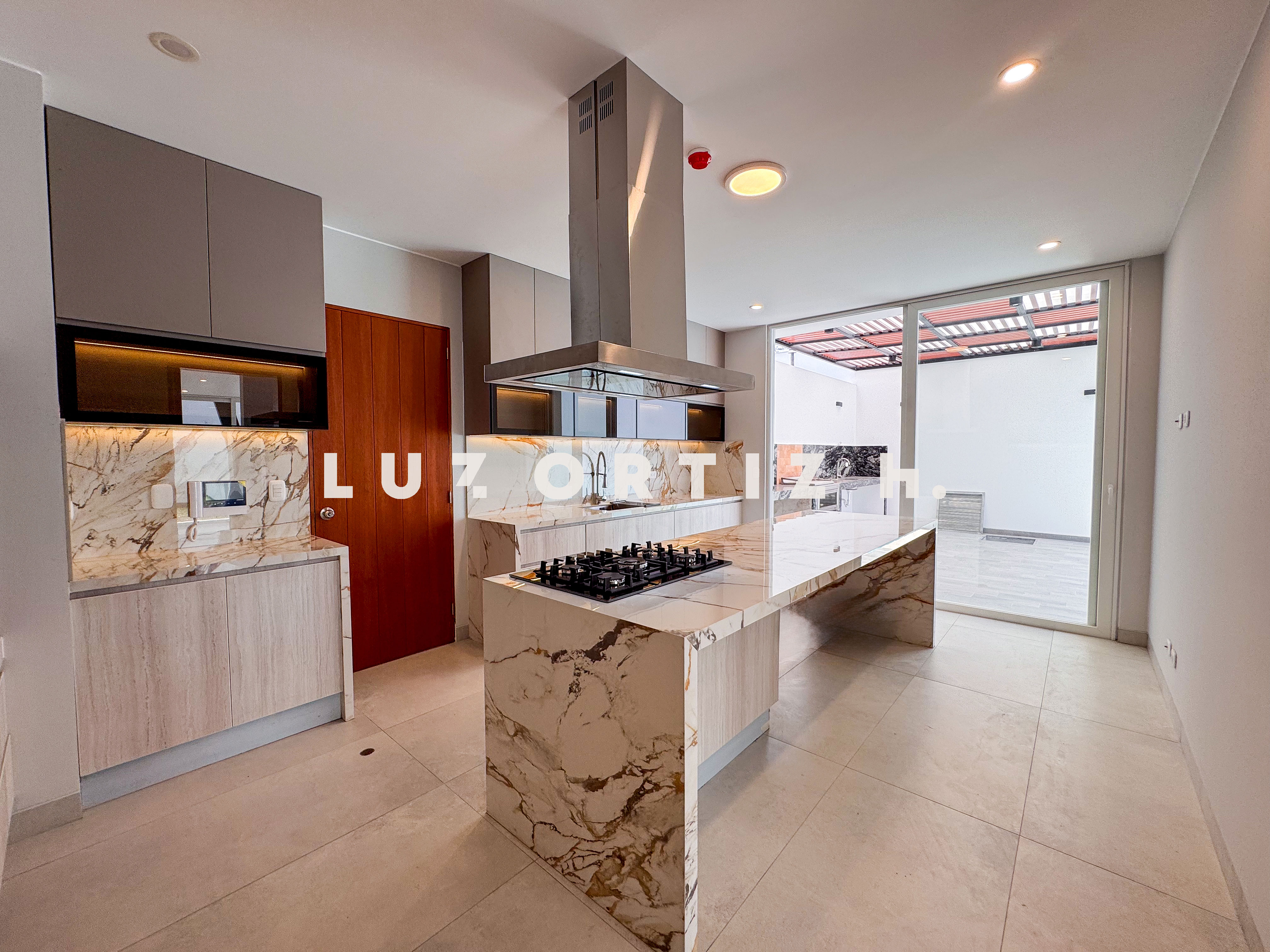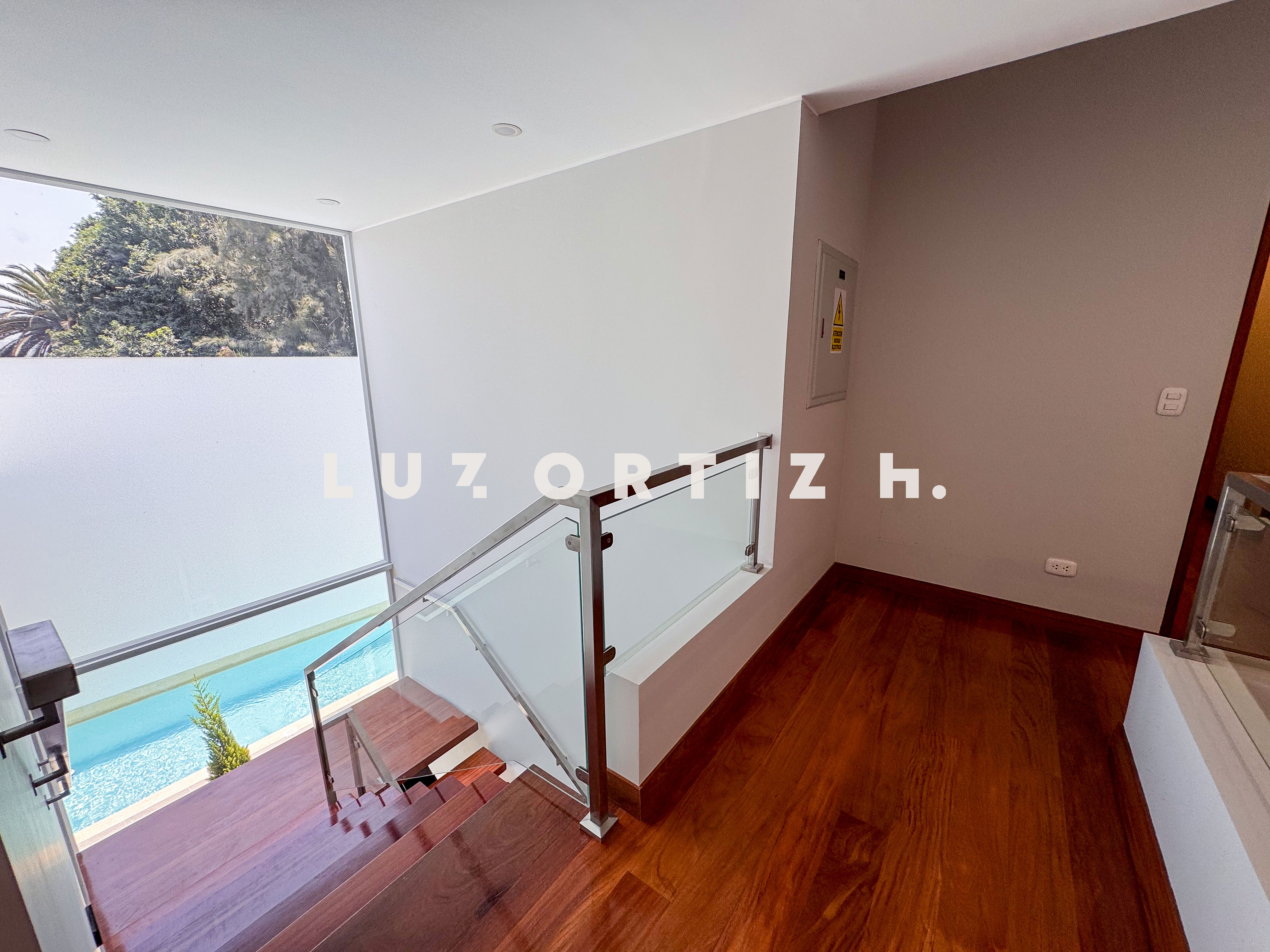En el primer nivel, un elegante hall de ingreso da la bienvenida a una amplia sala y comedor con excelente iluminación natural y vista directa a la terraza. La terraza cuenta con una zona de parrilla ideal para reuniones sociales y familiares, además de una piscina privada perfecta para disfrutar del sol durante todo el año. La cocina es cerrada, moderna y funcional, equipada con muebles altos y bajos en melamina de alta calidad y tablero de granito. También dispone de un baño de visitas y un estudio u oficina, ideal para el trabajo remoto o como sala de lectura.