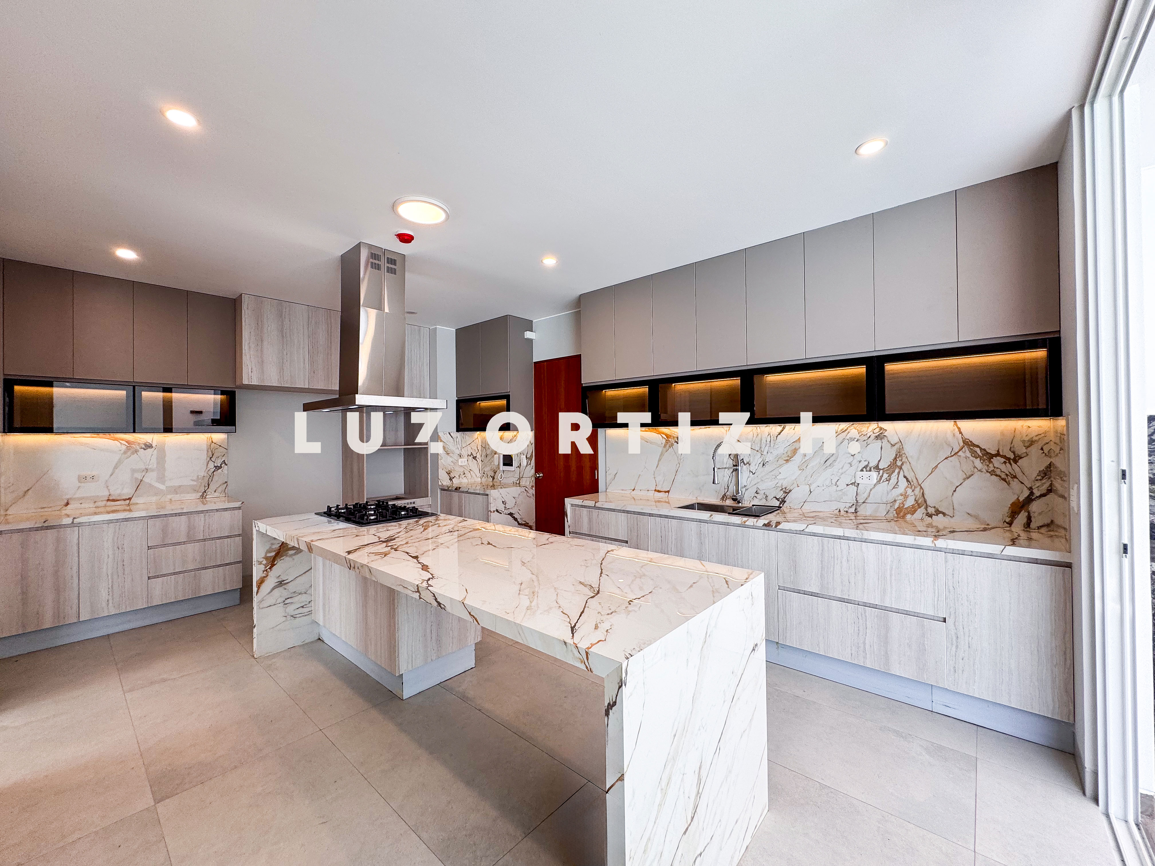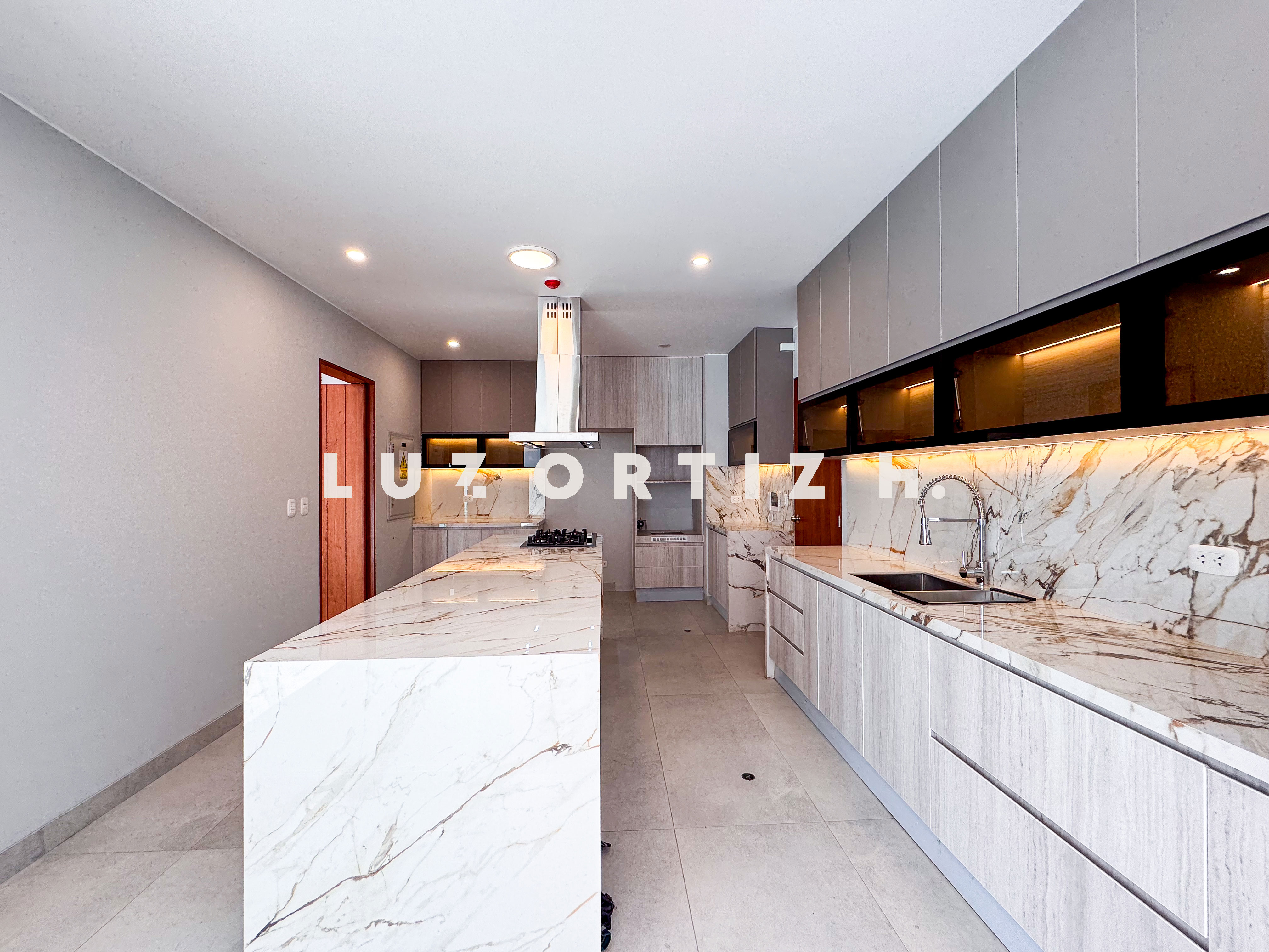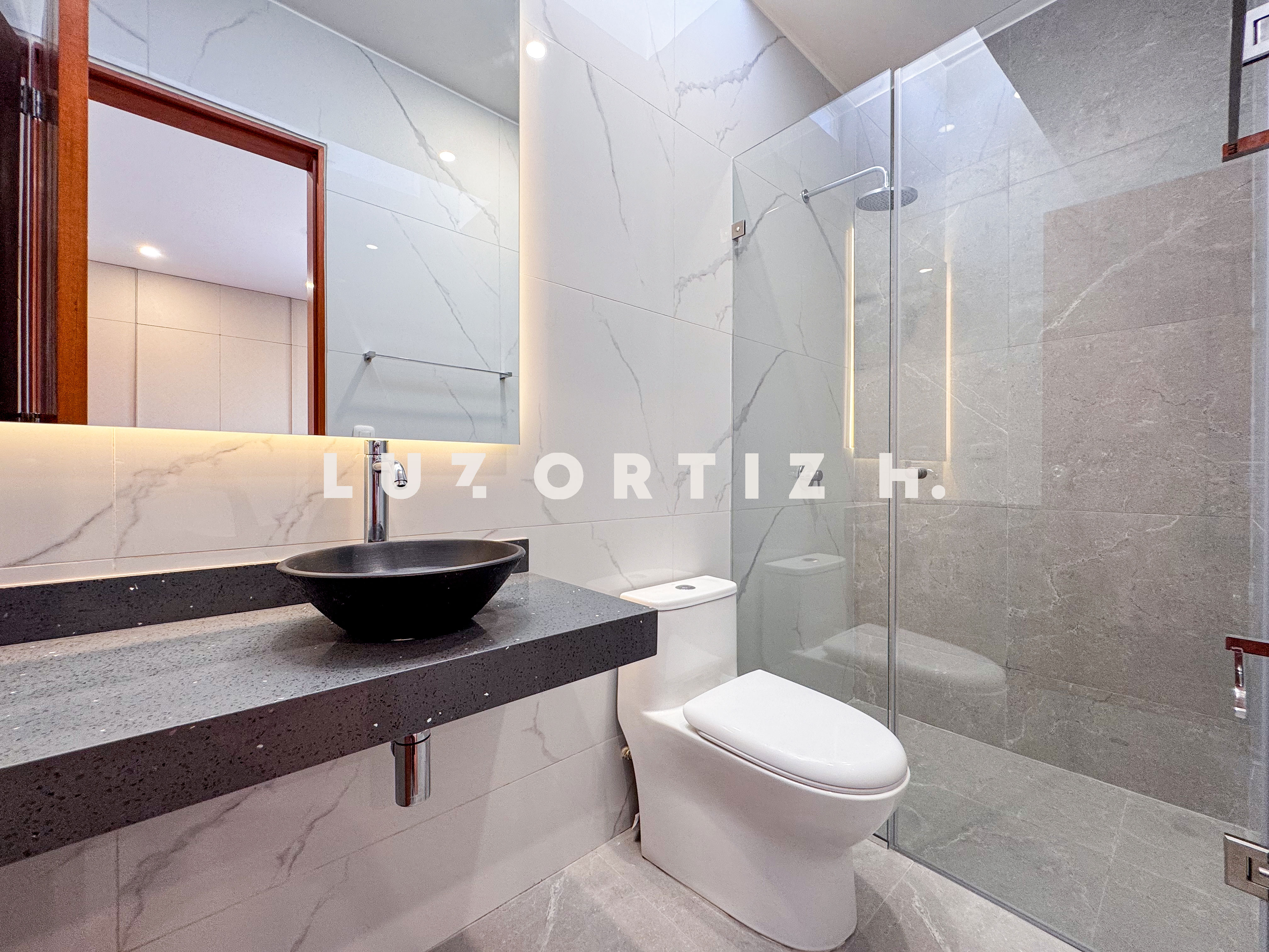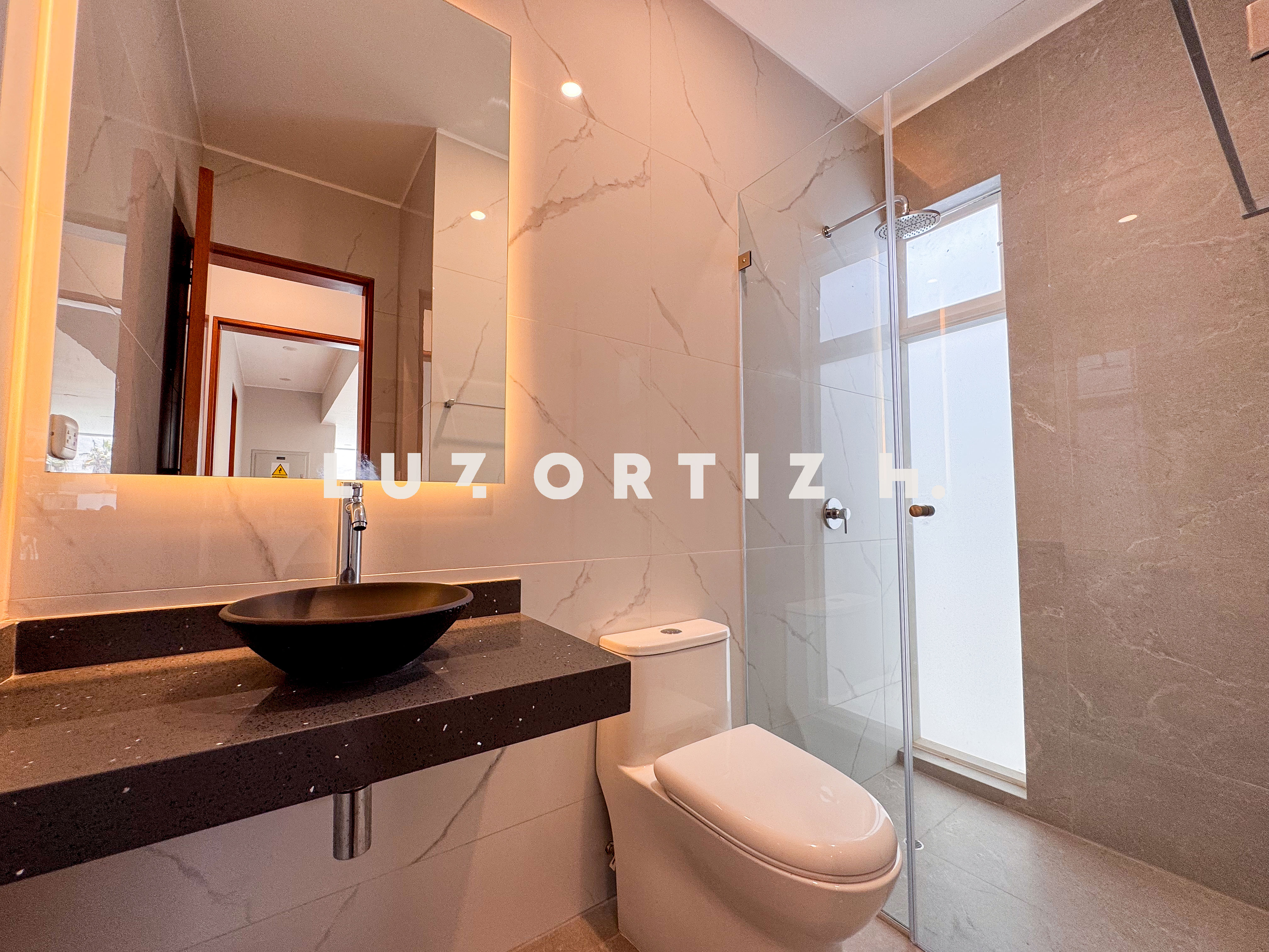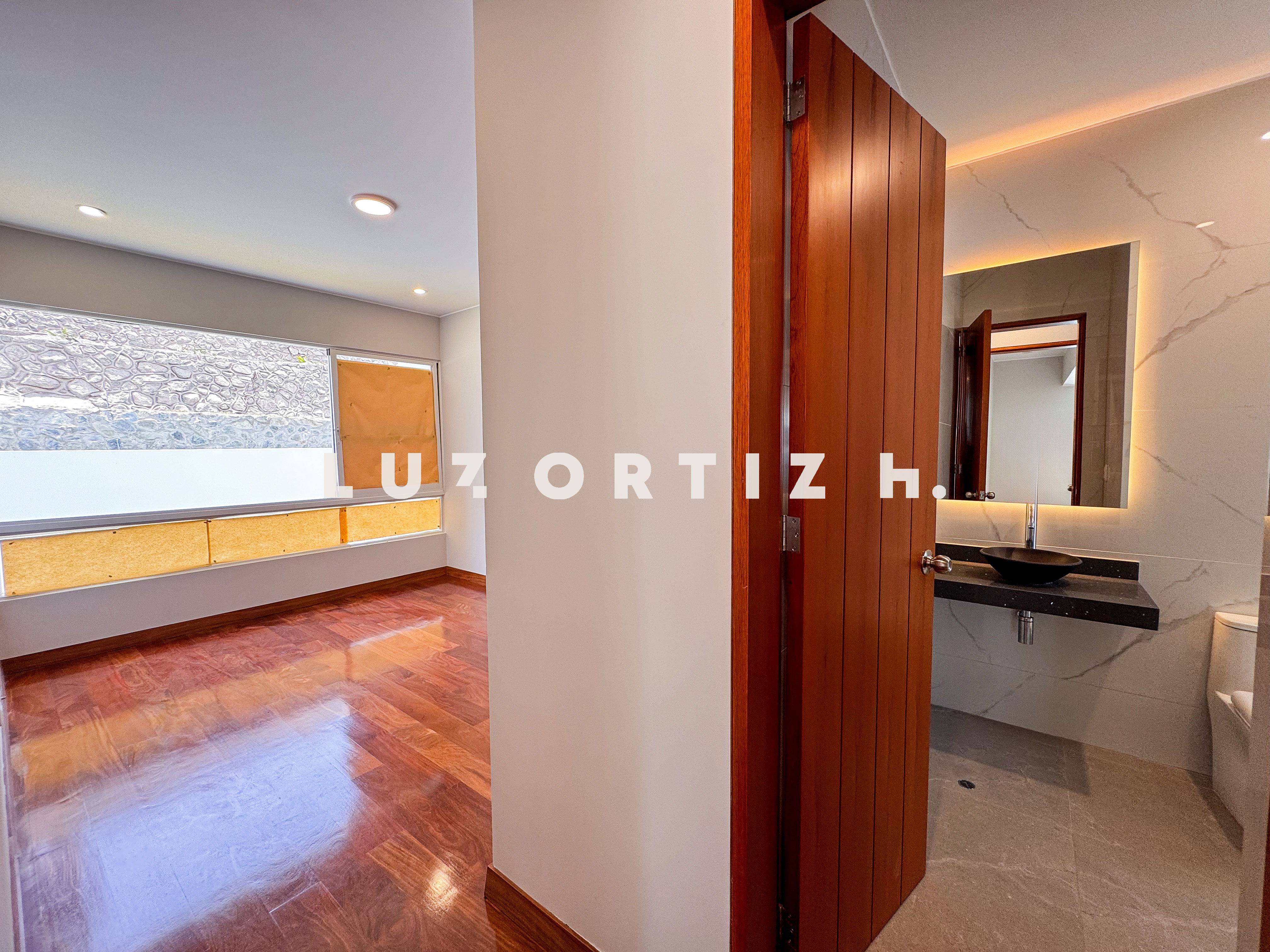 En el primer nivel, un elegante hall de ingreso da la bienvenida a una amplia sala y comedor con excelente iluminación natural y vista directa a la terraza. La terraza cuenta con una zona de parrilla ideal para reuniones sociales y familiares, además de una piscina privada perfecta para disfrutar del sol durante todo el año. La cocina es cerrada, moderna y funcional, equipada con muebles altos y bajos en melamina de alta calidad y tablero de granito. También dispone de un baño de visitas y un estudio u oficina, ideal para el trabajo remoto o como sala de lectura.