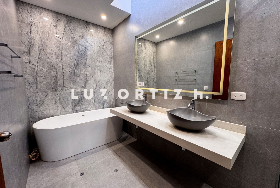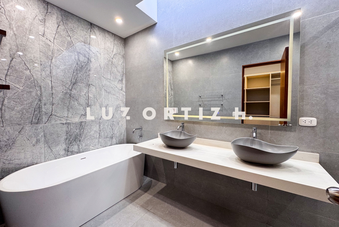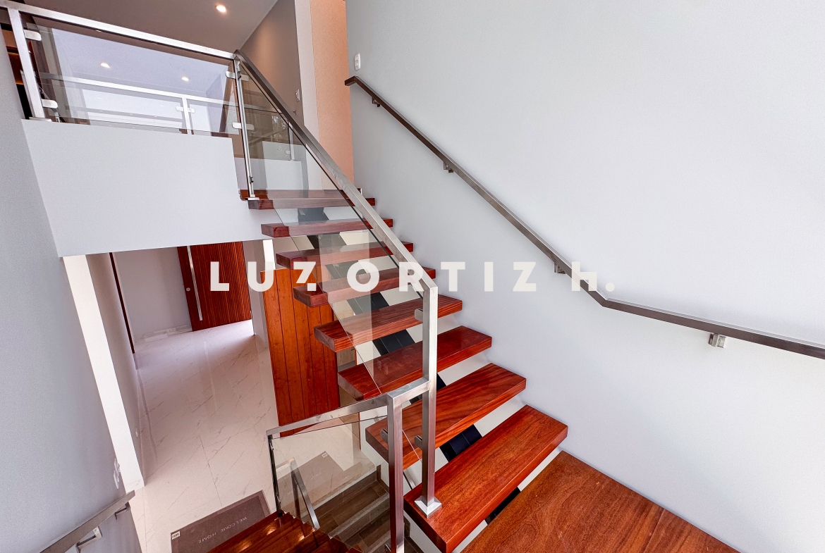 En el segundo nivel se encuentran cuatro dormitorios, todos con baño incorporado y closets empotrados. El dormitorio principal cuenta con un walk-in closet y baño completo. Además, hay una cómoda sala de estar familiar, perfecta para ver televisión o disfrutar de momentos en familia.